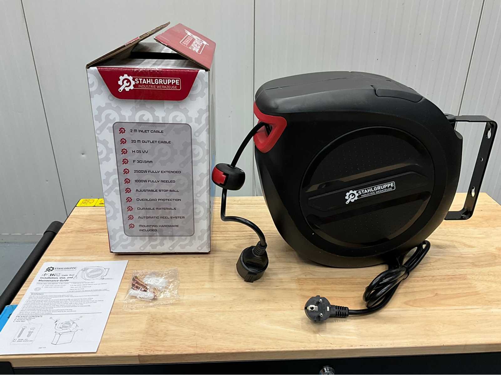 Stahlgruppe - sgkt20m - snoerhaspel 20meter verlengkabel - automatisch oprolsysteem