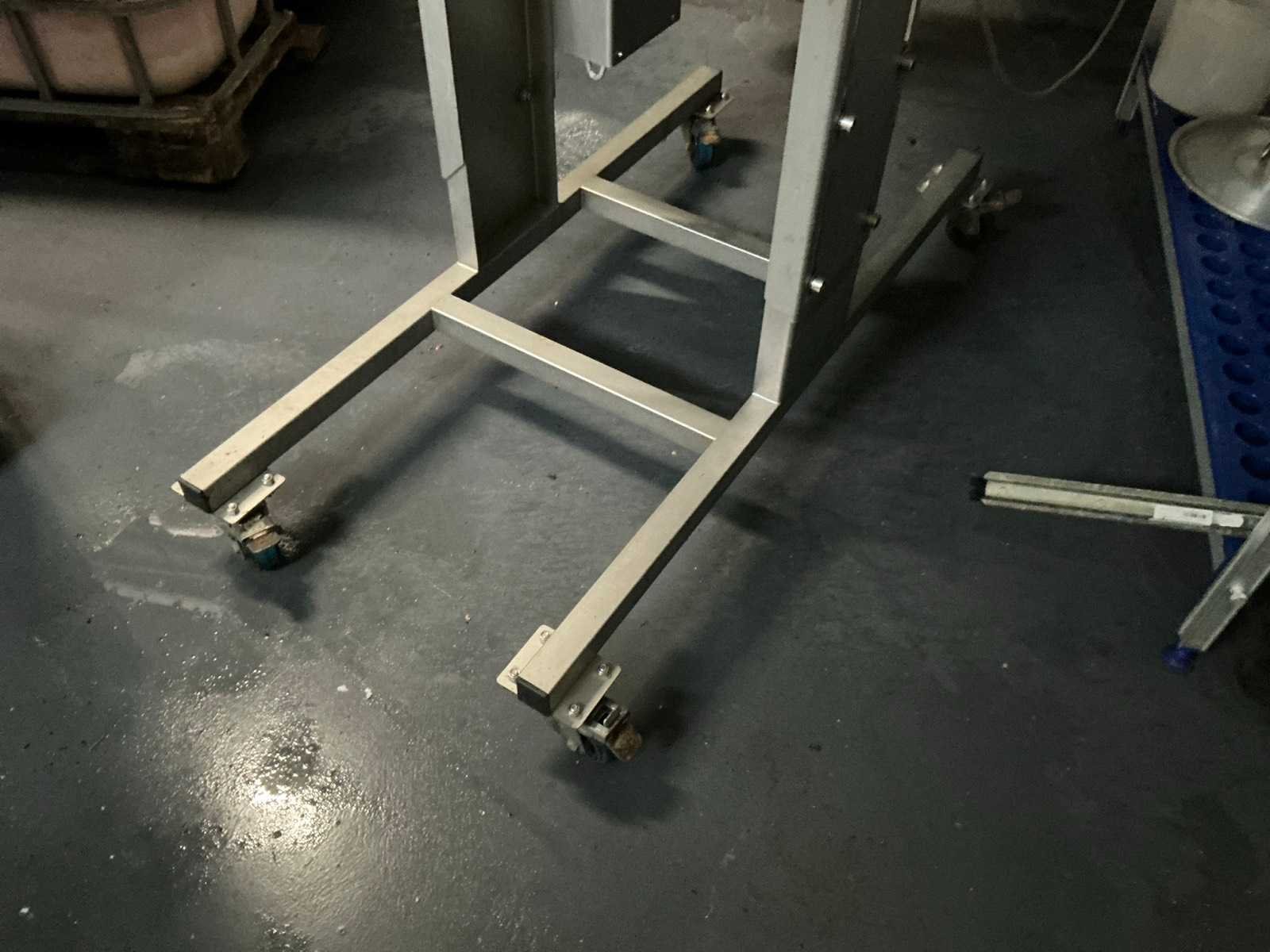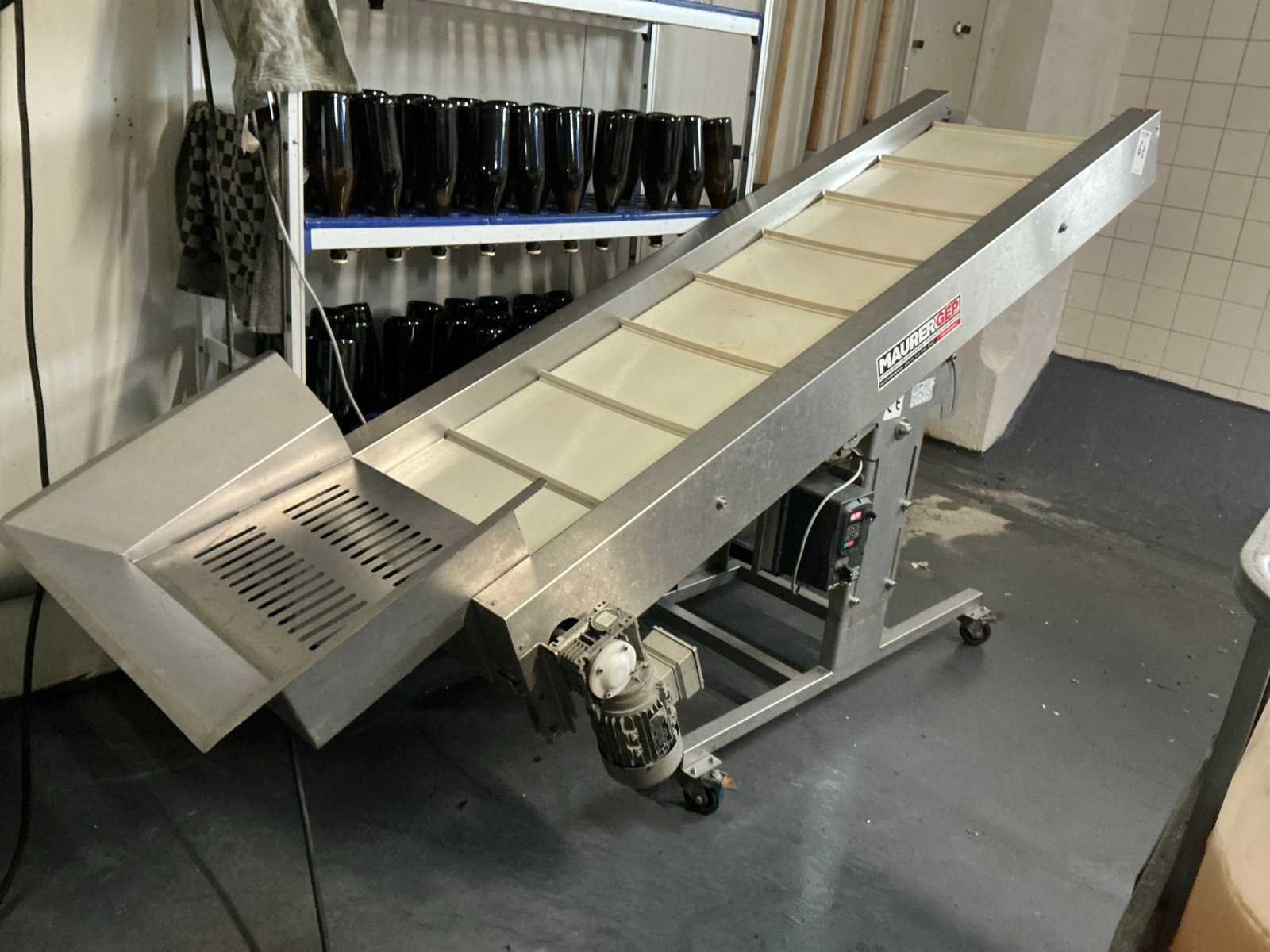 Mobiel, Roestvaststaal met kunststof opvoerband(breedte 50cm.), 400Volt, hoekverstelbaar, maar genomen zoals getoond Nee Merk: Maurer Type: MKVSZ2000 Bouwjaar: 2020 Serienummer: 191463/1 Totale afmeting L: 2800mm Totale afmeting Breedte: 900mm Totale afmeting Hoogte: 1450mm