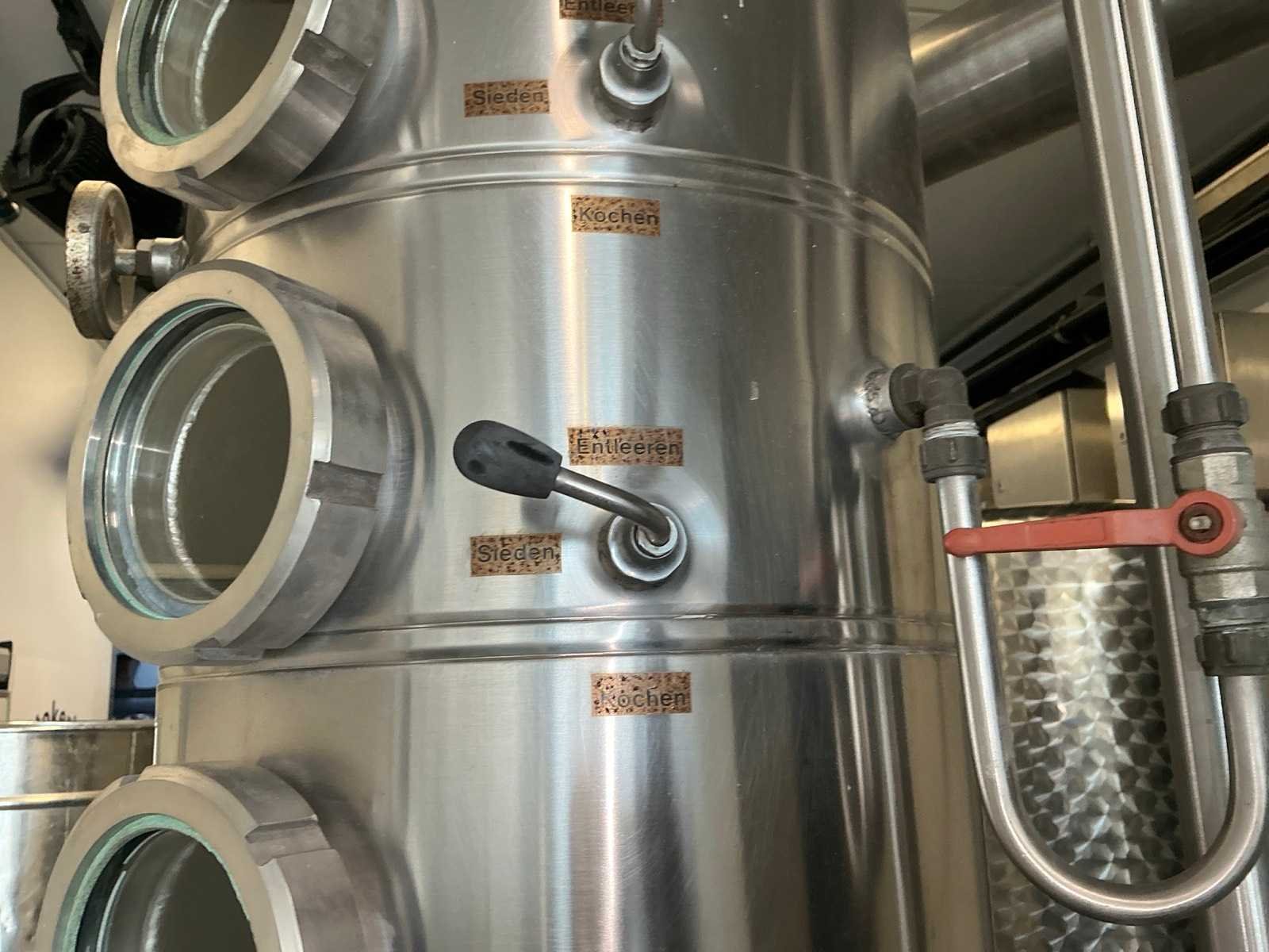 Voorzien van kolom met 3 schotels, deflegmator, roerwerk en inschakelbare katalysator, houtgestookt(kan evt op stoom of gasbrander, beide niet inbegrepen in deze kavel) stoommantel 210liter. Nee Merk: Kothe Bouwjaar: 1994 Serienummer: 632 Aansluiting: 400V Totale afmeting L: 1400mm Totale afmeting Breedte: 1100mm Totale afmeting Hoogte: 2800mm