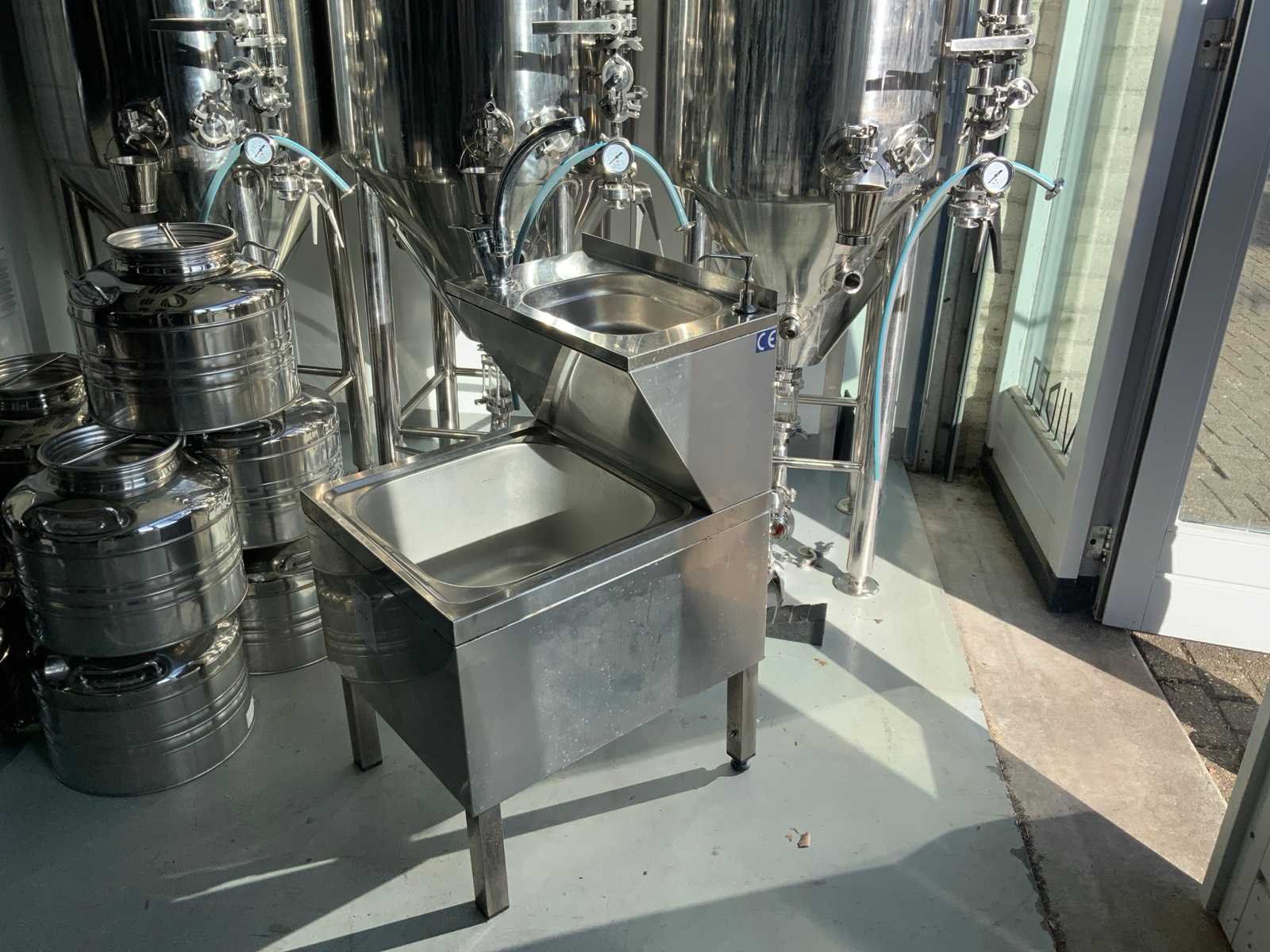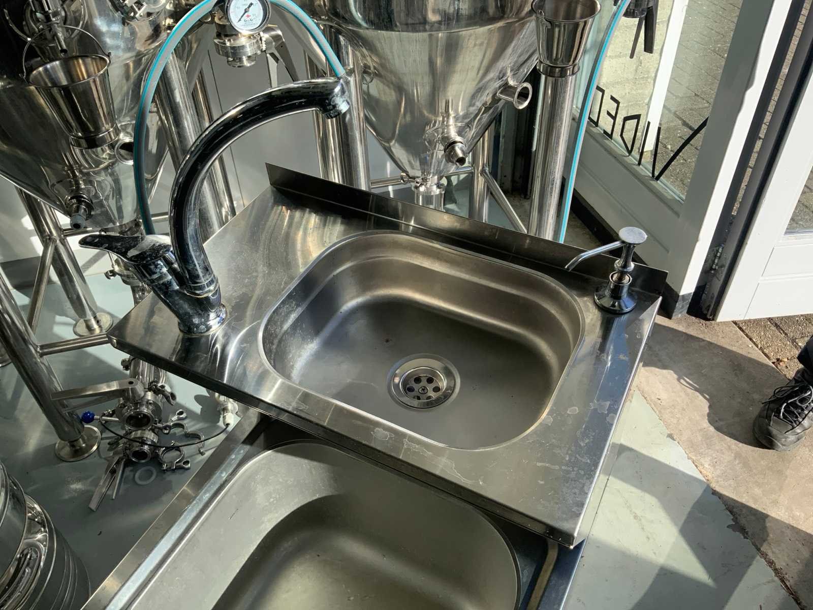 Voorzien van mengkraan, zeeepdispenser, 2 spoelbakken Nee Totale afmeting L: 58cm Totale afmeting Breedte: 50cm Totale afmeting Hoogte: 120cm Materiaal: RVS
