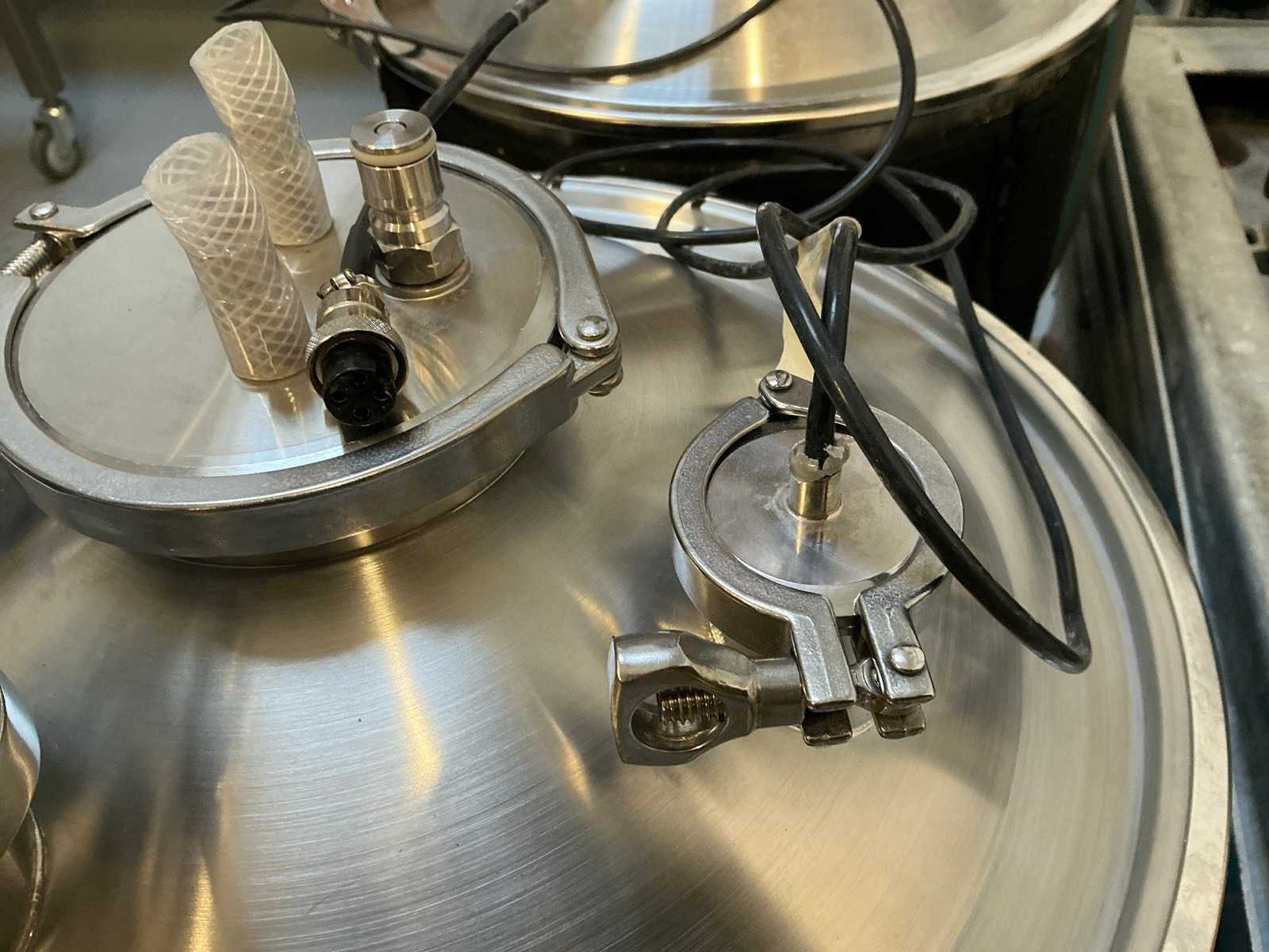 Proef-fermentor voor speciaalbier voorzien van koelingspiraal(koeling niet inbegrepen) en elektrische verwarming (30W 220V) voorzien van isolatie. Conische bodem voor gistaftap, temperatuurvoeler (PT100) door deksel, samplekraan, koppeling met slang voor waterslot. Waterslotpoort voorzien van kraan en te gebruiken voor dry-hoppen. Rackingarm voor aftap boven gisbed. CO2 koppeling voor leegdrukken of voorvullen met CO2. Eigen ontwerp en custommade volledig voorzien van Tri-clamps en flinderkleppen. Nee Lengte: 45cm Breedte: 45cm Hoogte: 105cm Materiaal: Roestvaststaal