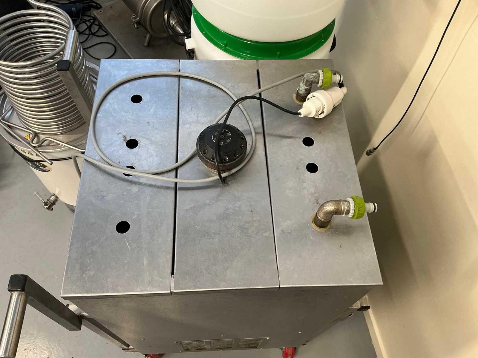 Op en inclusief mobiel onderstel, afmeting totaal 700x650x1030mm. Voorzien van koperen doorstroomspiraal, thermostaat en ijs-sensor. Geschikt voor ijswaterkoeling. Nee Merk: Baktec