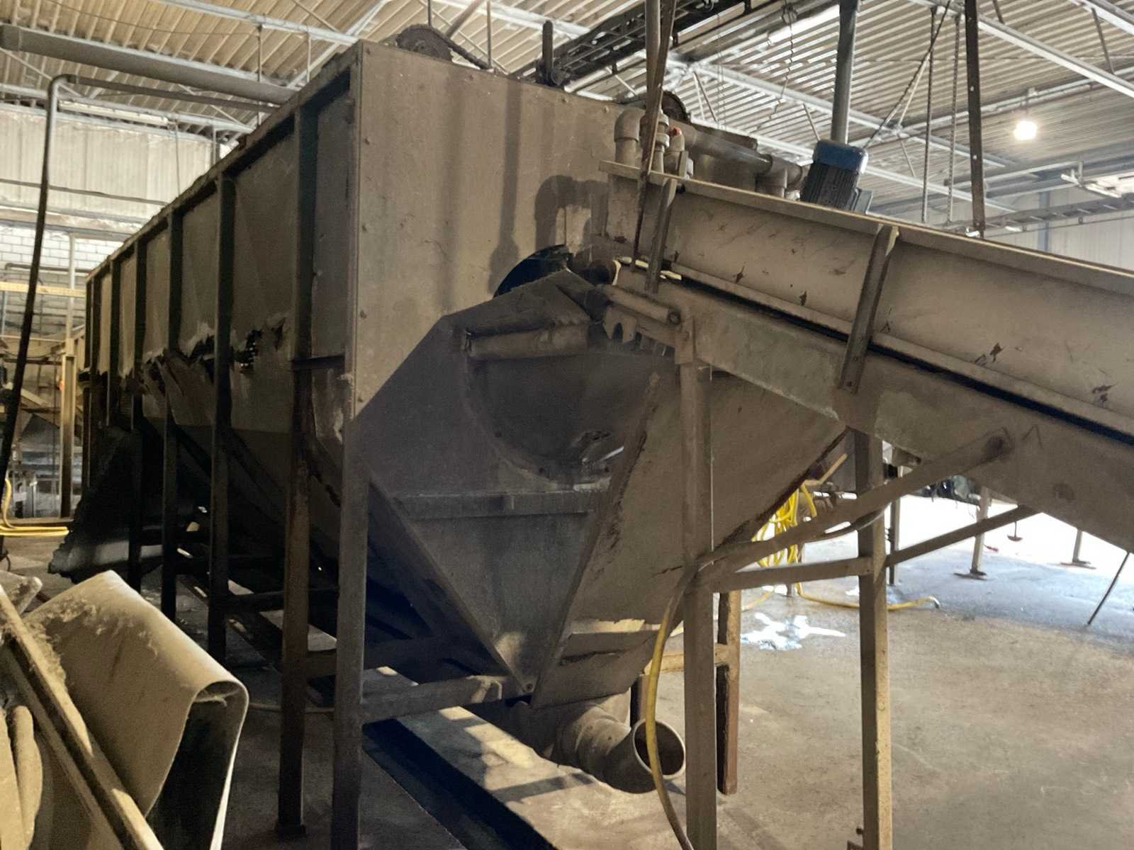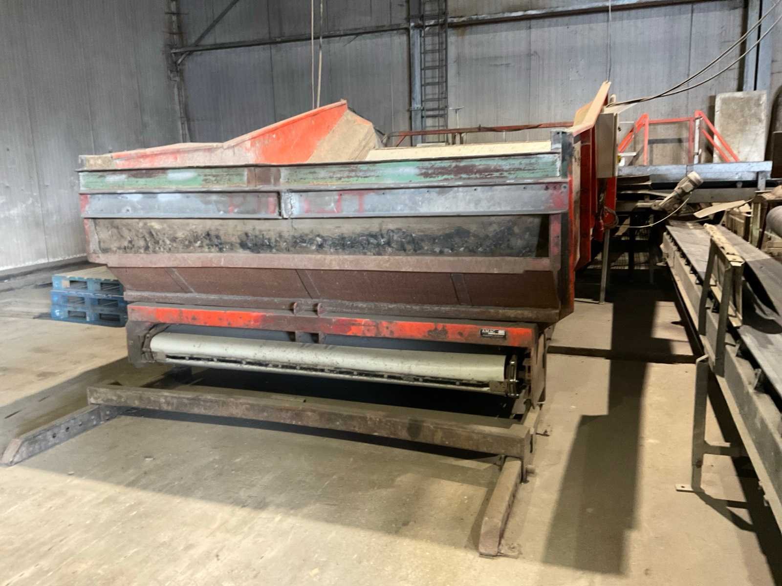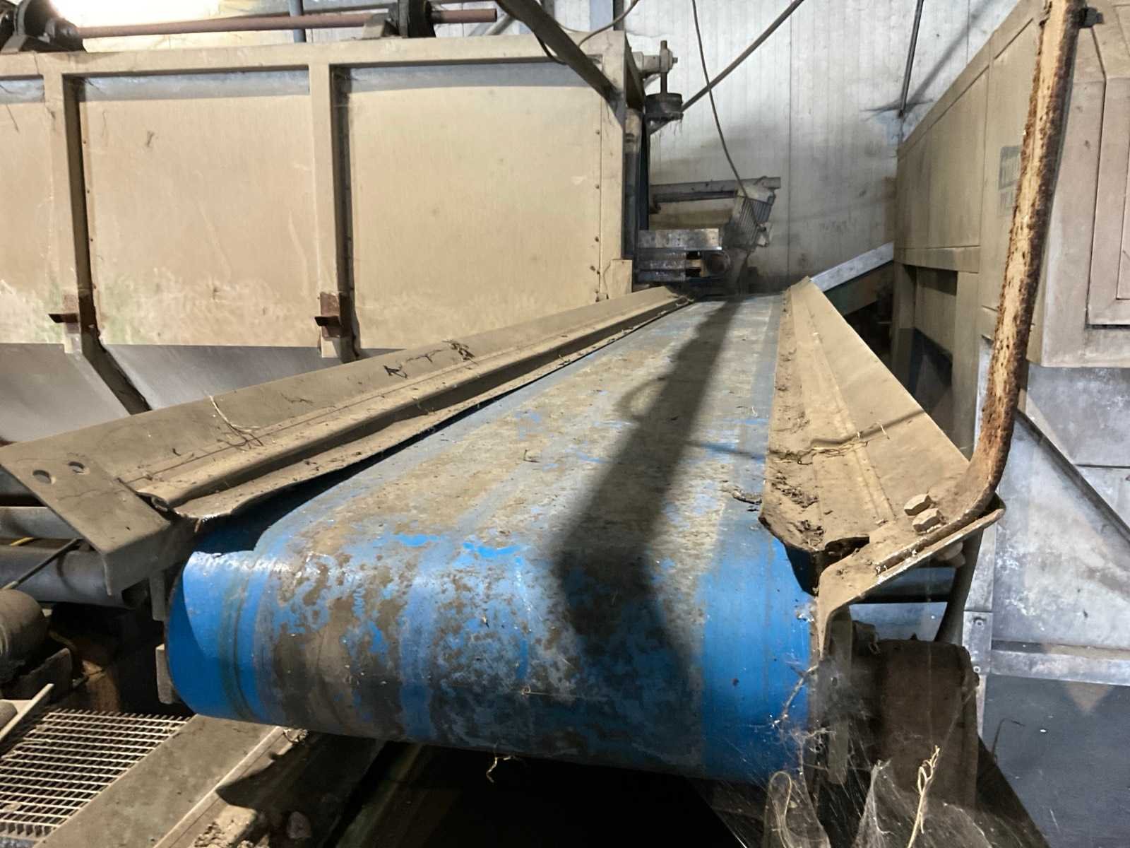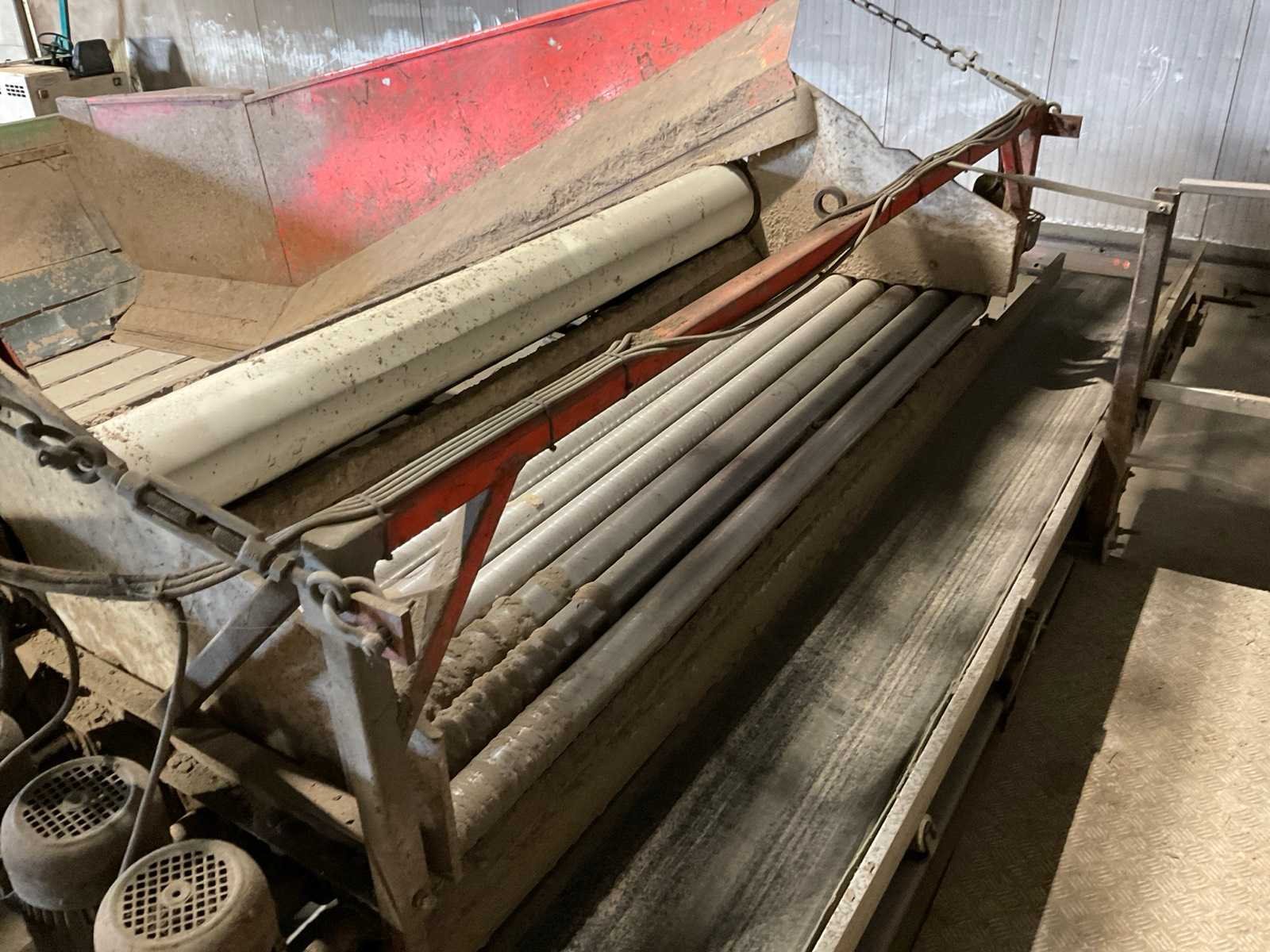 Bestaande uit: verrijdbare Amac BL120 stortbak, circa 10 m2, 1 transportband grond, circa 420 cm, transportband product 625 cm, bordestrap met extra platform, transportband product 800 cm, opvoerband product 240 cm, opvoerband 550 cm, trommelwasser (afmetingen circa 800x180 cm lengte x diameter) totale afmetingen 900x200x340 cm, aan- en afvoer water, opvoerband 280 cm, stukken trommel (afmetingen circa 300x150 cm lengte x diameter), totale afmetingen 350x175x300 cm, transportband 400 cm, opvoerband 210 cm, opvoerband 270 cm, Martin Maq Lavad Pul schud borstelmachine bouwjaar 2006. Borstel afmetingen circa 300x50 cm. Aansluiting 400 volt. No