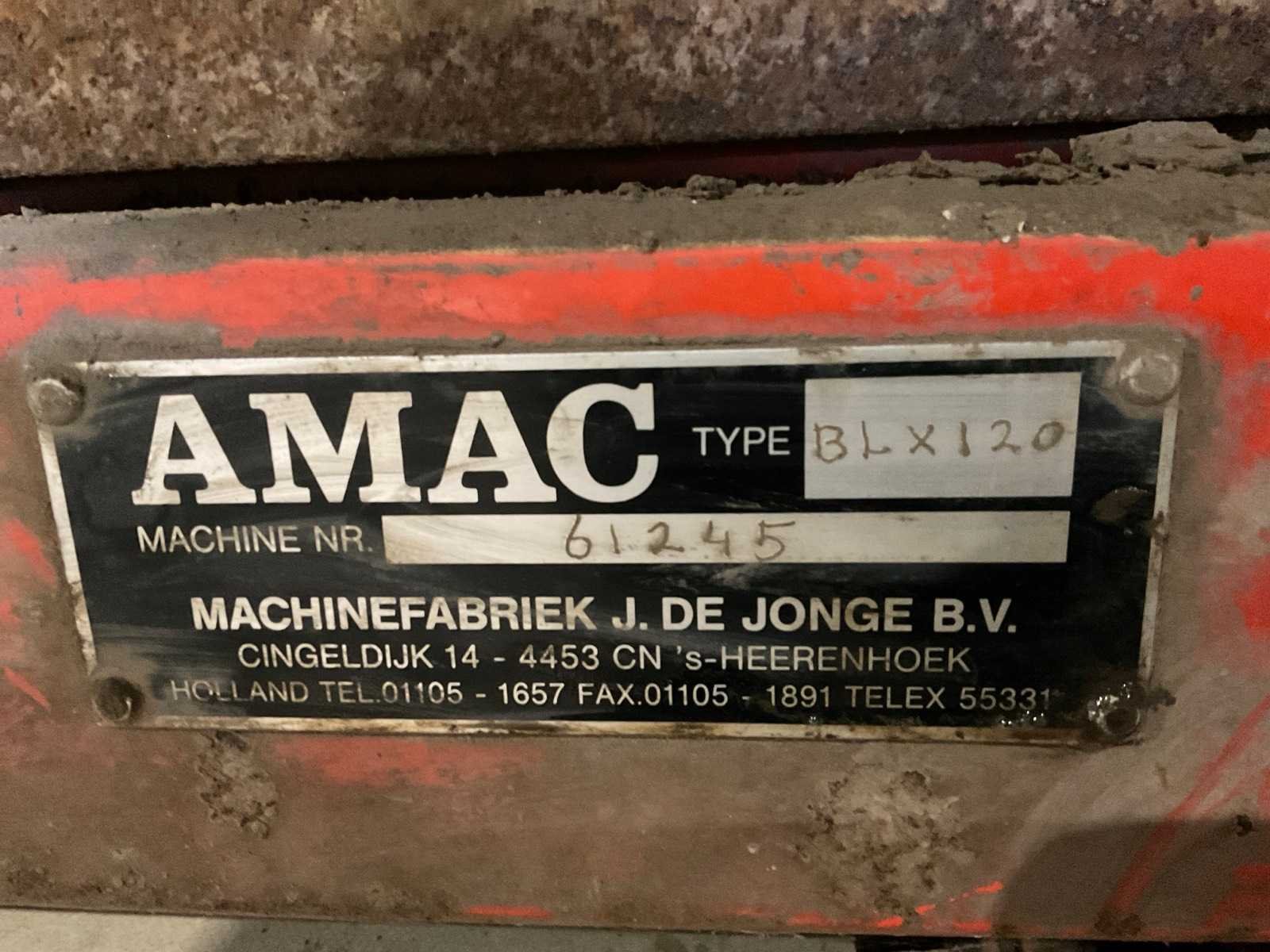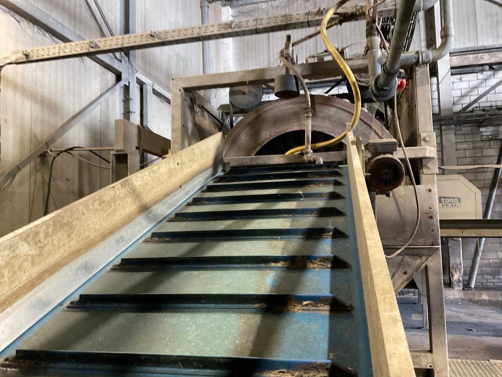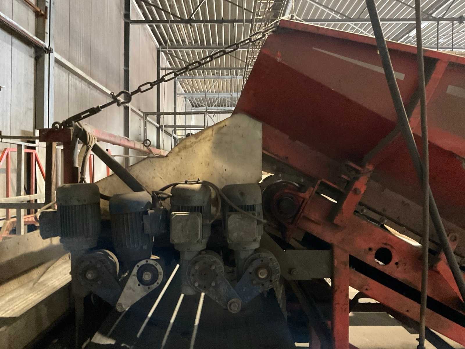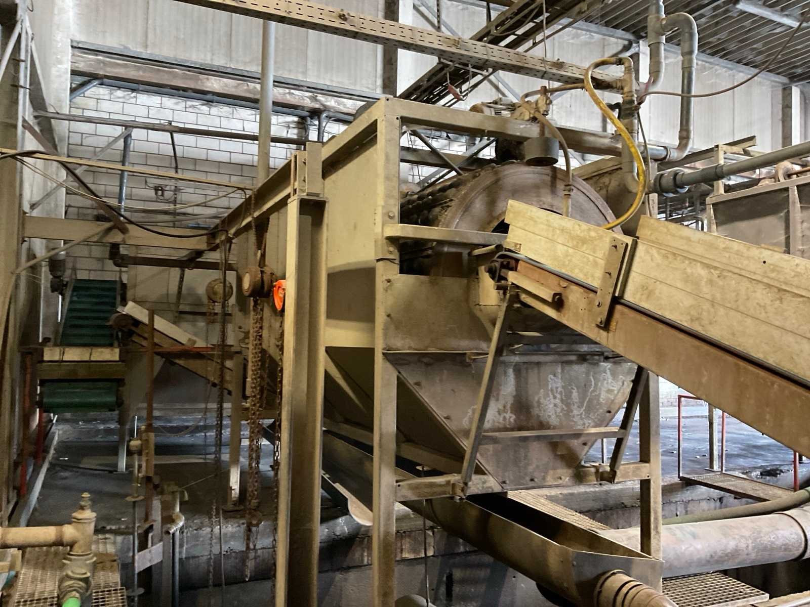 Bestaande uit: verrijdbare Amac BL120 stortbak, circa 10 m2, 1 transportband grond, circa 420 cm, transportband product 625 cm, bordestrap met extra platform, transportband product 800 cm, opvoerband product 240 cm, opvoerband 550 cm, trommelwasser (afmetingen circa 800x180 cm lengte x diameter) totale afmetingen 900x200x340 cm, aan- en afvoer water, opvoerband 280 cm, stukken trommel (afmetingen circa 300x150 cm lengte x diameter), totale afmetingen 350x175x300 cm, transportband 400 cm, opvoerband 210 cm, opvoerband 270 cm, Martin Maq Lavad Pul schud borstelmachine bouwjaar 2006. Borstel afmetingen circa 300x50 cm. Aansluiting 400 volt. No