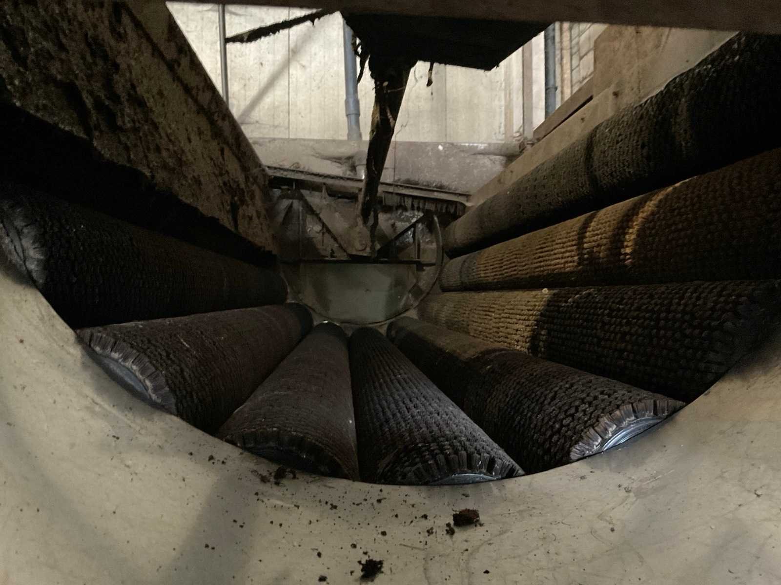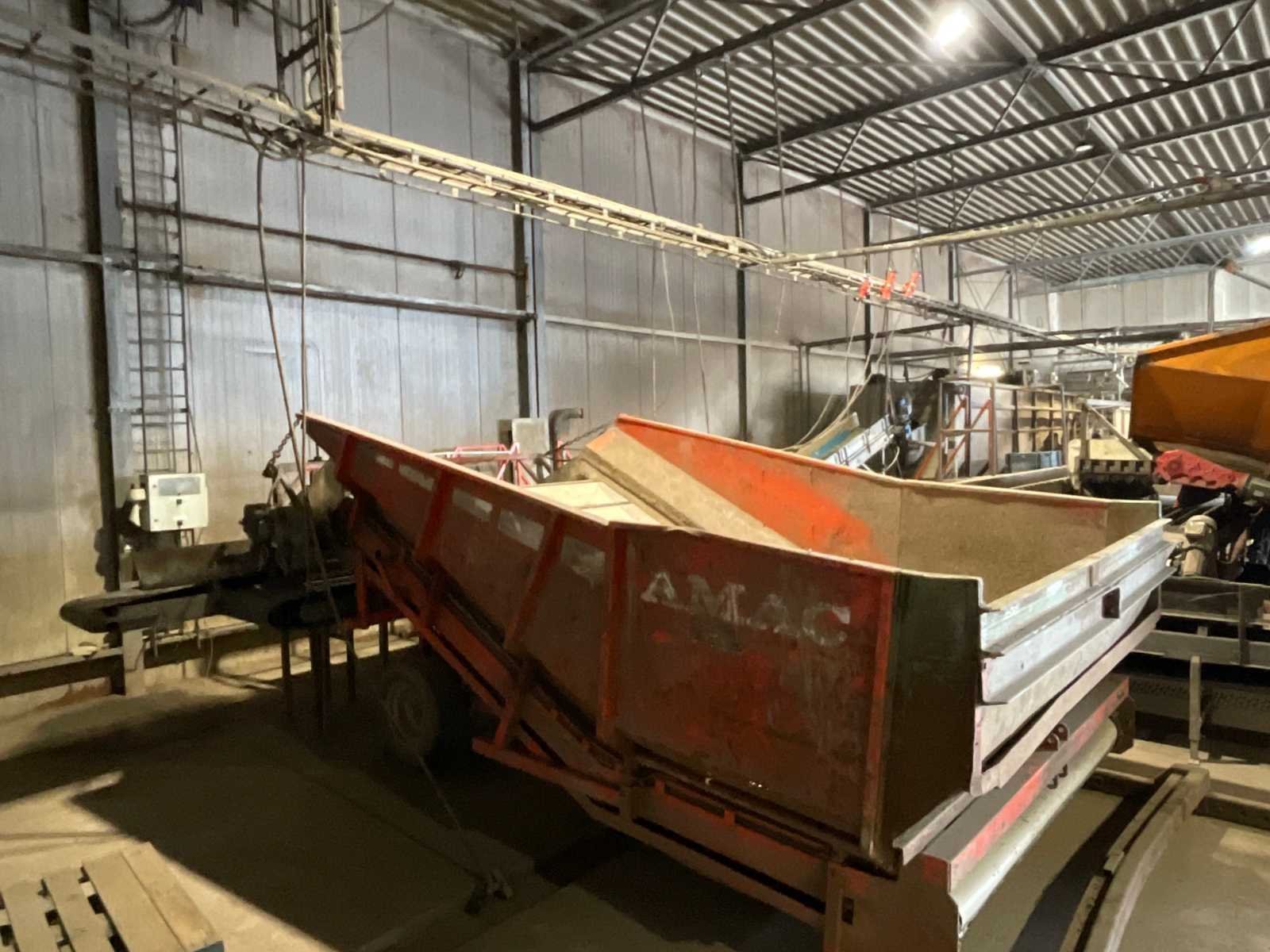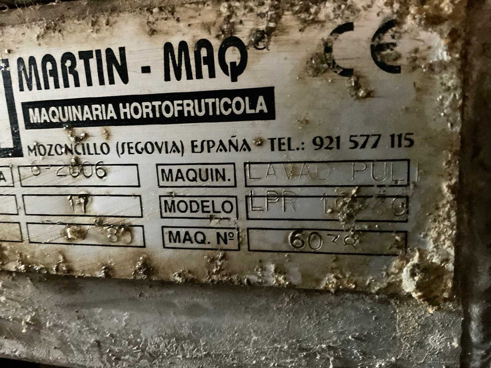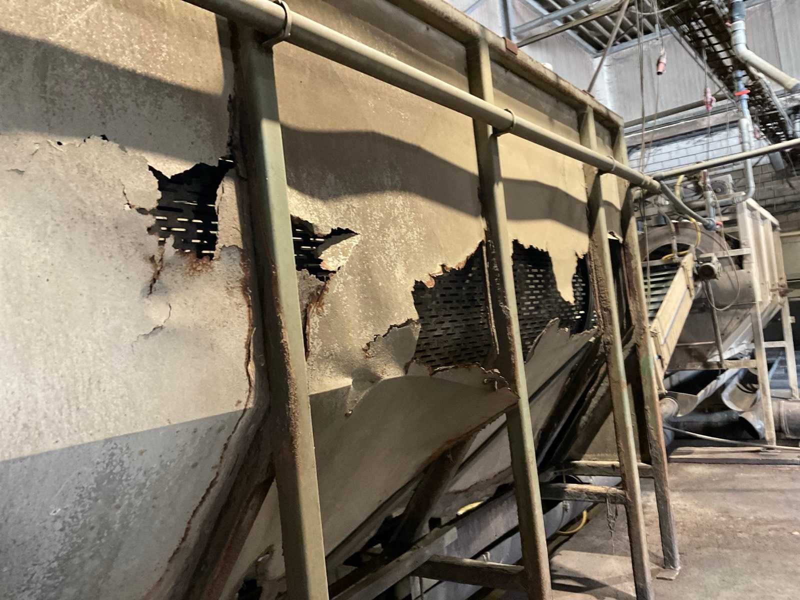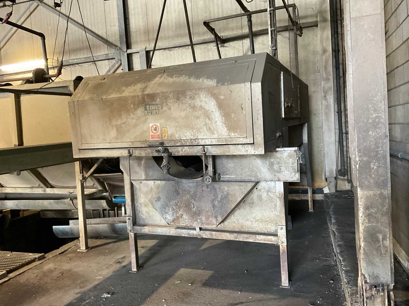 Bestaande uit: verrijdbare Amac BL120 stortbak, circa 10 m2, 1 transportband grond, circa 420 cm, transportband product 625 cm, bordestrap met extra platform, transportband product 800 cm, opvoerband product 240 cm, opvoerband 550 cm, trommelwasser (afmetingen circa 800x180 cm lengte x diameter) totale afmetingen 900x200x340 cm, aan- en afvoer water, opvoerband 280 cm, stukken trommel (afmetingen circa 300x150 cm lengte x diameter), totale afmetingen 350x175x300 cm, transportband 400 cm, opvoerband 210 cm, opvoerband 270 cm, Martin Maq Lavad Pul schud borstelmachine bouwjaar 2006. Borstel afmetingen circa 300x50 cm. Aansluiting 400 volt. No