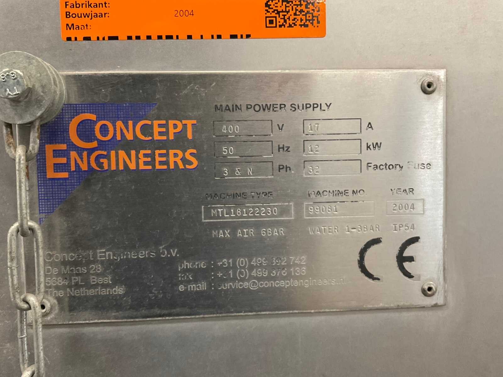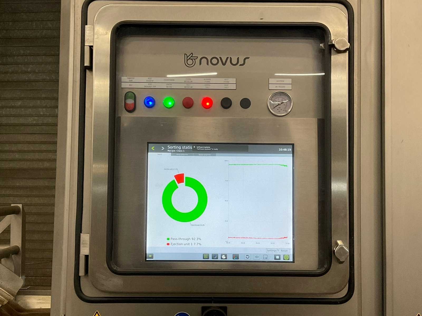 Vermogen: 12kW, Aansluitstroom: 17 A, Afzekering: 32 A, Perslucht: max. 6 bar, Waterdruk: 1–3 bar Beschermingsklasse: IP54, Tweeweg sorteermodus, Optisch camerasysteem monochroom RGB, IRGB, Luchtuitwerpsysteem, Bedieningspaneel met touchscreen, Industriële RVS uitvoering. Inclusief: (1x) Concept Engineers invoertriller, Type: RTT20180265D05, Bouwjaar: 2007, 400V, 1000kg, Afmeting: L 2660 x B 2150 x H 2200mm, Werkbreedte: 1800mm. (1x) Lauda luchtdroger, type: UC4, koudemiddel: R-134a, 230V, 1.8kW, Bouwjaar: 2021. Let op! Volgens opgave: 2023 software update, LED aangebracht. Nee Merk: Optimum Sorting Type: MLT18122230 Bouwjaar: 2004 Serienummer: 99081 Aansluiting: 400V Totale afmeting L: 4250mm Totale afmeting Breedte: 2750mm Totale afmeting Hoogte: 2800mm