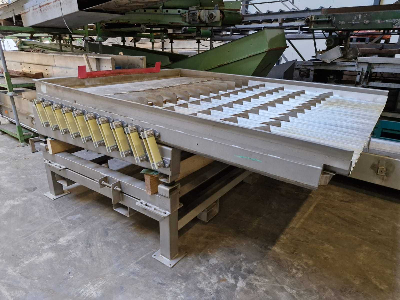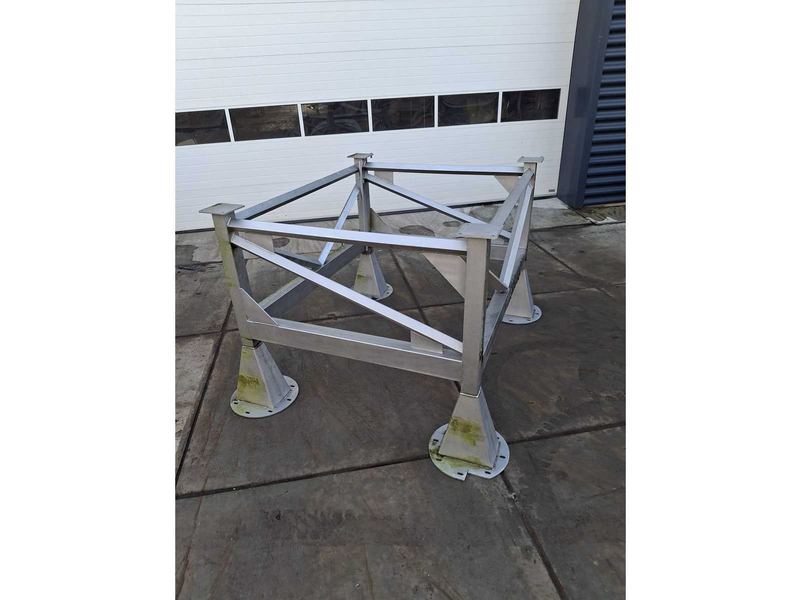 Materiaal: RVS. Inclusief: onderframe, Afmeting circa: 2600X2100mm. Nee Merk: Bruynooghe Type: 1-710952 Bouwjaar: 2010 Serienummer: 789714 Aansluiting: 400V Eigen gewicht: 1350kg Totale afmeting L: 2800mm Totale afmeting Breedte: 2300mm Totale afmeting Hoogte: 1250mm
