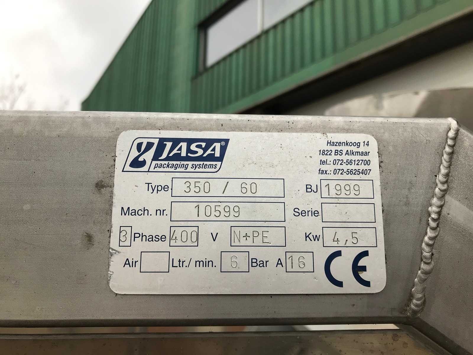Vermogen: 4,5kW, Voorzien van: JASA 350 met heatseal, Werkbreedte: 900mm, Kokerdiameter: 160mm. Nee Merk: Jasa Type: 350/60 Bouwjaar: 1999 Serienummer: 10599 Aansluiting: 400V Totale afmeting L: 2600mm Totale afmeting Breedte: 1440mm Totale afmeting Hoogte: 2350mm