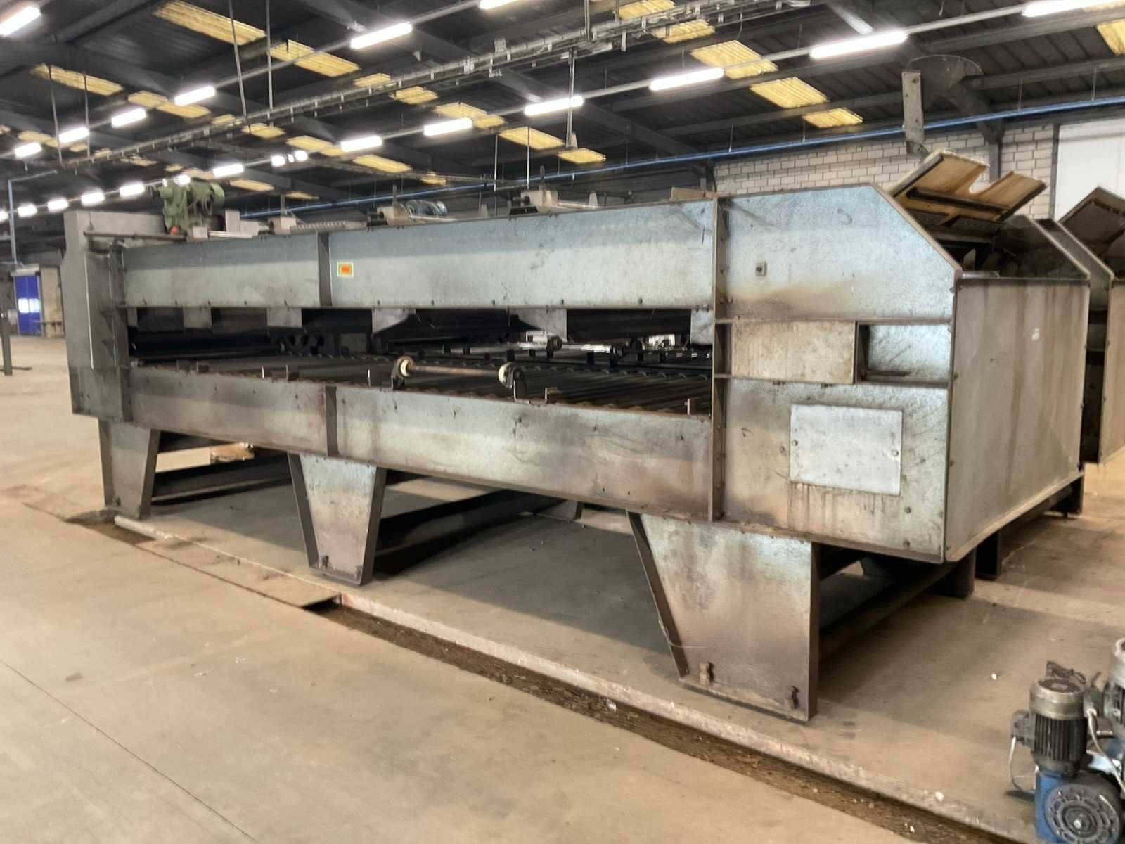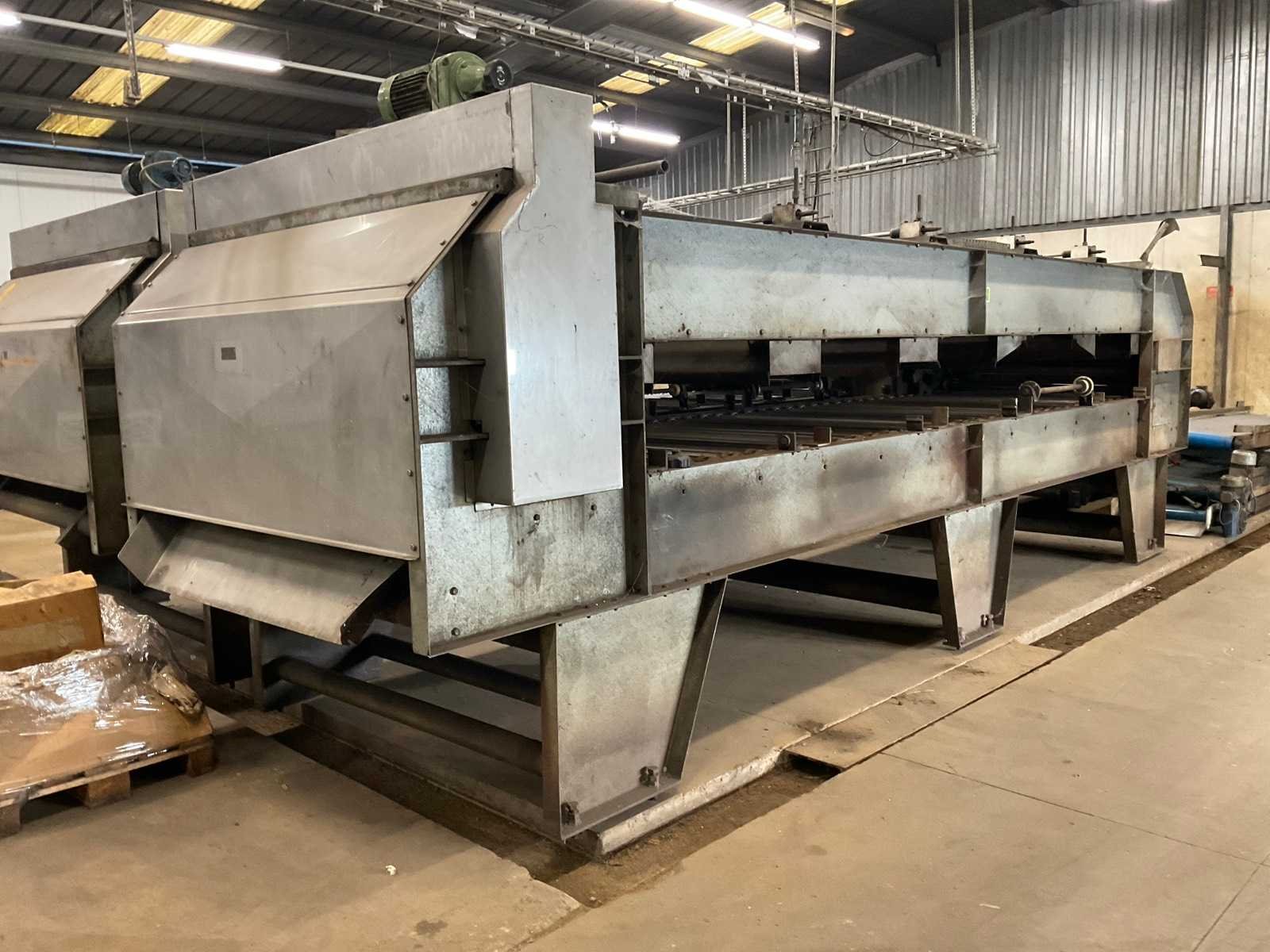 Werkbreedte: 1450mm. Inclusief: (3x) transportband, lengte: 3300 x Werkbreedte: 700mm. No Merk: G.Joppen Aansluiting: 400V Totale afmeting L: 6950mm Totale afmeting Breedte: 2200mm Totale afmeting Hoogte: 2800mm