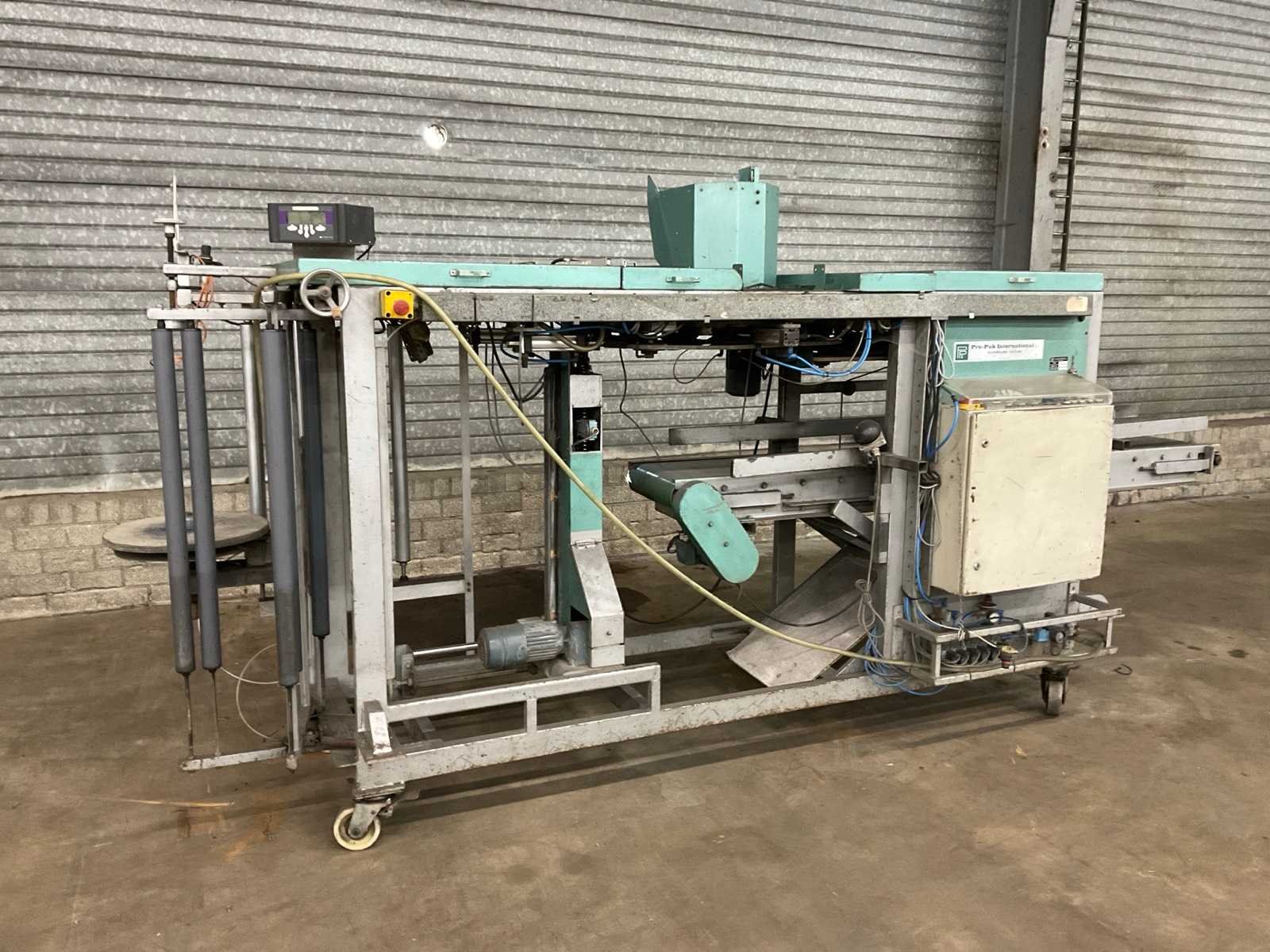Inclusief: (1x) Smart date 5 printer, bouwjaar: 2008. No Merk: Propak Type: HPS 720 Bouwjaar: 1992 Serienummer: I772-I721 Aansluiting: 400V Totale afmeting L: 4100mm Totale afmeting Breedte: 1400mm Totale afmeting Hoogte: 2000mm