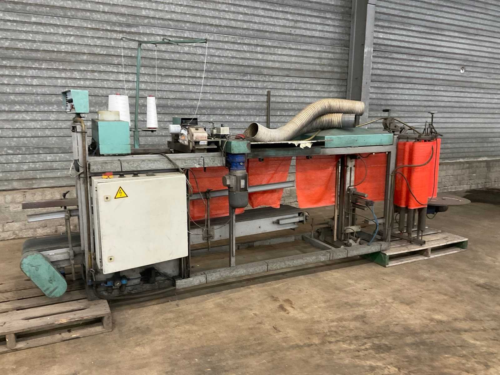 Voorzien van: Fischbein naaimachine, model: 199490, 10 thousand series. Nee Merk: Propak Type: BSM 2 Bouwjaar: 1992 Serienummer: 601-i4i Aansluiting: 400V Totale afmeting L: 4600mm Totale afmeting Breedte: 1100mm Totale afmeting Hoogte: 2000mm