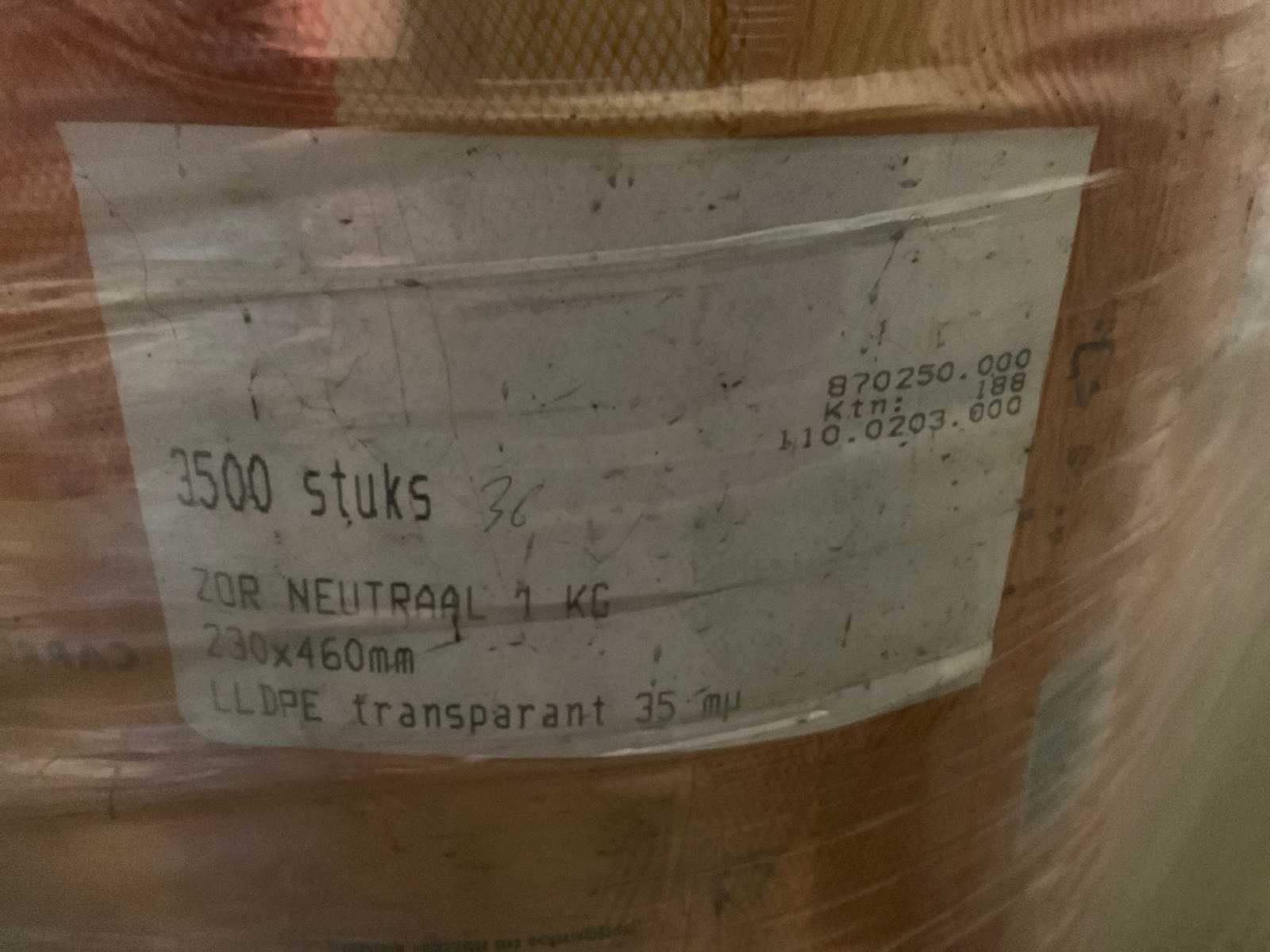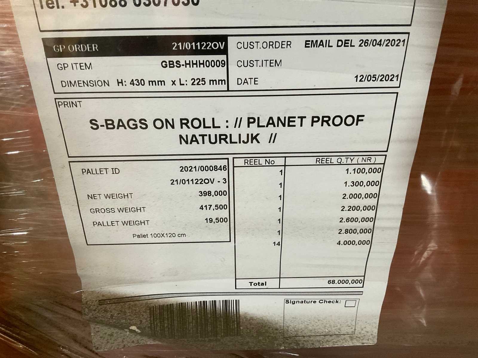 (8x) pallets met bedrukte folie, Formaat: 430x225mm. No Type: S-Bags on roll