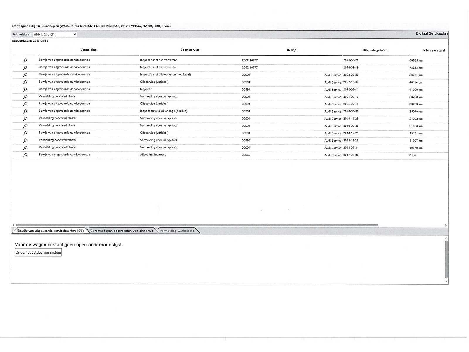 LET OP! Bieden is exclusief BPM deze verschijnt later op de factuur en bedraagt €4.428,-. Dus totale biedprijs + €4.428,-. De totaalprijs bij het bieden is dus exclusief BPM! Important: international buyers (within the EU) can purchase this lot without the remaining amount Dutch BPM tax ('rest-BPM'). For this lot, buyer pays the BPM tax as a deposit and after infinite registration of this lot in your EU-country within an agreed time frame, the deposit will be refunded. Dutch and non-EU buyers will pay the BPM via the invoice of this lot. International buyers pay the BPM as a deposit via the invoice of this lot. Voor vragen kunt u mailen naar info@auto-auctions.nl VIN/Chassis Number: WAUZZZFY4H2018447 Nee Kenteken: SB-729-S Merk: Audi Model: SQ5 Type: 3.0 TFSI quattro Bouwjaar: 2017 Afgelezen kilometerstand: 95205km Cilinderinhoud: 2995cc Vermogen (kW): 260kW Brandstof: Benzine Chassisnummer: WAUZZZFY4H2018447 Datum eerste toelating: 2017-05-29 APK vervaldatum: 2026-05-29 Vermogen (pk): 350hp Aandrijving: Vierwiel Aandrijving Aantal zitplaatsen: 5 Maximaal trekgewicht ongeremd: 2400kg Maximaal trekgewicht geremd: 750kg Kleur: Grijs Transmissie: Automatisch Emissieklasse: 6 Aantal deuren: 4 Aantal sleutels: 2 Ledig gewicht: 1845kg Bruto BPM (NL): 21085€ Rest BPM: 4428€ Aantal cilinders: 6 Carrosserie: SUV Onderhoudshistorie: Digitaal Volledig Aanwezig Carfax Link: https://was.carfax.eu/v0/api/ccdid/5100016408/svc/201/vinreg/SB729S/checksum/eyJhbGciOiJIUzI1NiIsInR5cCI6IkpXVCJ9.eyJleHAiOjE3Nzg0OTg1MDN9.1kRDRgEVSn61rSwRDIkXmju-KgbsXYhX75xaffHsv44 Start en rijdt: Ja Vierwielaandrijving 4x4: true