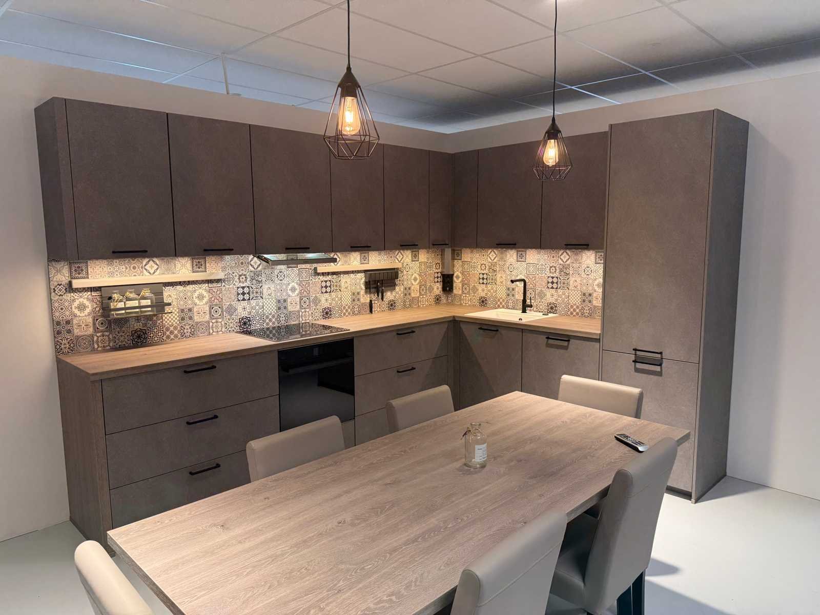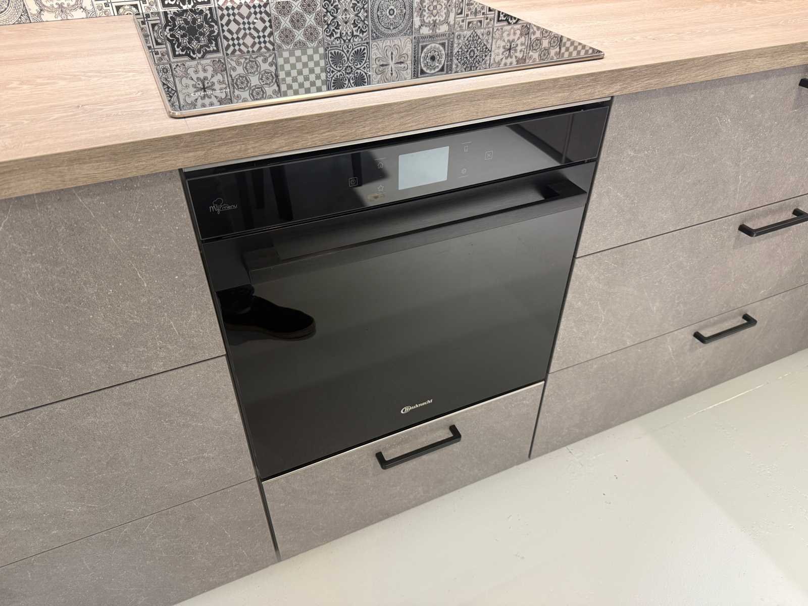 Afmetingen linkerdeel circa 328x60x98 cm; afmetingen rechterdeel circa 248x60x230 cm; keuken dient gedemonteerd te worden op locatie; zonder tafel en stoelen Nee Merk: Nobilia Type keukenopstelling: Hoek Kraan: Gessi Gootsteen: Schock Aanrechtblad: Kunststof Fornuis: Bauknecht BS1260fne Koelkast: Bauknecht KGITN 20F3 MA Softclose: true Oven: Bauknecht BIK9 PP8TS2 BM Afzuigkap: Elica EO17EII-027-001 Vaatwasser: Bauknecht BCIC 3C26 ES Kleur: Grijs
