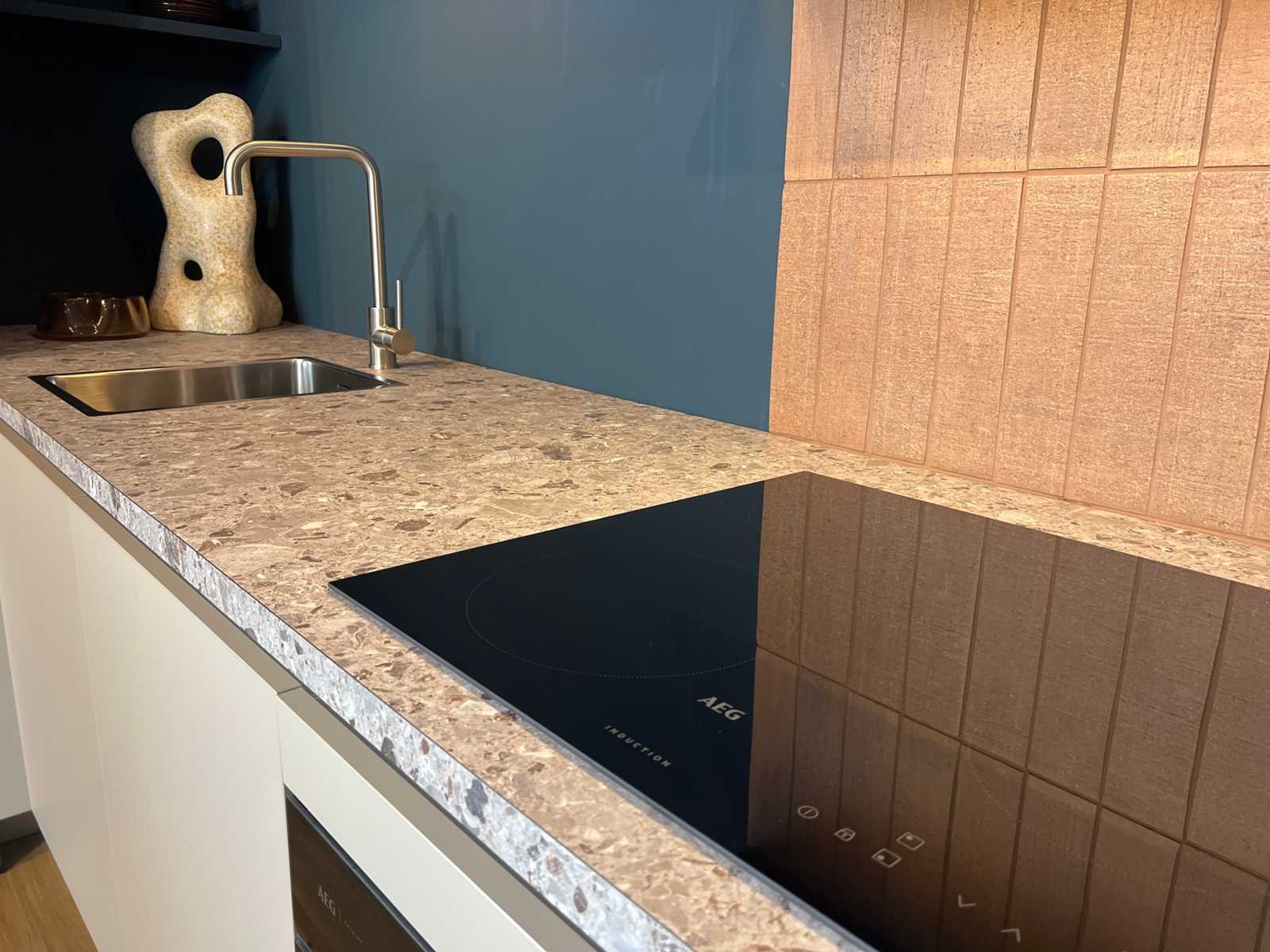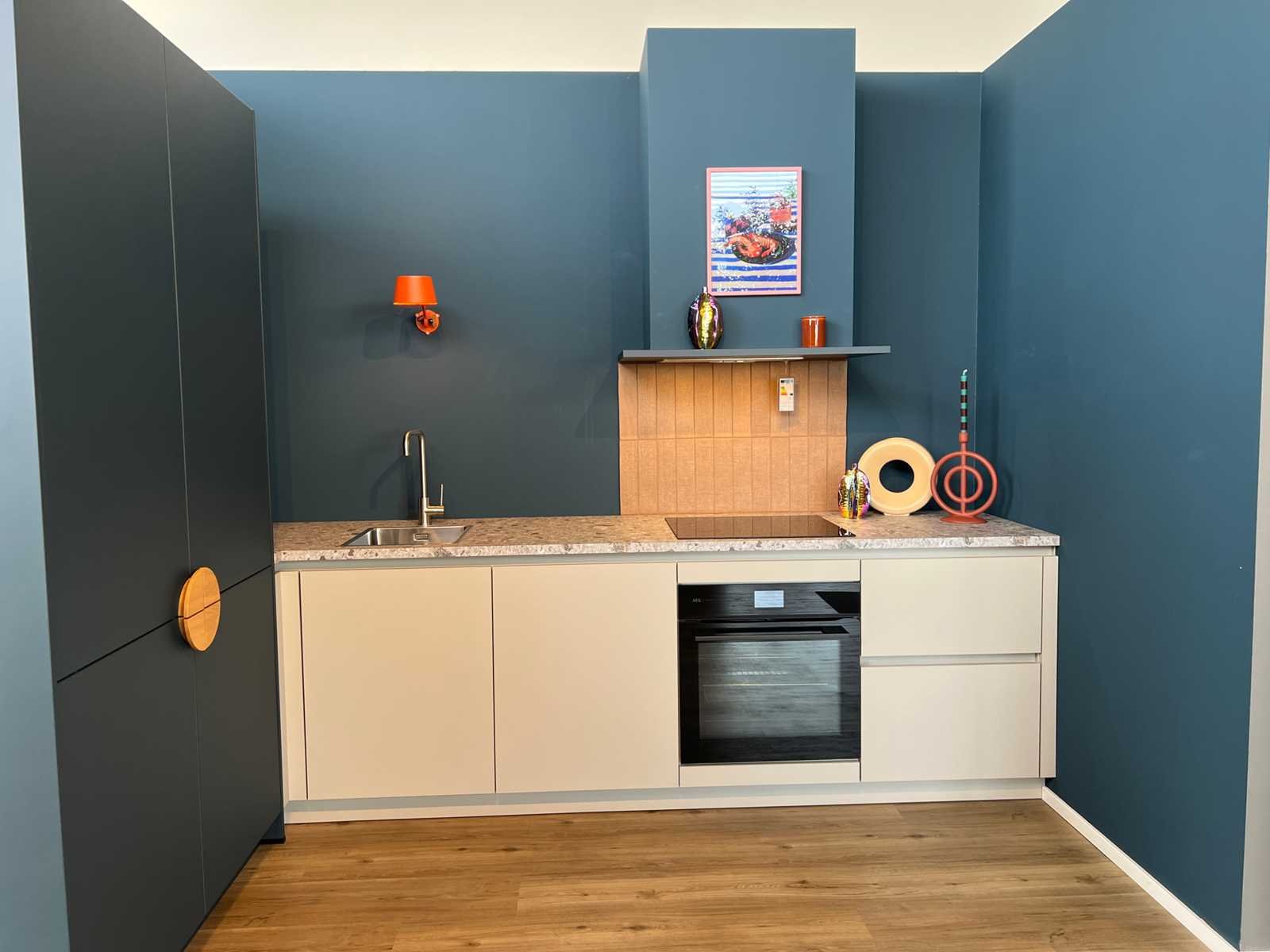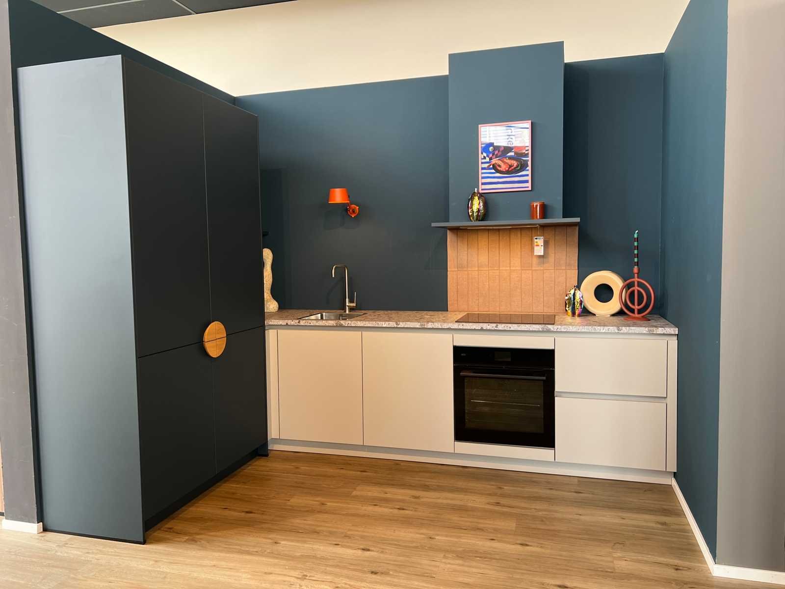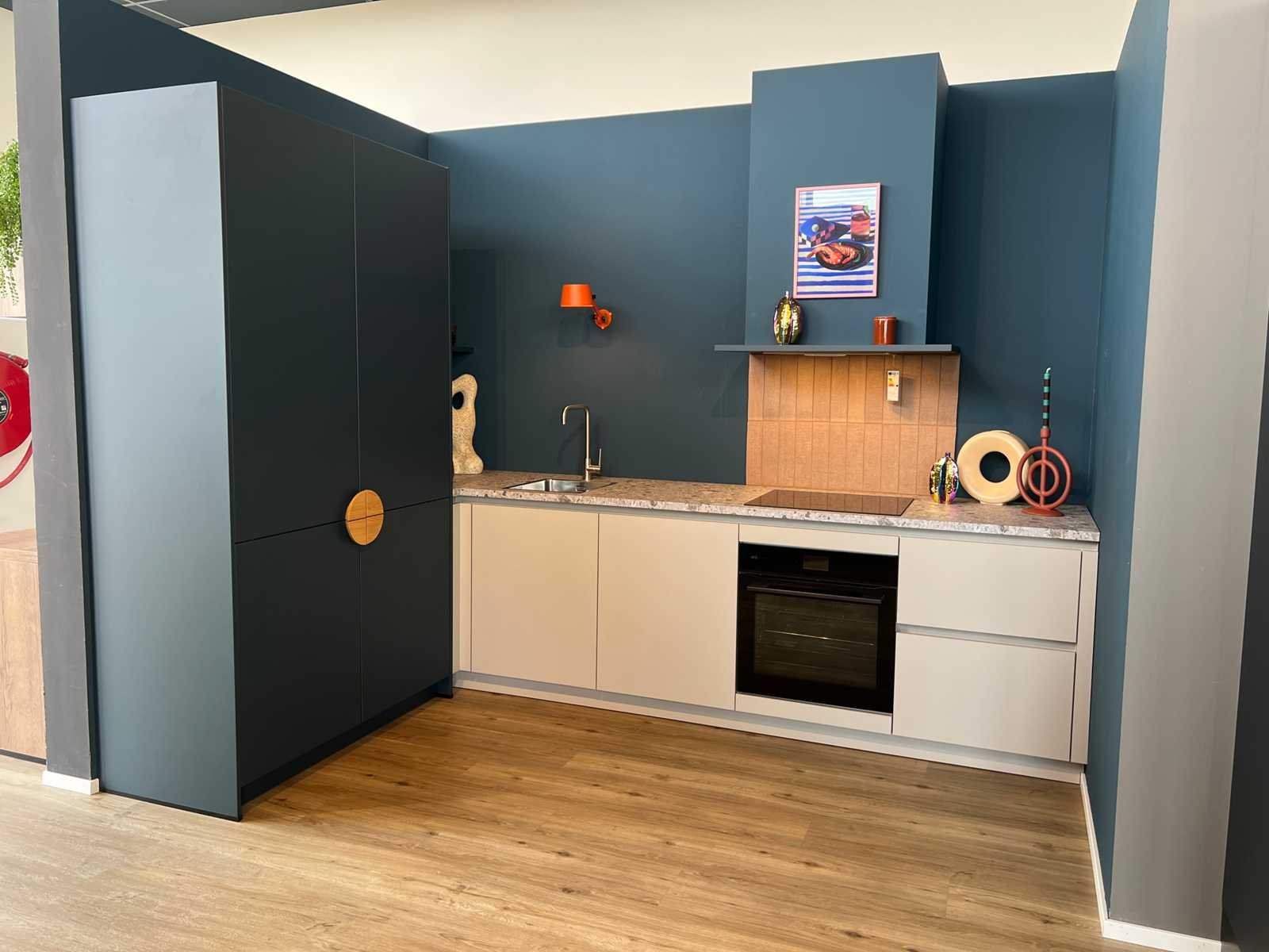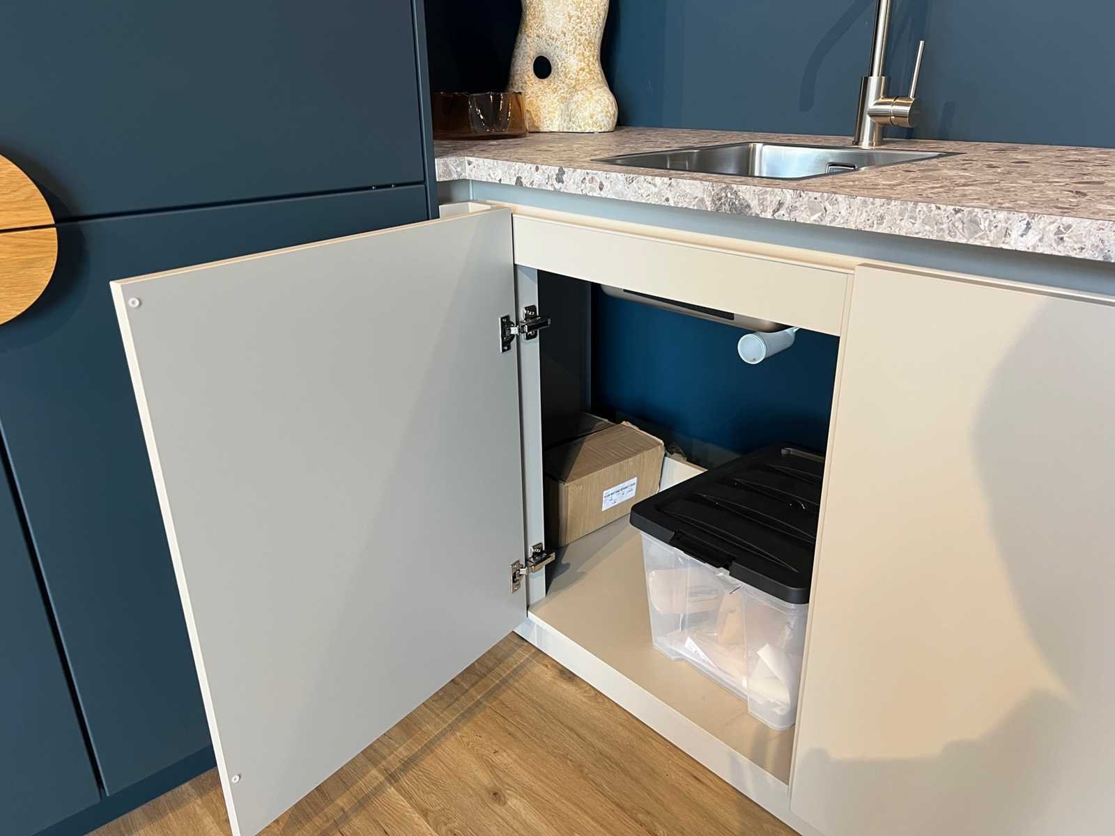Afmetingen kastenwand circa 187x60x220 cm; reeds gedemonteerd en ingepakt op pallets. (afstapelen, omruilen of statiegeld per pallet); pallets zijn niet inbegrepen; statiegeld betalen bij afhalen, of pallets afstapelen; werkblad niet ingepakt op pallets (26-SKV-03799) Nee Merk: Schüller Type keukenopstelling: Hoek Lengte: 311cm Breedte: 60cm Hoogte: 90cm Kraan: Lanesto Gootsteen: Lanesto Aanrechtblad: Decortop Fornuis: AEG Koelkast: AEG NSK6D181CC Softclose: true Oven: AEG BP7200B Afzuigkap: AEG DGB2531M Vaatwasser: Juno JGVN606E4 Kleur: Kiezelgrijs / diepblauw