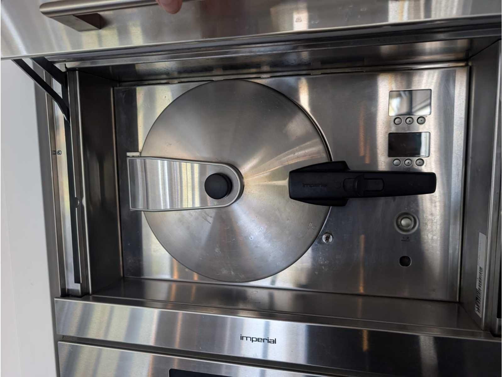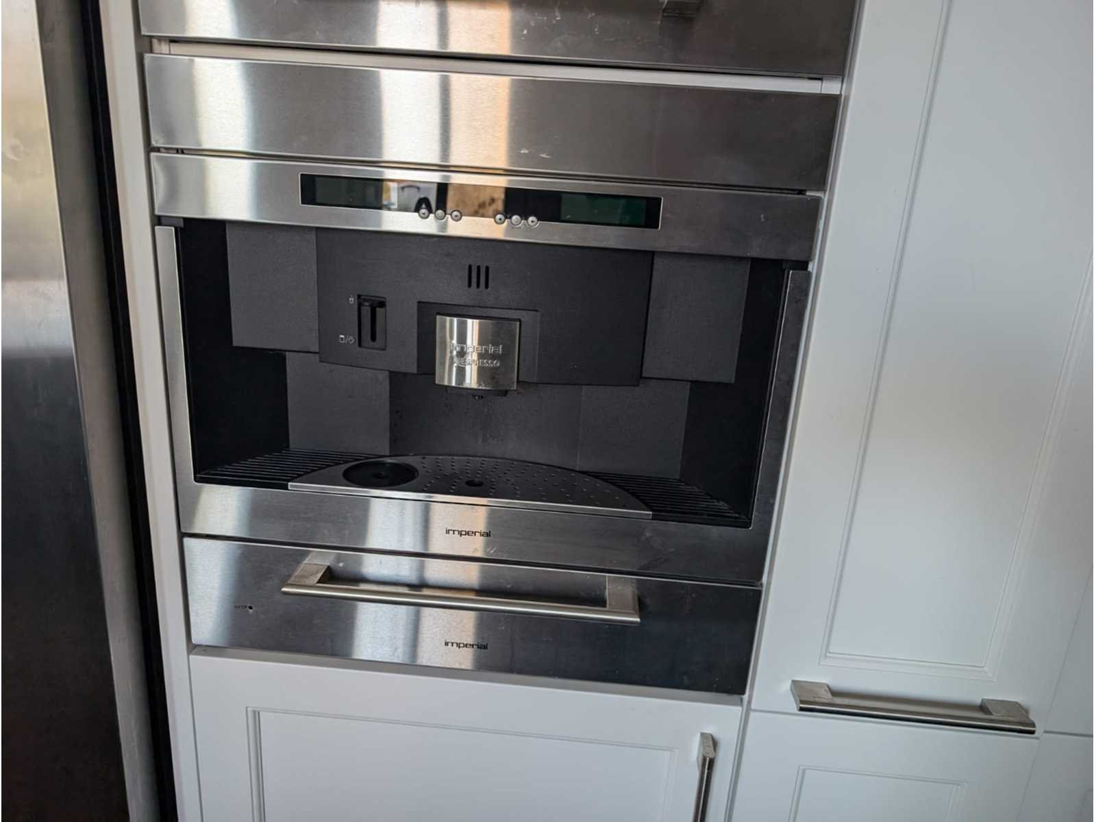 Conditie: gebruikt; met warmhoudlade Imperial; met hogedruk stoomoven Imperial; let op, één hoge kast uit kastenwand ontbreekt; lichte beschadiging aan één frontje; reeds gedemonteerd en ingepakt op pallets (afstapelen, omruilen of statiegeld per pallet); pallets zijn niet inbegrepen; statiegeld betalen bij afhalen, of pallets afstapelen; werkblad niet ingepakt op pallets (25-2DE-02960) Nee Merk: Siematic Type keukenopstelling: Eiland Aanrechtblad: Graniet Koffiezetapparaat: Imperial Magnetron: Imperial Fornuis: Imperial Koelkast: General electric GCE21LGWAFBB Softclose: true Oven: Imperial Afzuigkap: Novy Vaatwasser: Siemens SN658X04TE
