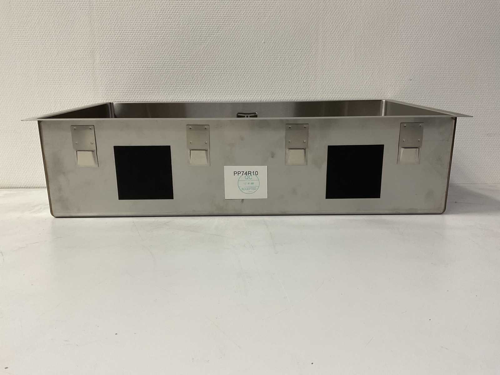 Nee Merk: Caressi Model: Rechthoek Product type: CAPP74R10 Kleur: Zilver Lengte: 78cm Breedte: 44cm Hoogte: 18cm Materiaal: RVS