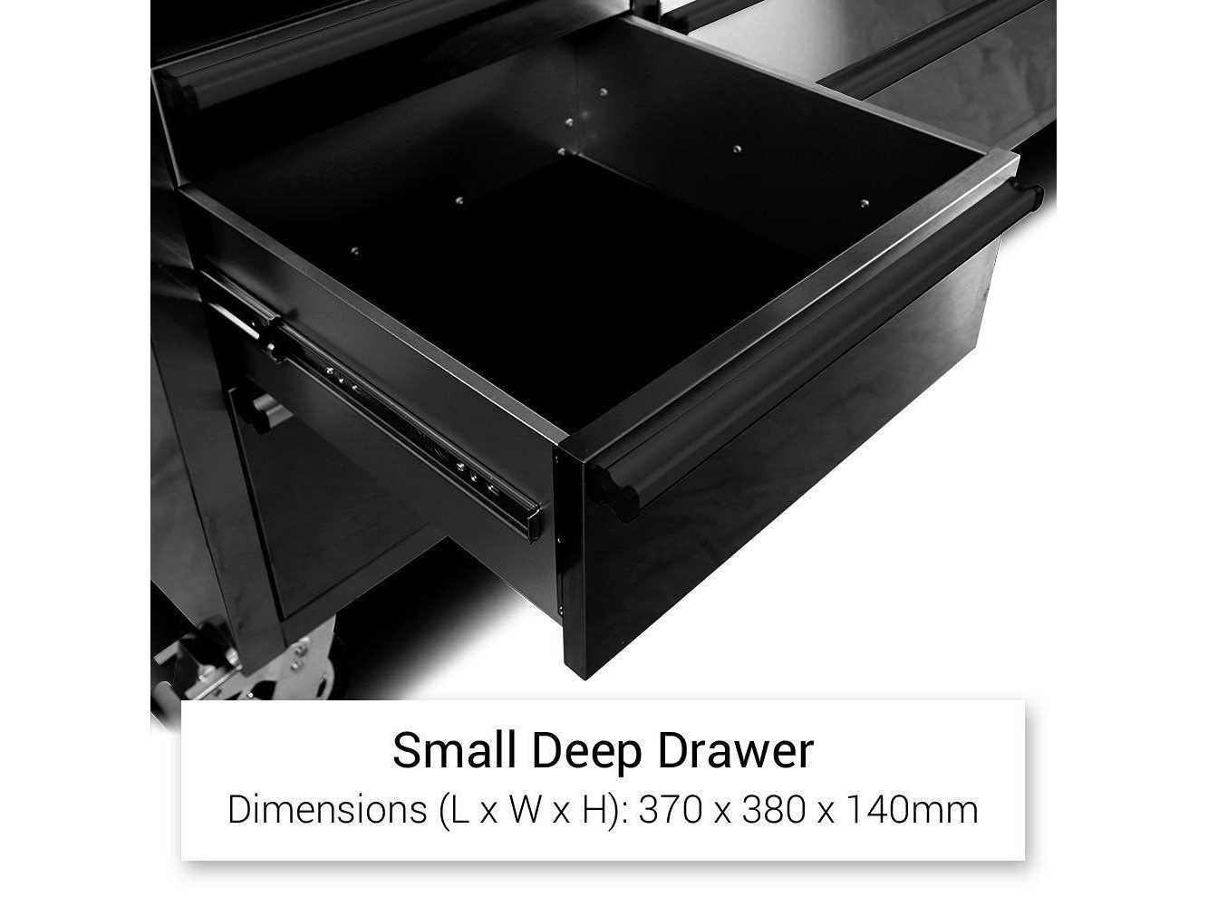Breedte 180 cm Voorzien van poedercoating, luxe afgewerkt rubberhouten werkblad, 15 laden, 4 zwenkwielen (2 voorzien van rem), ongebruikt in doos. No Merk: Field Type: 7215 Black Premium Bouwjaar: 2025
