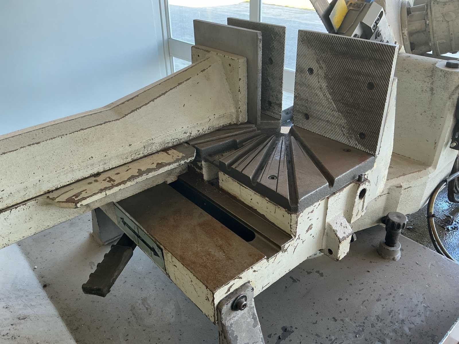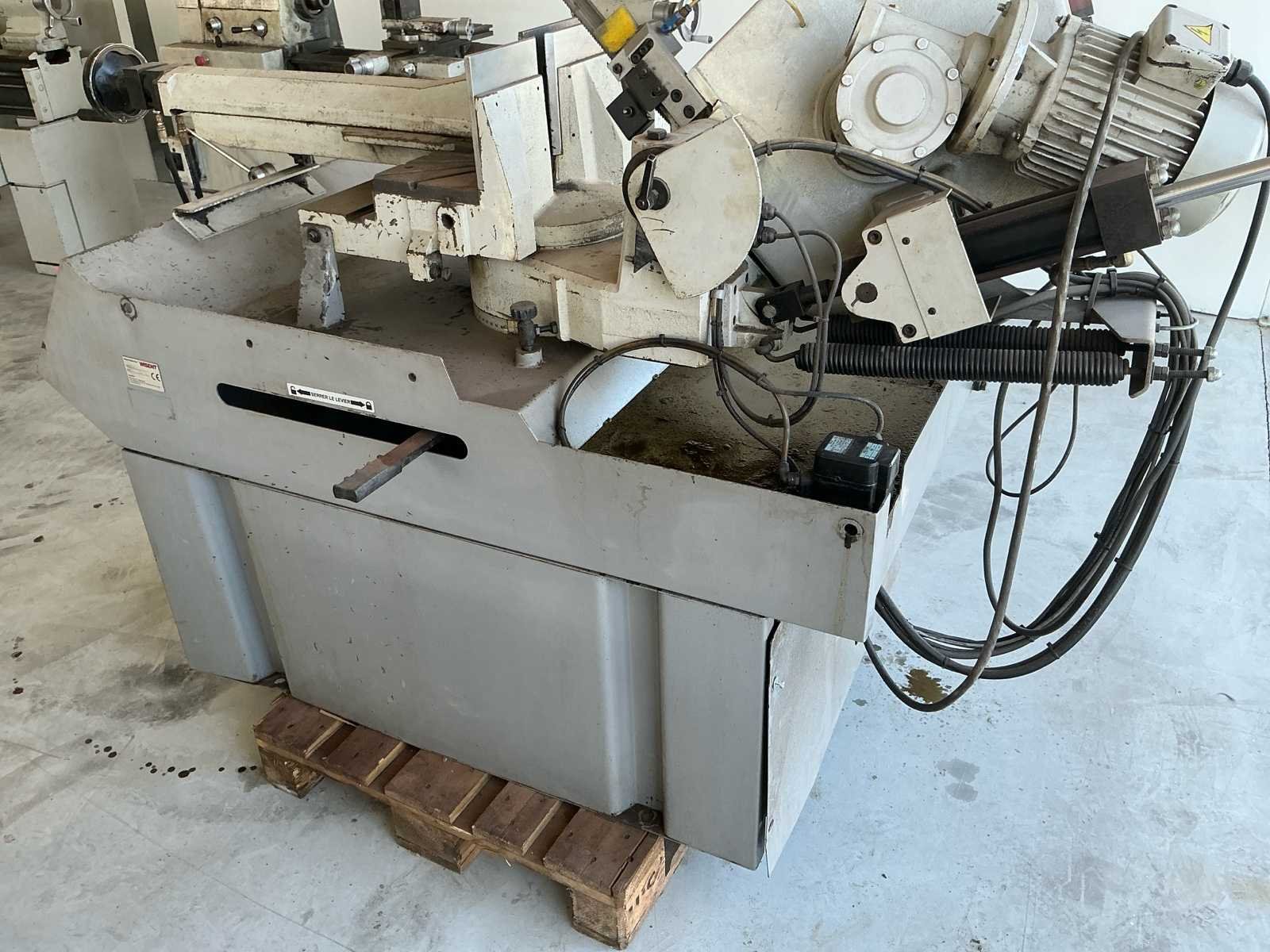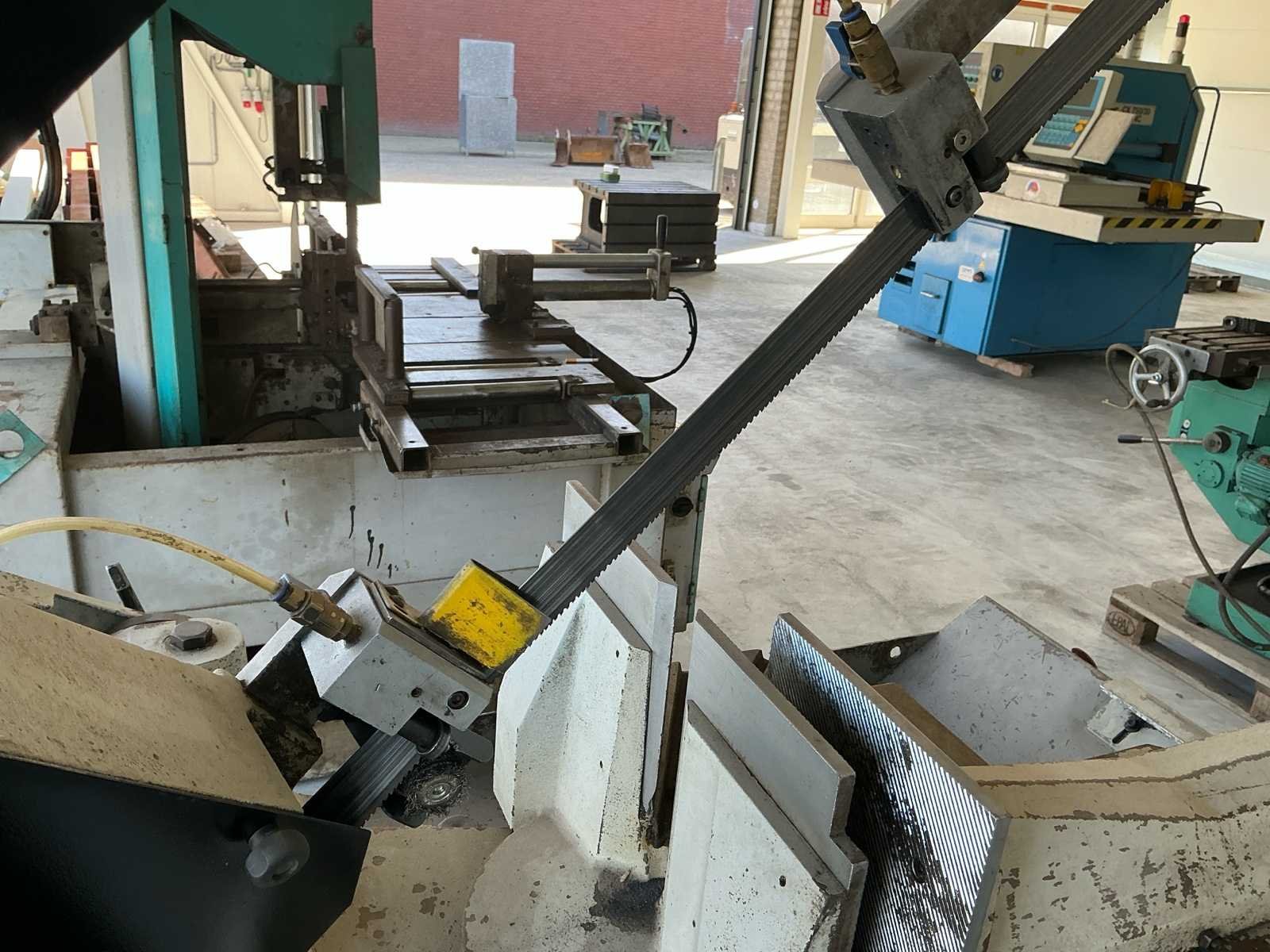 Voorzien van: WISENT 530HA Halfautomatische Metaalbandzaag, bouwjaar 2020, dubbel verstek (links en rechts zwenkbaar), voltage 3Ph / 400Volt, motorvermogen 2,2kW, zaagsnelheid variabel 20~80 m/min, klemopening 545 mm, koelvloeistofsysteem, verstekinrichting L+R 45 – 0 – 60°, afm. zaagblad mm. 3.770 x 34 x 1,1, gewicht ca. 700 kg, capaciteit rond 90° 355 mm, vierkant 90° 300 x 300 mm, rechthoek 90° 490 x 300 mm, rond 45° L 290 mm, vierkant 45° L 250 x 250 mm, rechthoek 45° L 250 x 250 mm, rond 45° R 350 mm, hydraulische klem, traploos instelbare zaagvoeding, automatische zaagboog opheffing met hoogte instelling en koelvloeistofinstallatie, machine is geschikt voor zwaarder en continue zaagwerk tot Ø 355mm. Nee Merk: Wisent Type: LZ 530HA Bouwjaar: 2020 Serienummer: 20175231 Werkbreedte: 545mm Zaagblad afm. l: 3770mm Zaagbladdikte: 1.1mm Motorvermogen (kW): 2.2kW Machinegewicht: 700kg