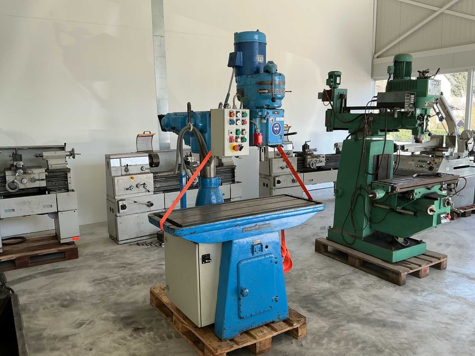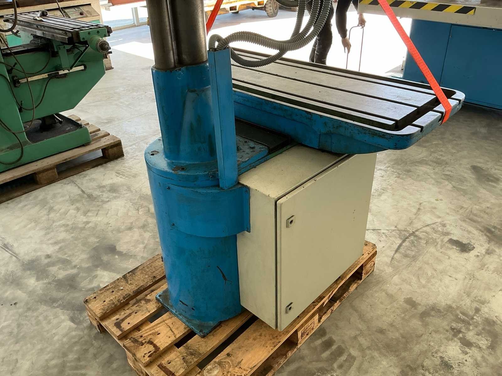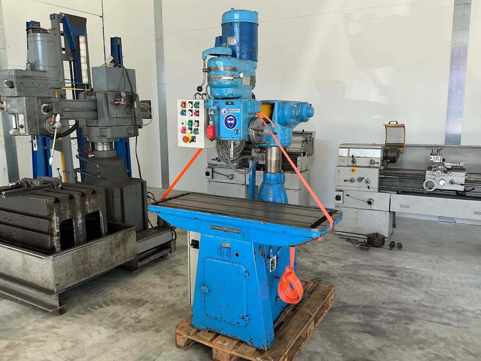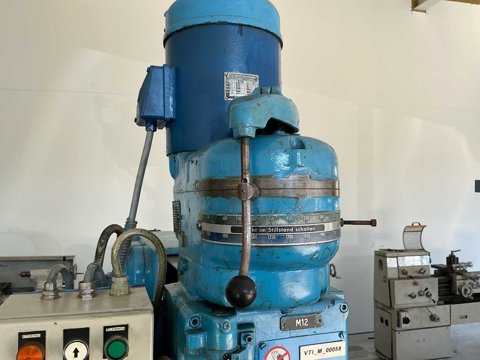 Voorzien van: Otto Müller, M12, snel radiaalboormachine, aansluiting: 380 V – 50 Hz, mechanisch geschakeld toerental, radiaal verstelbare arm, verticale armverstelling langs kolom, spindel met handvoeding, massieve gietijzeren werktafel met T-sleuven, boorspindel opname (morse): 30mm, langsverplaatsing boorkop (X-as): 750 mm, hoogteverplaatsing arm (Y-as): 350 mm, spindeldiameter: 55 mm, max boordiepte: 125 mm, toerental: 2400 rpm, afmetingen: 175x130x215cm (LxBxH), voeding: 380v Nee Merk: Otto Müller Type: SR23 Snelheid tot n =: 2400rpm Boordiepte: 125mm Opname mc: 30 Aansluiting: 380V Afmeting l: 1750mm Afmeting b: 1300mm Afmeting h: 215mm