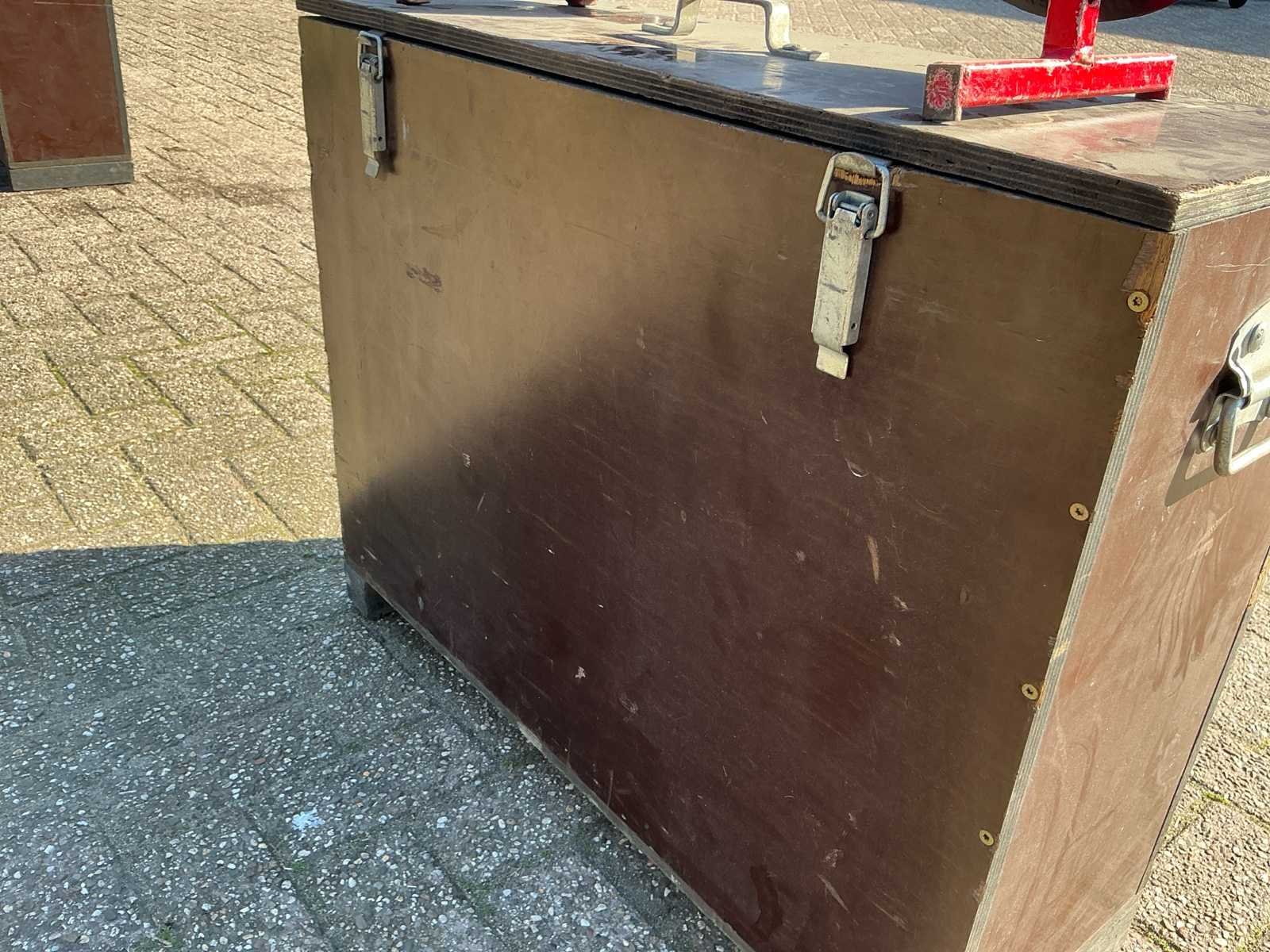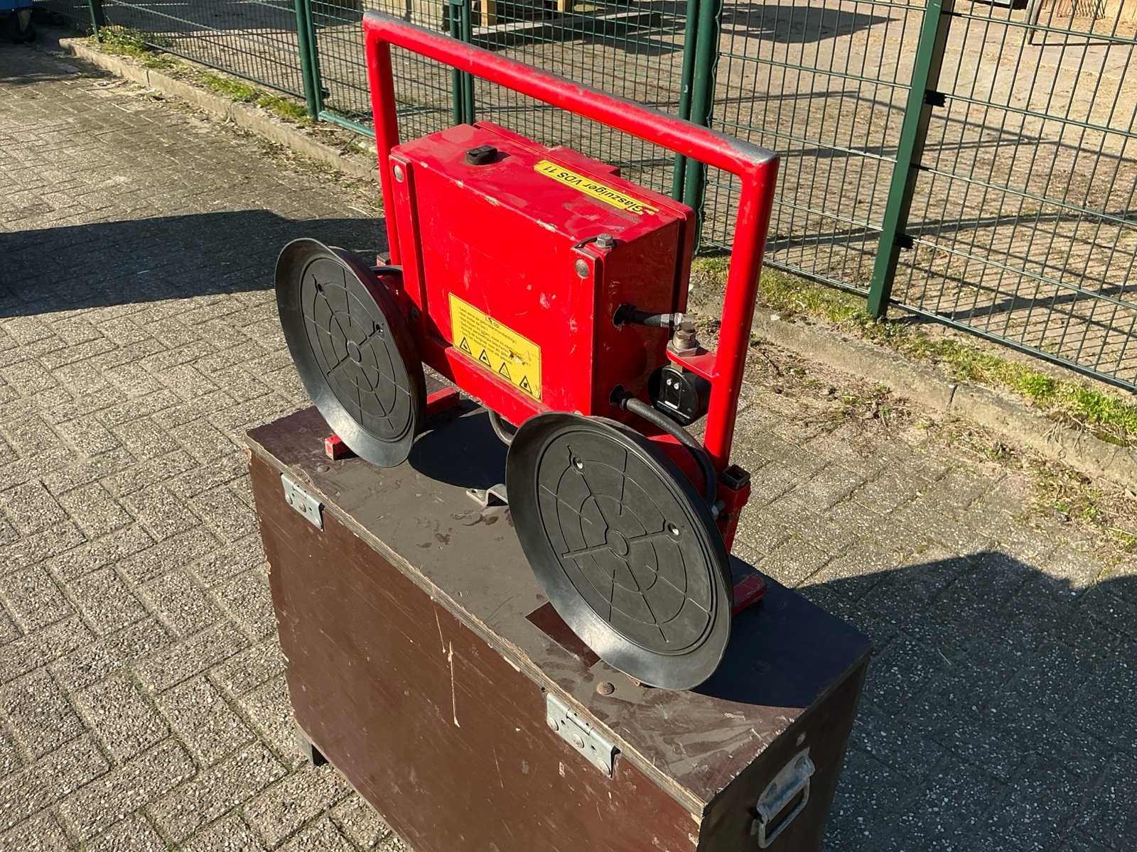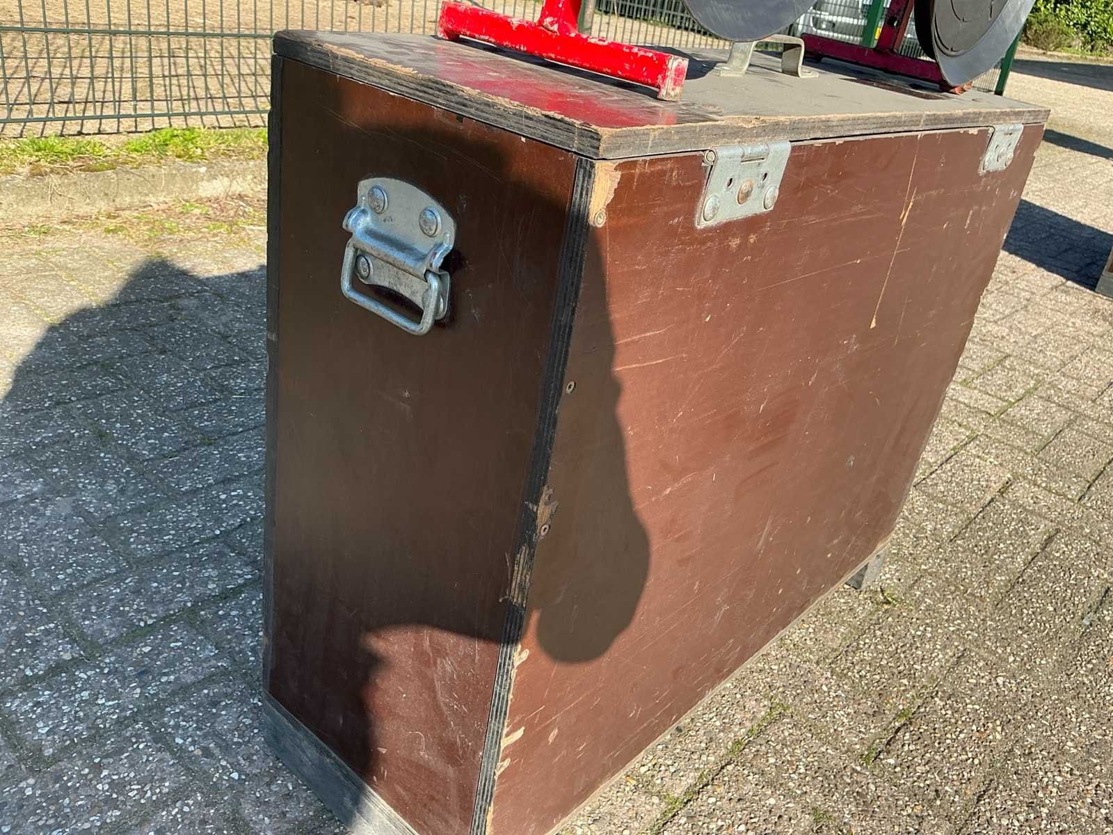 Voorzien van: houten koffer, barmeter, voltmeter No Merk: Muyen BV Type: VA600 Bouwjaar: 2012 Serienummer: 4641-1204 Hijsvermogen: 250kg Afmeting l: 750mm Afmeting b: 240mm Afmeting h: 560mm Eigen gewicht: 16kg