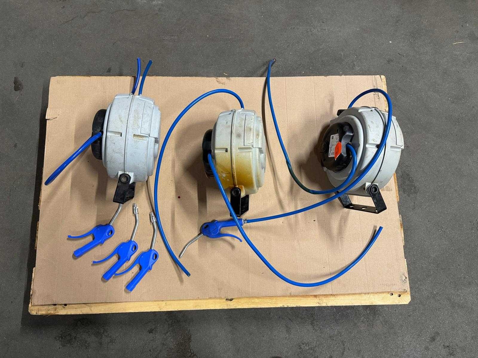 3X MAVEL ROLL MASTER PLUS 12M 6MM SLANGHASPEL Mavel Roll Master Plus luchthaspel met 12 meter ¼" slang. Gesloten haspel voorzien van een 12 meter lange blauwe PU slang. Met een maximale werkdruk van 10 bar. Daarnaast is deze Mavel haspel zwenkbaar uitgevoerd. Deze haspel is eventueel te voorzien van een slow motion. Zodat de slang gecontroleerd oprolt. Lengte slang: 12 meter Diameter slang: 1/4" Maximale druk: 10 bar Zwenkbaar: ja Materiaal slang: PU Met 3 nieuwe luchtspuitjes Nee Merk: MAVEL ROLL Type: MASTER PLUS 12M 6MM