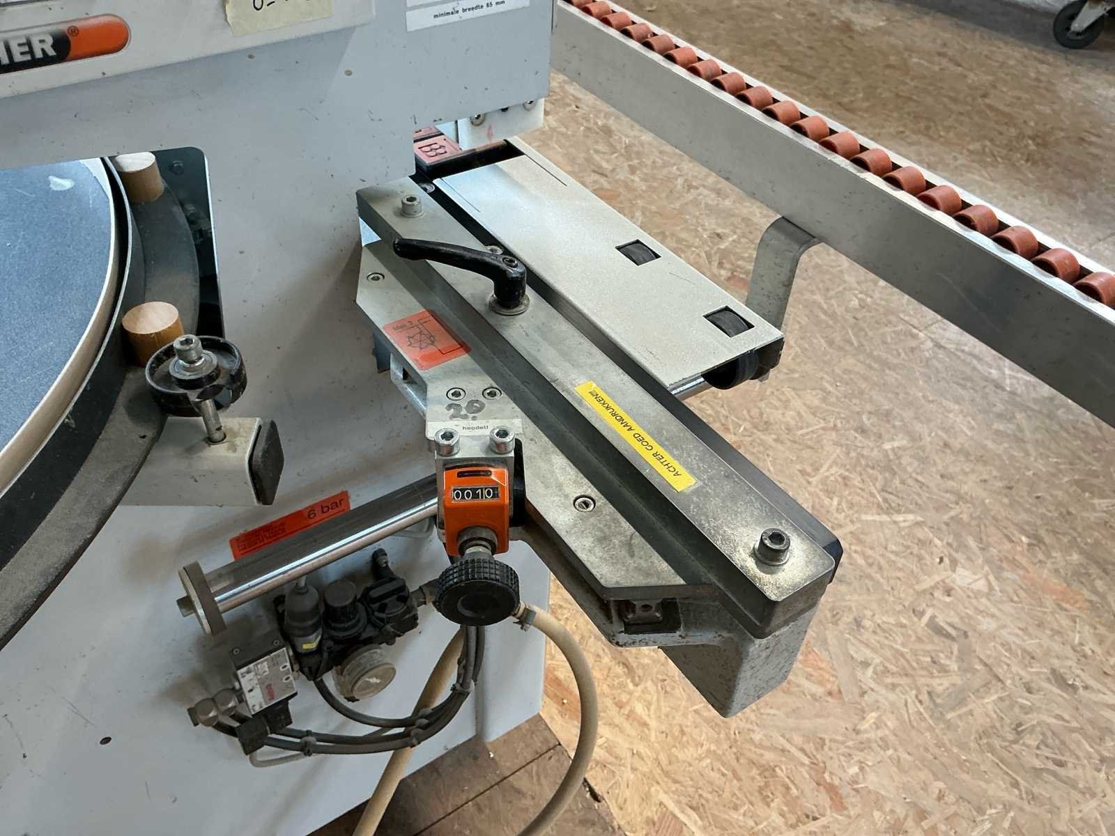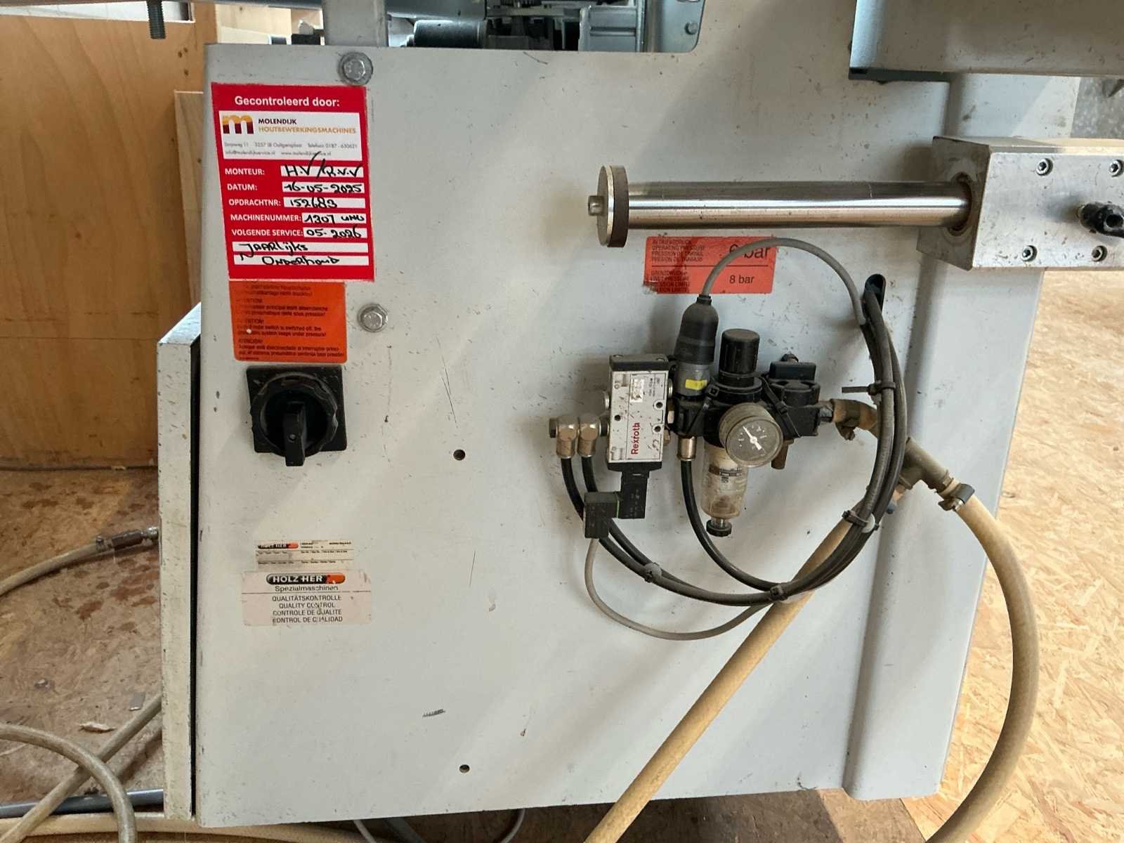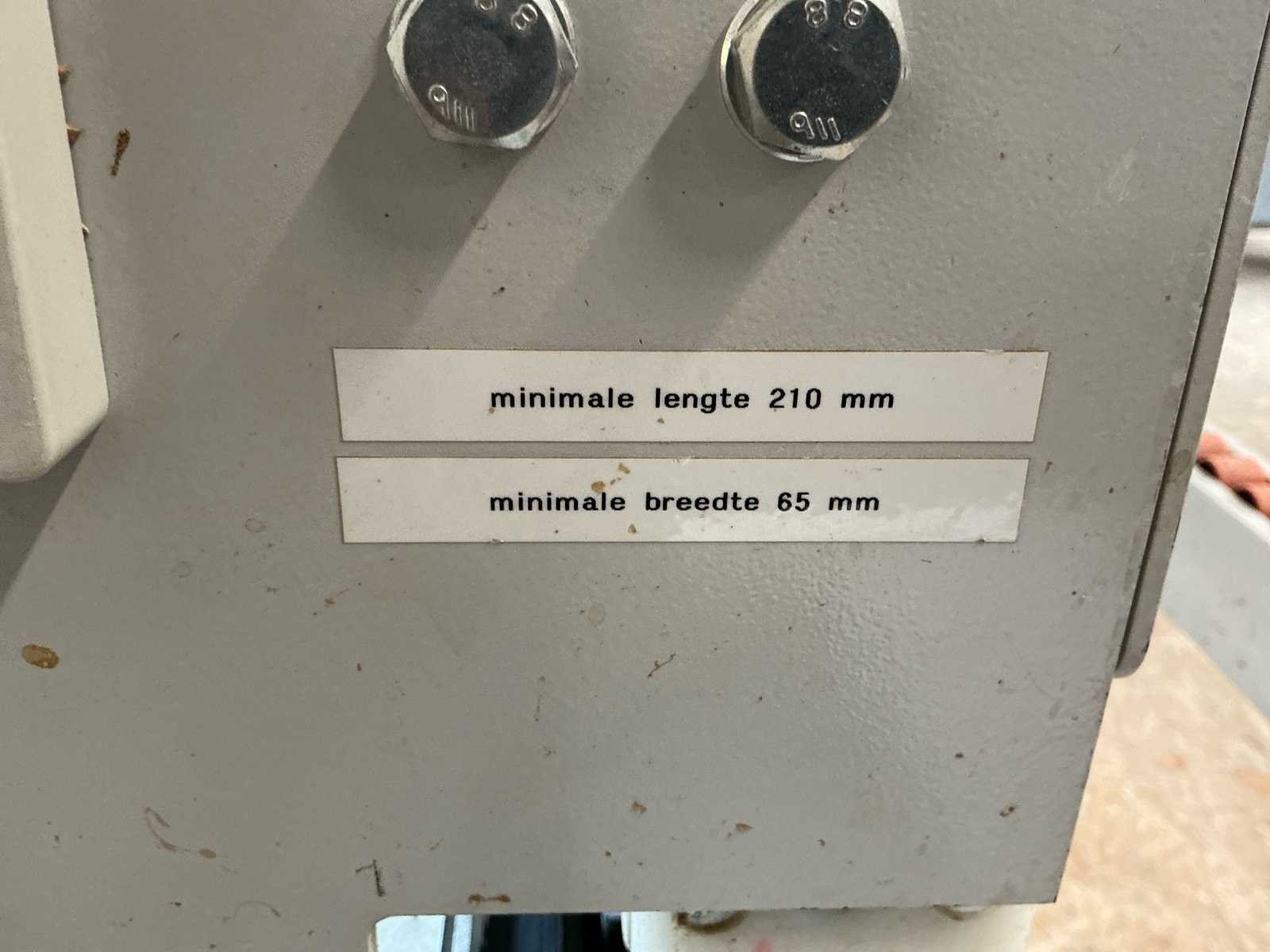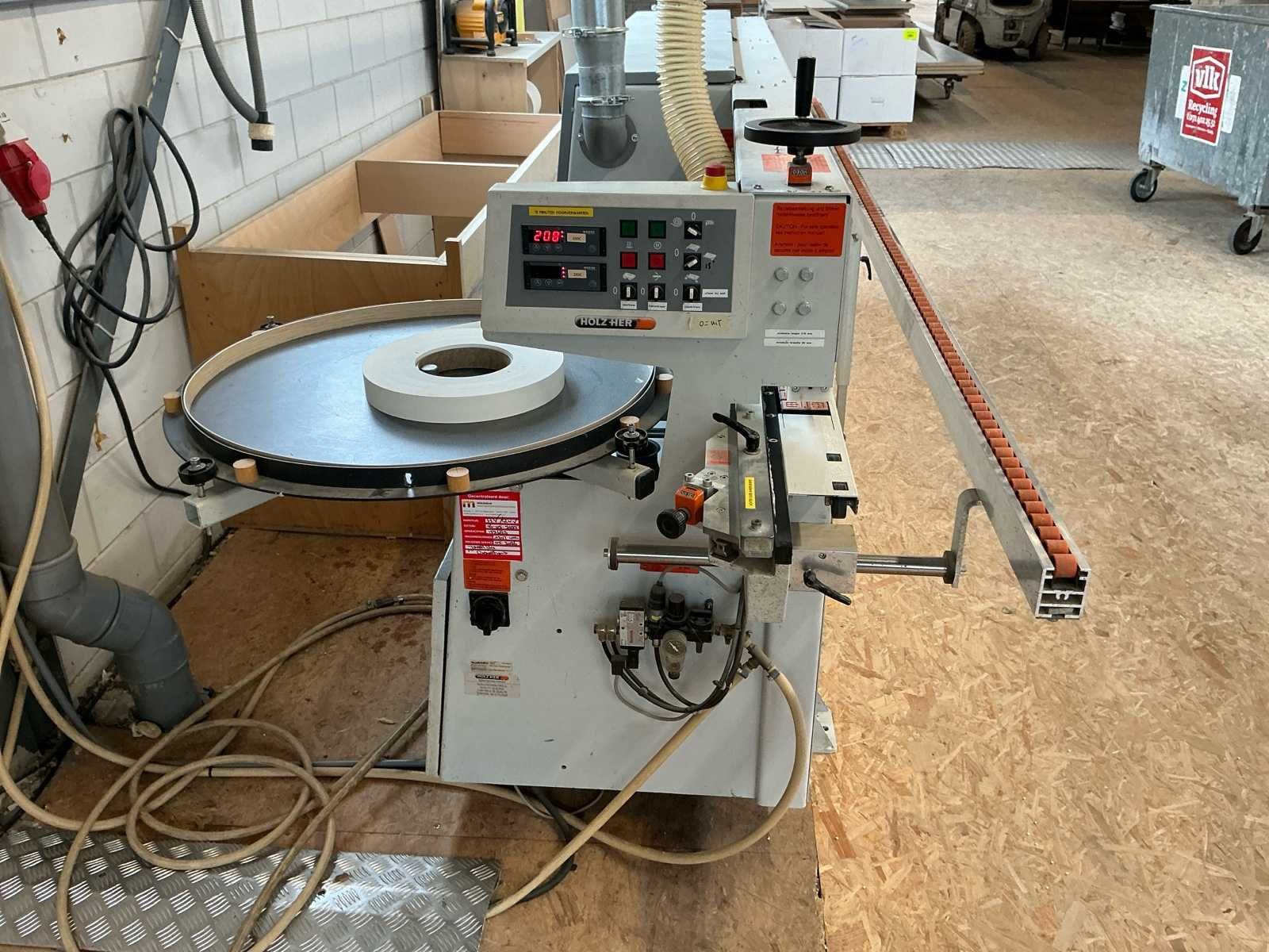 Voorzien van handleiding; Elektrisch Spanning: 400 V AC Fasen: 3 ~ Frequentie: 50 Hz Stuurspanning: 24 V DC Volbelastingsstroom: 55,60 A Max. zekering (traag): 63 A Waarde grootste verbruiker vermoedelijk 21,9 A, zie afbeelding Afmetingen Lengte: 4191 mm Breedte: 934 mm Hoogte: 1299 mm Capaciteit Paneeldikte: 6 – 50 mm Kantdikte: 0,4 – 3 mm Min. werkstukbreedte: 65 mm Min. werkstuklengte: 160 mm Doorvoersnelheid: 10 m/min Luchtdruk: 6 bar Uitvoering / Units Voorfrees: 1801 Lijmstation: 1906MG Glu Jet (cartridge, closed system) Drukunit: 1912-3 Kopse afkorting: 1918P (2 x 4,5 kW, 9000 RPM) Boven/onder trim: 1825 (2 x 0,6 kW, 18.000 RPM) Hoekafronding: 1832 (0,22 kW, 9000 RPM) Schraapunit: 1929 Polijstunit: 1940 (2 x 0,09 kW, 1440 RPM) Magazijn: 1806-1 Nee Merk: Holzher Type: Auriga - UNO 1307 Bouwjaar: 2008 Serienummer: 73/0-809 5014178 Paneeldikte: 50mm Min. werkstuklengte: 210mm Min. werkstukbreedte: 65mm Zaagunit: true Voorfreesunit: true Freesunit: true Rondloopunit: true Schraapunit: true Aansluiting: 400V Afmeting l: 1200mm Afmeting b: 4200mm Afmeting h: 1380mm