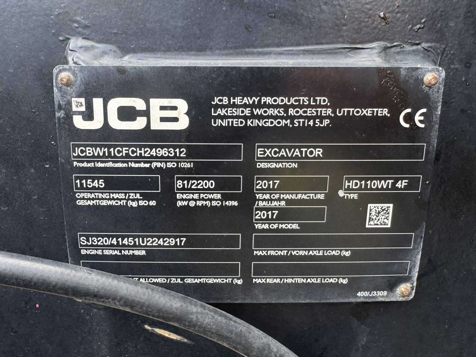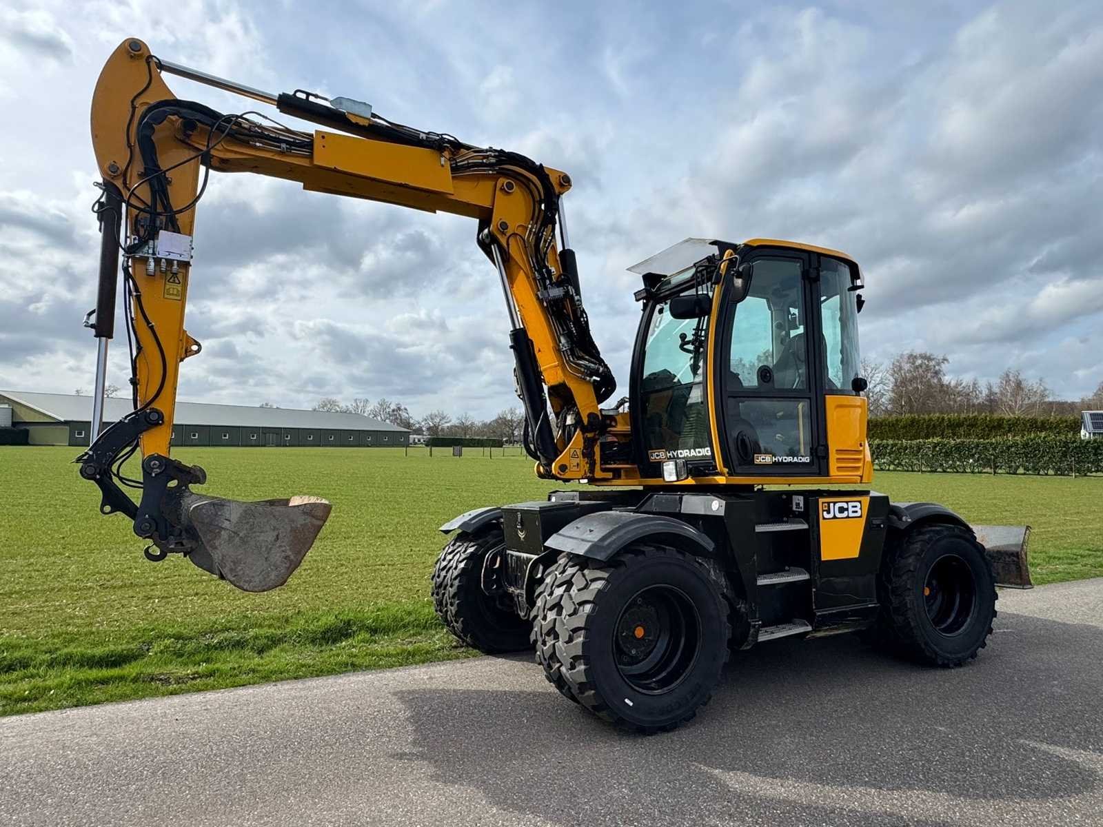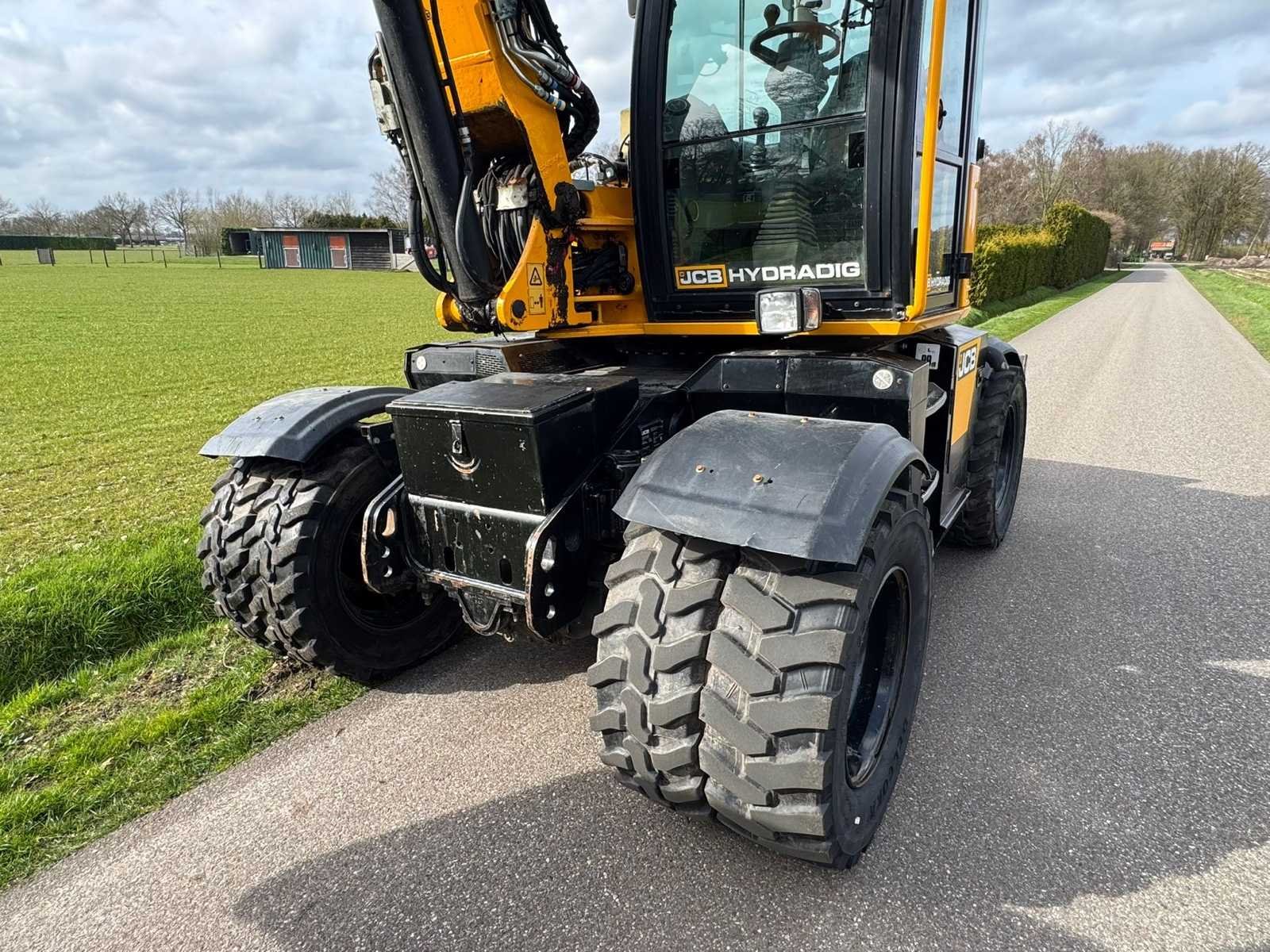 Deze machine is voorzien van een Brandstof vulpomp, Led verlichting rondom, CW10 hydraulische snelwissel + graafbak met omkeer oren, Giekvering / dansonderdrukking, 4 wiel besturing, extra hydraulische functies, stelgiek. 100 draaiuren geleden zijn de injectoren vervangen. No Merk: JCB Type: Hydradig Bouwjaar: 2017 Serienummer: JCBW11CFCH2496312 Merk motor: JCB Motorvermogen (kW): 81kW Brandstof: Diesel Max. werkbereik: 7780mm Max. graafdiepte: 4410mm Met graafbak: true Bandenmaat: 405/70x20 16 PR Cabine: true Afgelezen urenstand: 6000 Eigen gewicht: 11545kg Totale afmeting L: 7750mm Totale afmeting Breedte: 2420mm Totale afmeting Hoogte: 3300mm