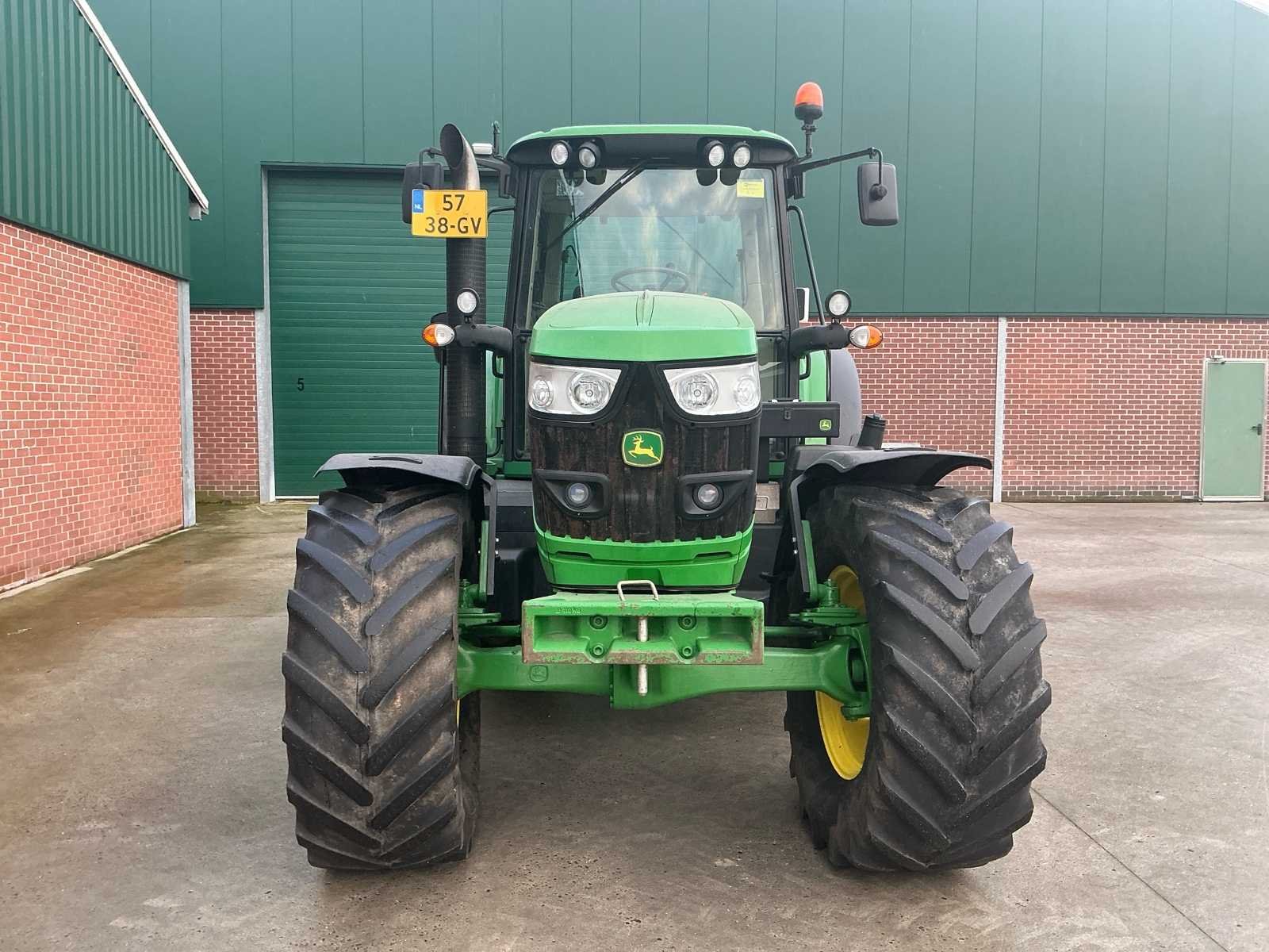 Voorzien van: K80 koppeling, 7 polige stekker, werklampen, radio, lucht geveerde stoel, 2x dubbelwerkend hydraulisch ventiel achter, power beyond (load-sensing), airconditioning, PowerQuad Plus transmissie (powershift), JD 6-cilinder 6,8L turbo-dieselmotor (150PK + 25PK boost), hydraulisch geveerde vooras, K80 ondertrekhaak, pitonfix ondertrekhaak, topstang, Nederlandse kentekenregistratie, Nee Merk: John Deere Type: 6150M Bouwjaar: 2015 Serienummer: 1L06150MCFG822418 Kenteken: 5738GV Motorvermogen (kW): 112kW Afgelezen urenstand: 13908 Versnellingsbaktype: PowerQuad Aftakastoerental: 540rpm Aantal hydraulische ventielen achter: 2 Bandenmaat voor: 540/65R28 Bandenmaat achter: 659/65R38 Cabine: true Eigen gewicht: 6200kg Totale afmeting L: 4950mm Totale afmeting Breedte: 2500mm Totale afmeting Hoogte: 3000mm Kentekenpapieren compleet?: true Chassisnummer: 1L06150MCFG822418 Datum eerste toelating: 2015-06-30 Nationaliteit documenten: NL