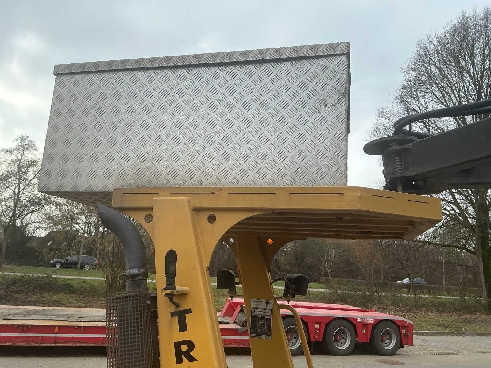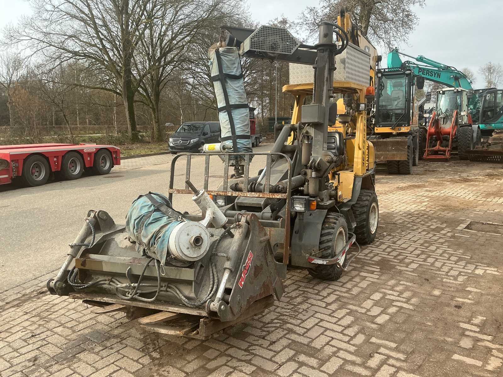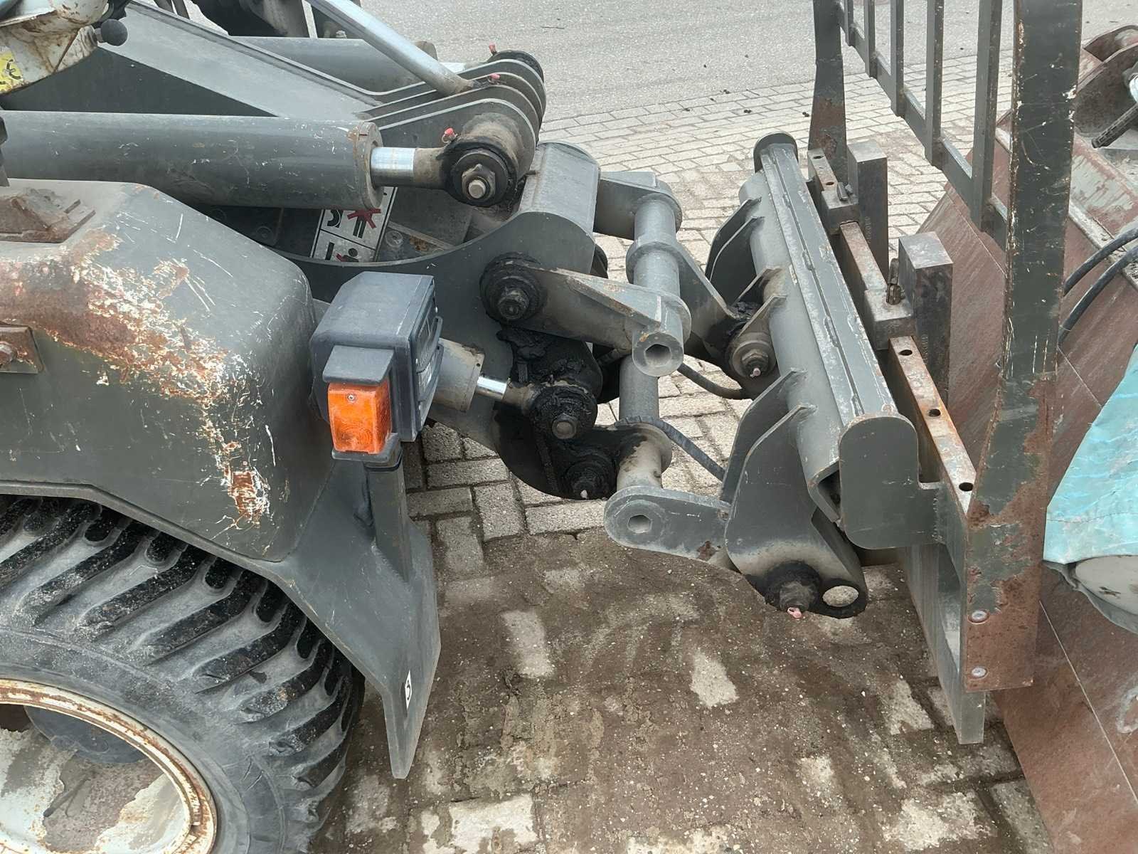 Voorzien van hydraulische uitschuifbare mast. Met Transmanut Potence 300kg en Magsi puinbak, hefvermogen: 1800kg. Nee Merk: Transmanut Type: ETP 2004 Bouwjaar: 2006 Serienummer: 1098-0906 Merk motor: Kubota Motorvermogen (kW): 75kW Aantal cilinders: 4 Brandstof: Diesel Afgelezen urenstand: 1741 Eigen gewicht: 5200kg Totale afmeting L: 6000mm Totale afmeting Breedte: 1450mm Totale afmeting Hoogte: 2700mm