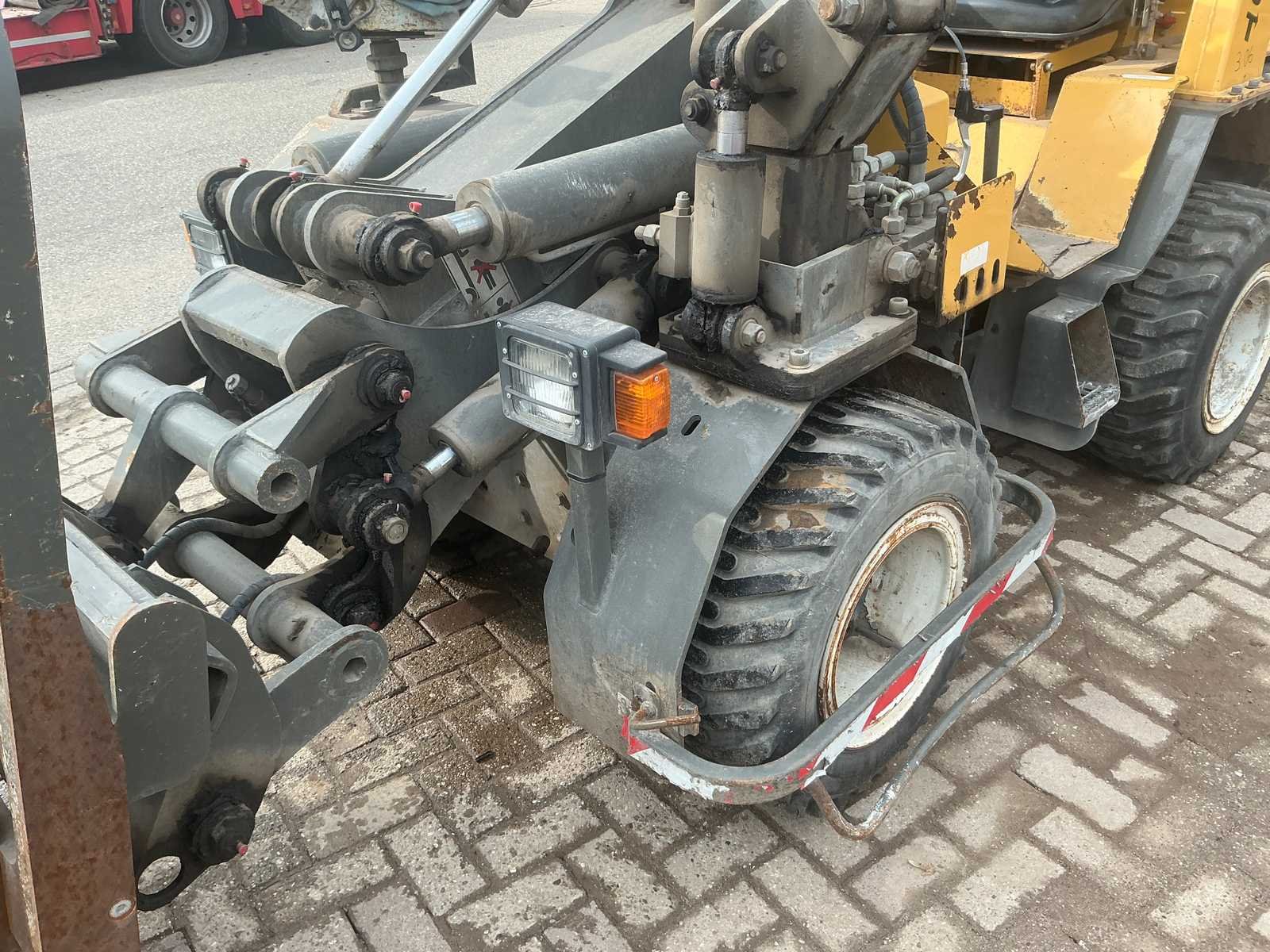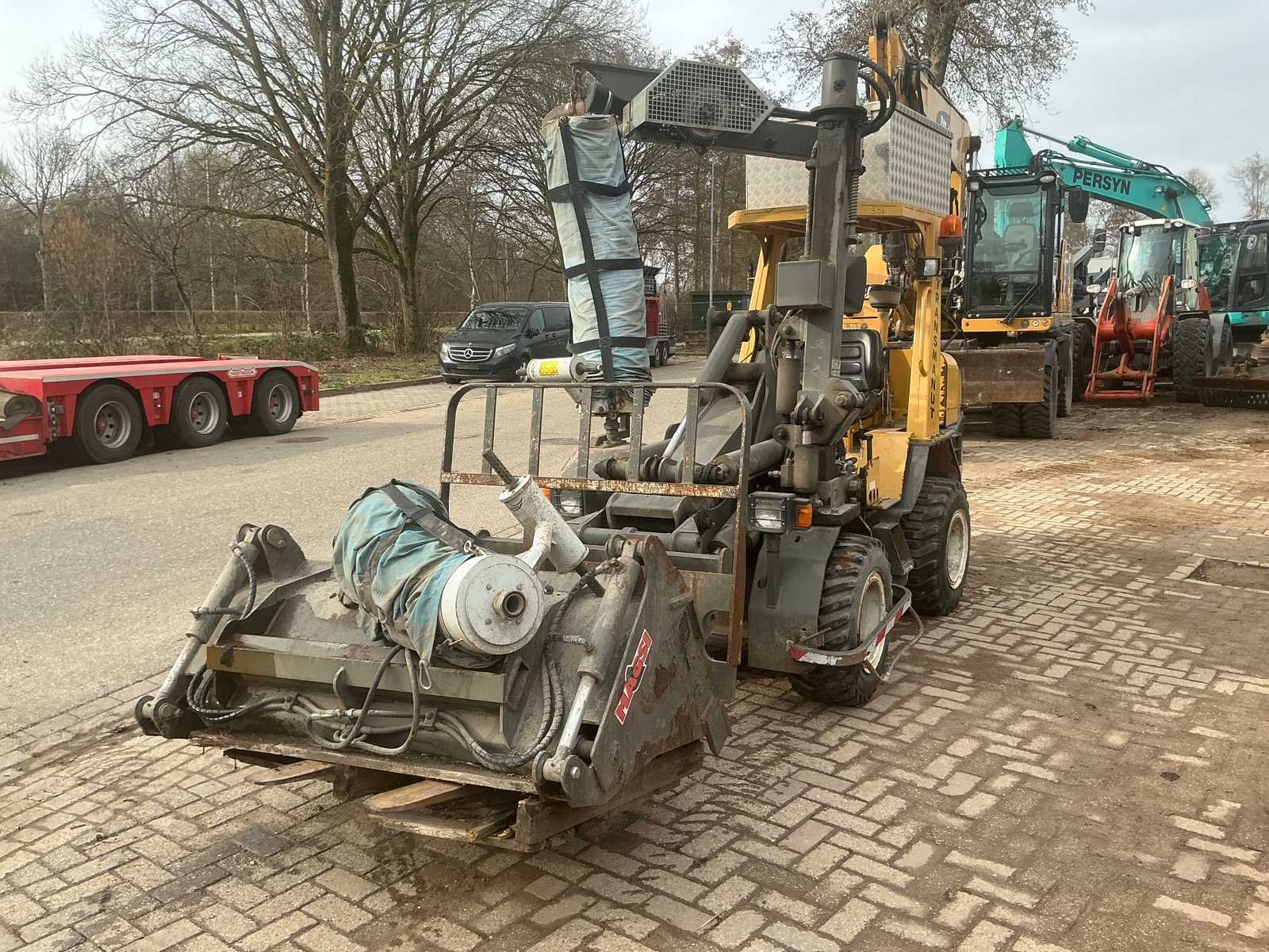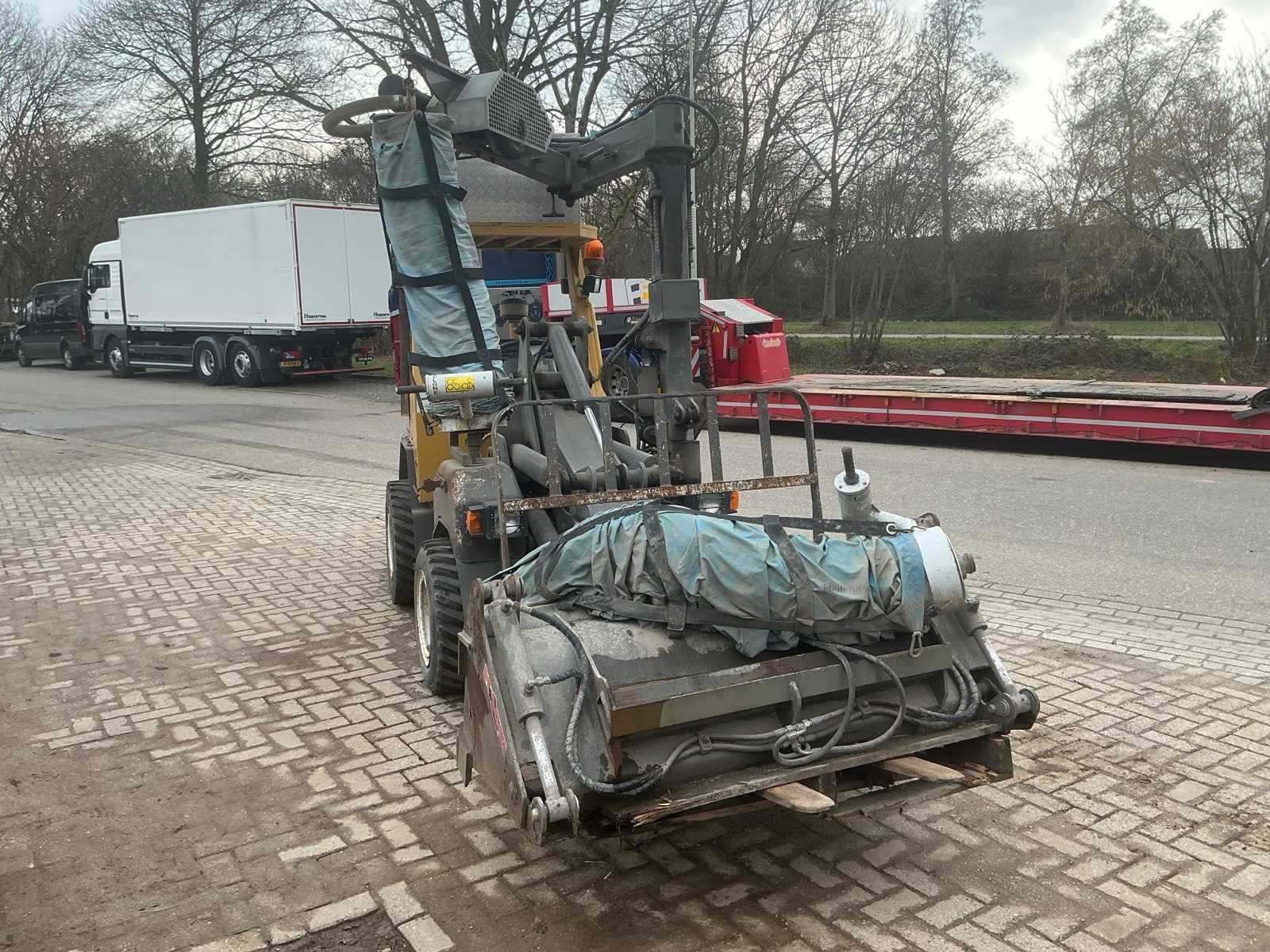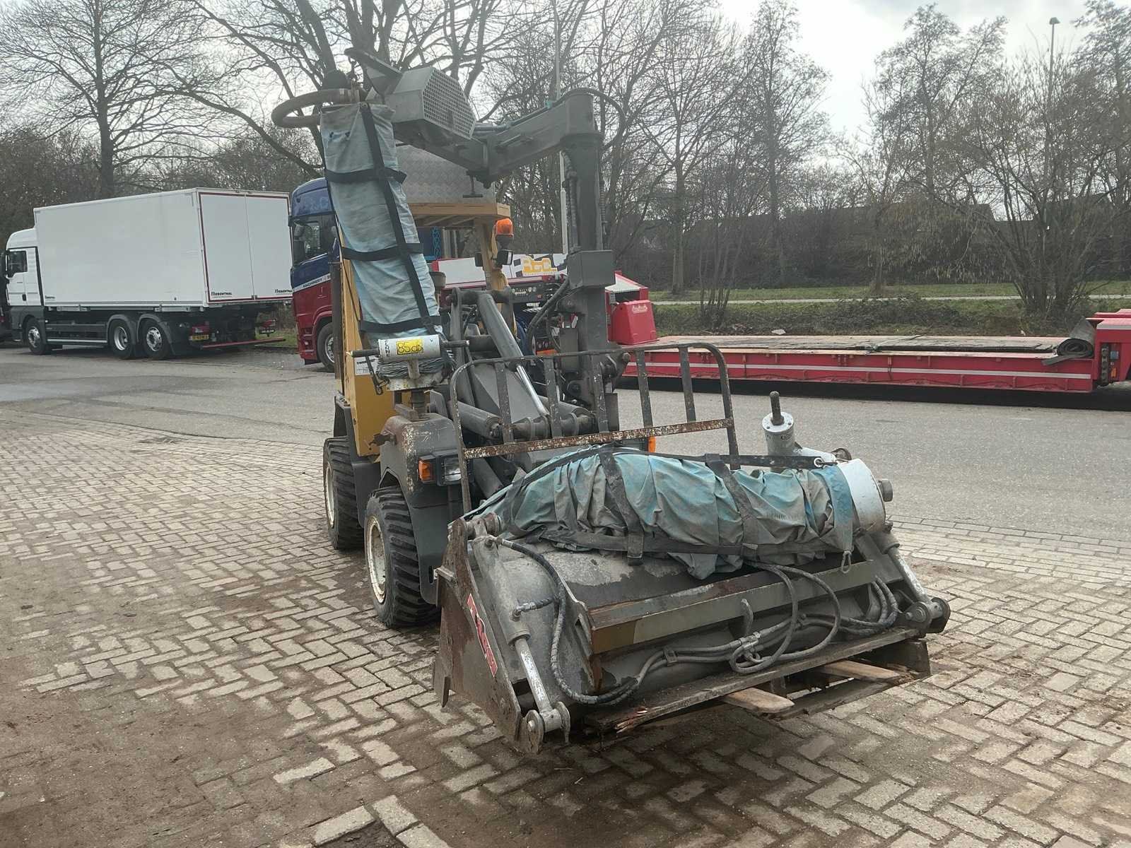 Voorzien van hydraulische uitschuifbare mast. Met Transmanut Potence 300kg en Magsi puinbak, hefvermogen: 1800kg. Nee Merk: Transmanut Type: ETP 2004 Bouwjaar: 2006 Serienummer: 1098-0906 Merk motor: Kubota Motorvermogen (kW): 75kW Aantal cilinders: 4 Brandstof: Diesel Afgelezen urenstand: 1741 Eigen gewicht: 5200kg Totale afmeting L: 6000mm Totale afmeting Breedte: 1450mm Totale afmeting Hoogte: 2700mm