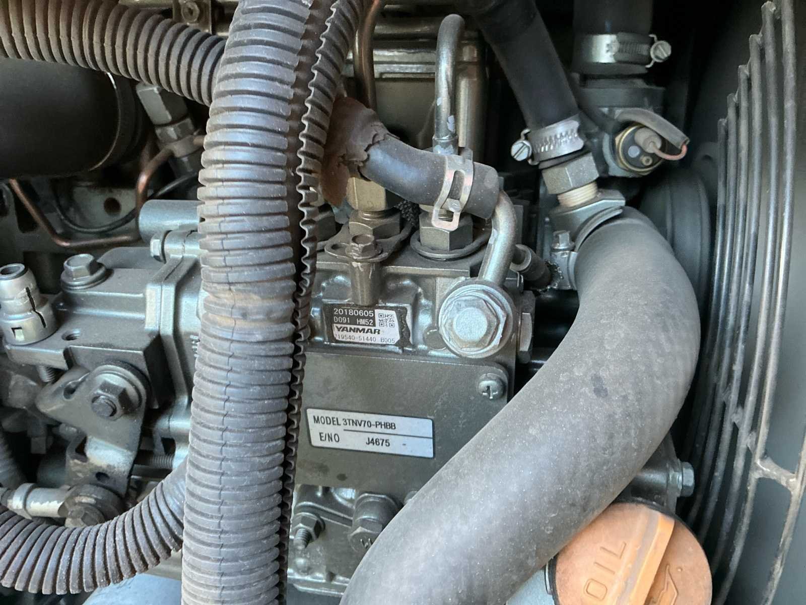 Voorzien van: 2 axiale plunjerpompen met variabele opbrengst,1 tandwielpomp, 2 x 19,2 L/min,1 x 10,8 L/min, ruime cabine, 1.016 mm breed bij 1.610 mm hoog, rijsnelheid hoog: 0 tot 4,2 km/h, laag: 0 tot 2,4 km/h, spoorbreedte (ingeschoven / uitgeschoven) 750 / 1.050mm, mechanische snelwissel CW05, dozerblad met extensie. Nee Merk: Hitachi Type: Zaxis 19 Bouwjaar: 2018 Serienummer: HCMBG5ZV00008316 Merk motor: Yanmar Motorvermogen (kW): 11.5kW Aantal cilinders: 3 Brandstof: Diesel Bedrijfsgewicht: 1920kg Inclusief graafbak: Nee Rups breedte: 230mm Afgelezen urenstand: 2840 Eigen gewicht: 1920kg Totale afmeting L: 3790mm Totale afmeting Breedte: 1020mm Totale afmeting Hoogte: 2380mm