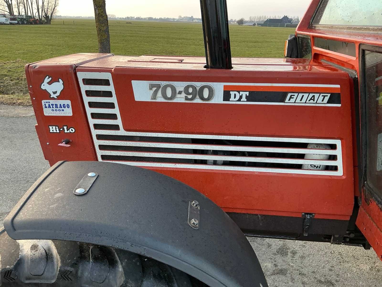 Fiat 70-90dt ;hi/lo; omkeer naast de stoel;40kmh transmissie!!;l Nee Merk: Fiat Type: 70-90 DT Bouwjaar: 1994 Kenteken: TDX-93-J Afgelezen urenstand: 8304 Versnellingsbaktype: Handgeschakeld 40km hi/lo Aantal hydraulische ventielen achter: 4 Bandenmaat voor: 340/85R24 Bandenmaat achter: 16.9R34 Cabine: true Luchtgeveerde stoel: true Kentekenpapieren compleet?: true Datum eerste toelating: 1994-06-30 Nationaliteit documenten: Nederland