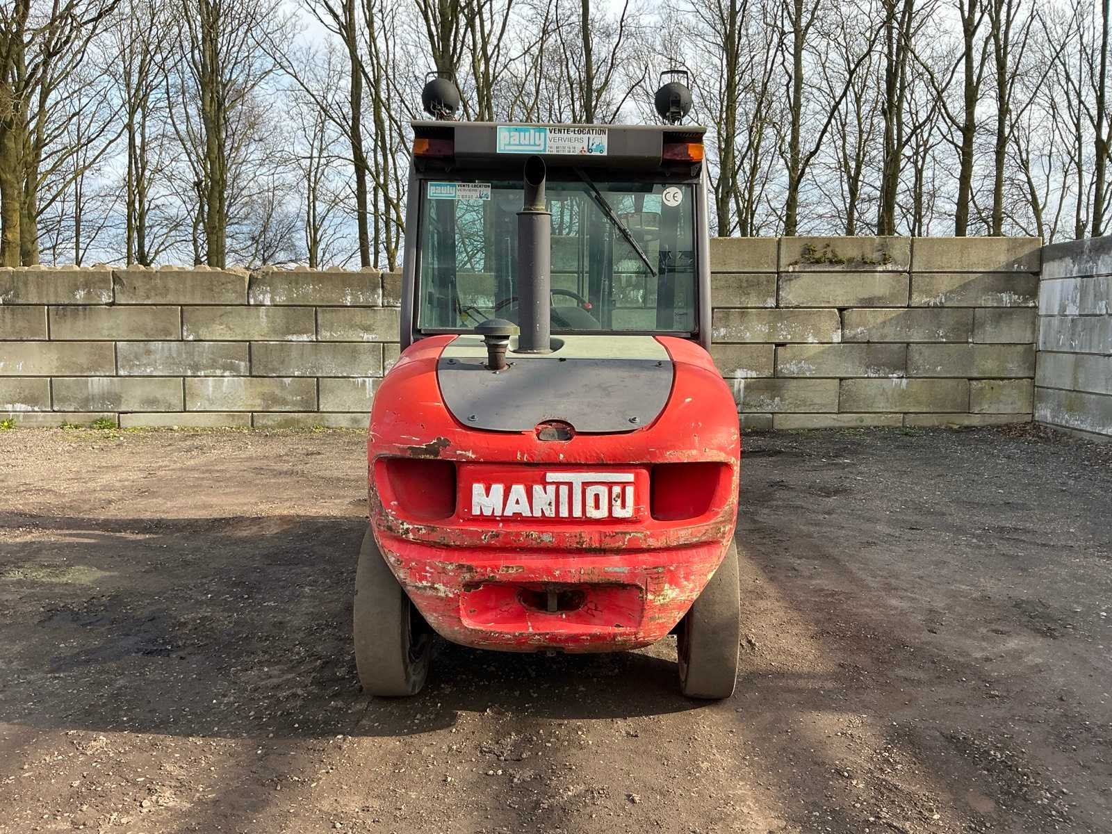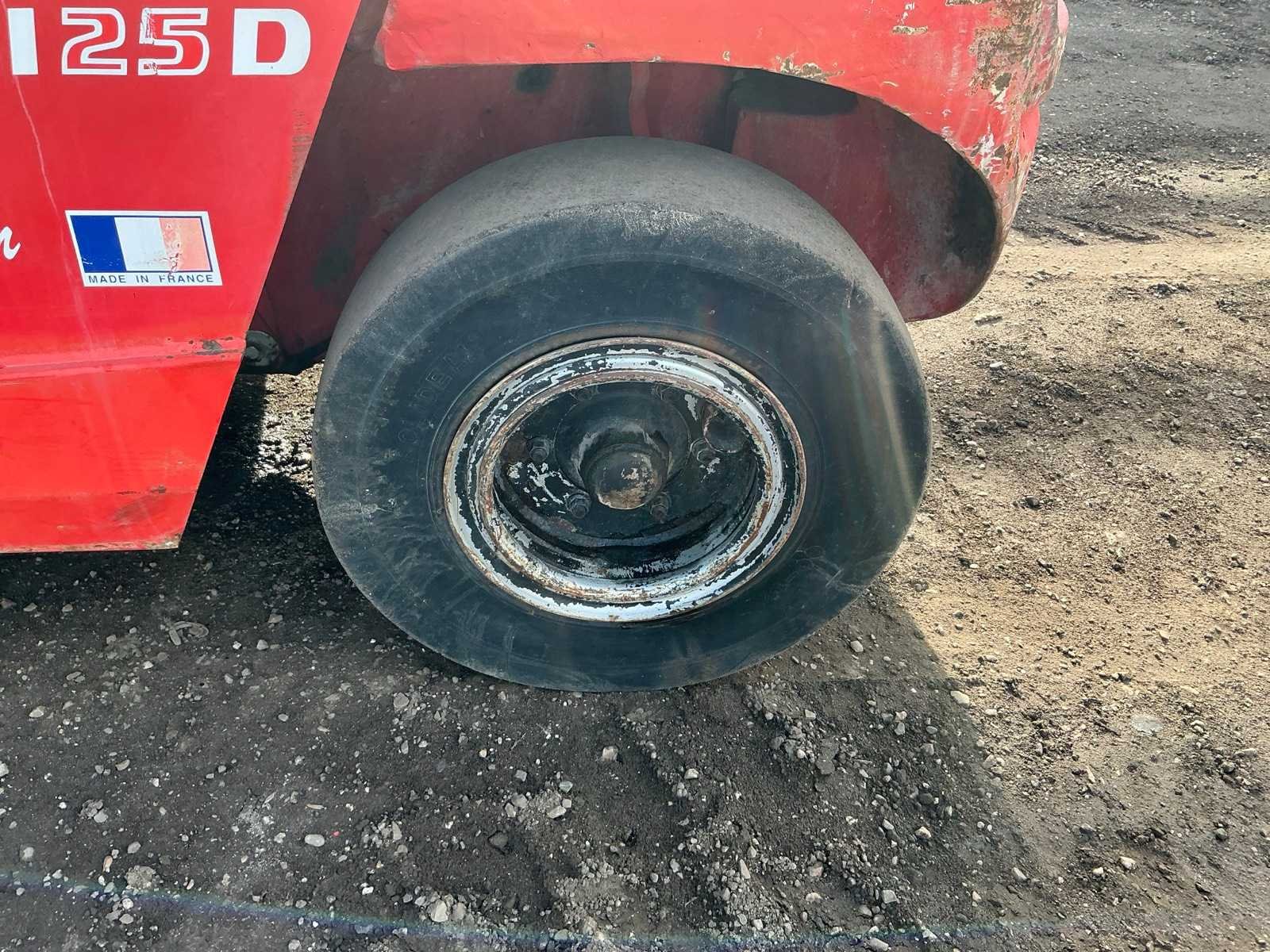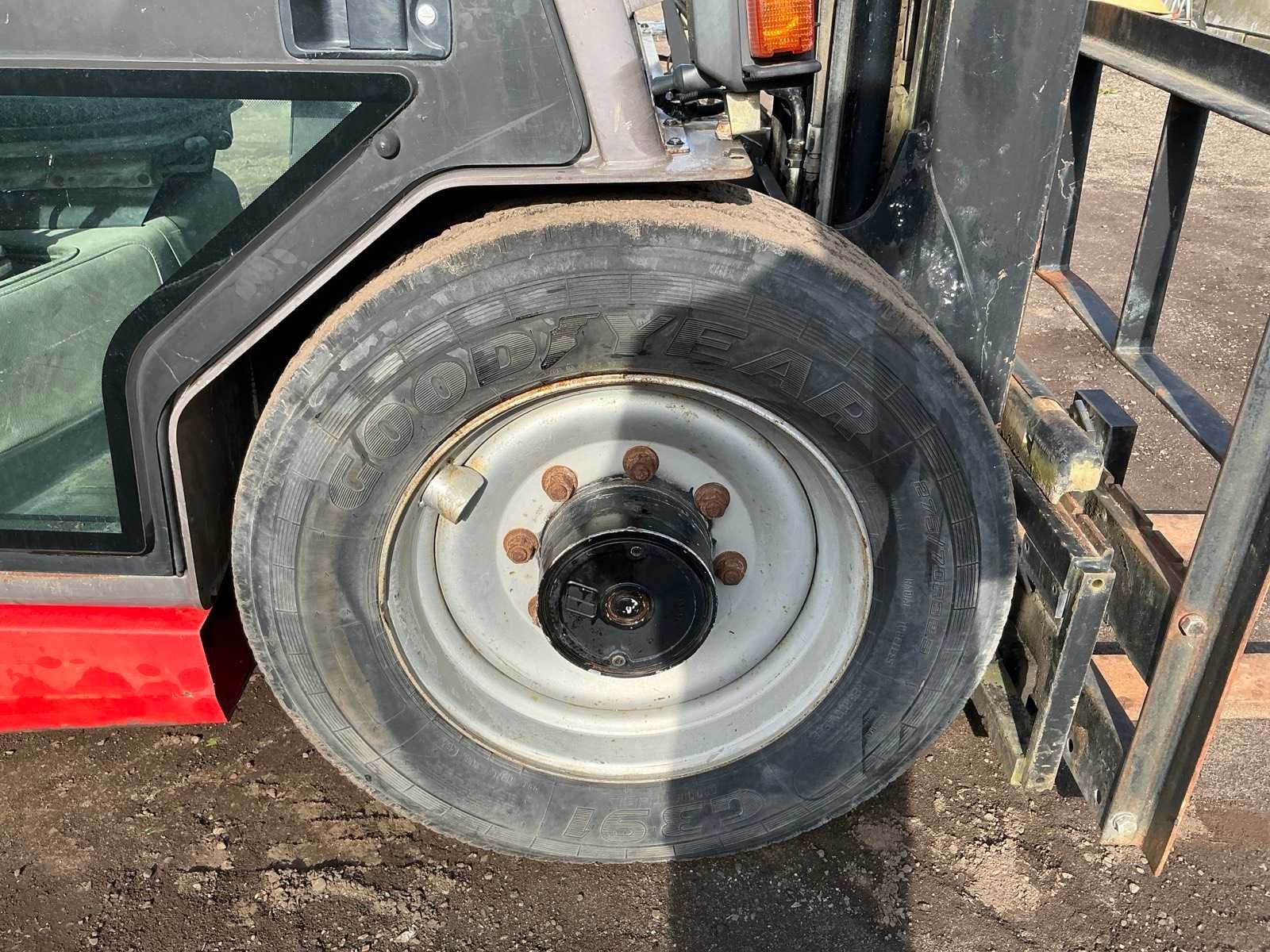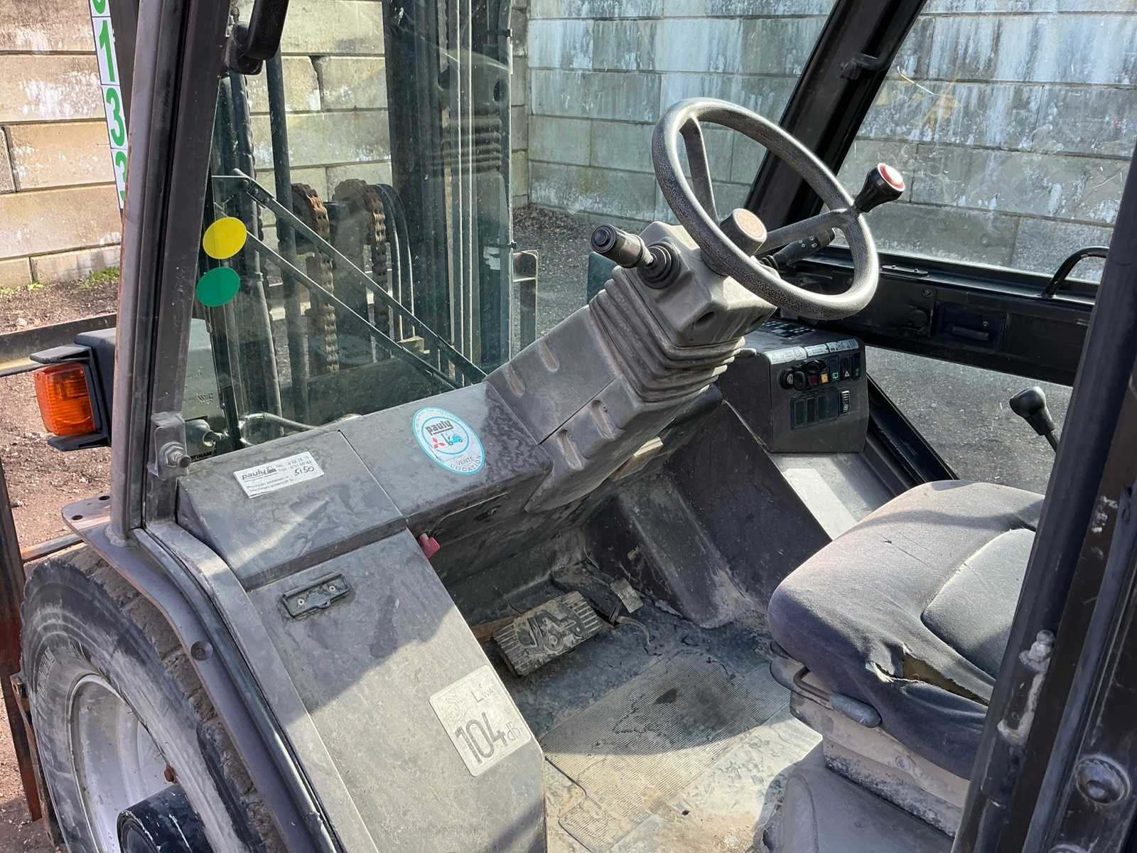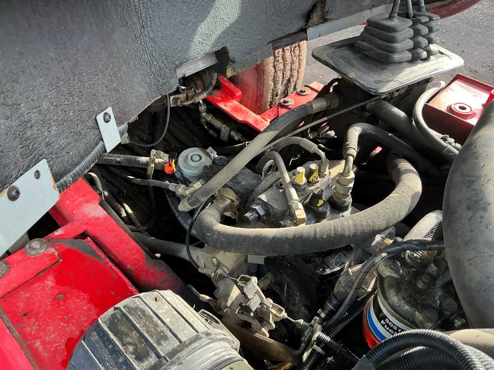 Lepels 1200mm, lepelbord 1400mm, triplex mast, side shift, werkverlichting, trekoog met pin 30mm, verwarming, elektrische cabine kanteling, Nee Merk: Manitou Type: MSI 25D Serienummer: 1210104 Brandstof: Diesel Mast: Triple Soort band: Luchtbanden Aantal wielen: 4 Afgelezen urenstand: 5235 Side-shift: true Triple mast: true Eigen gewicht: 4395kg Hefvermogen: 2500kg Lepellengte: 1200mm Max. hefhoogte: 4000mm Luchtbanden: true Minimale doorrijhoogte: 2500mm Totale afmeting L: 4200mm Totale afmeting Breedte: 1400mm Totale afmeting Hoogte: 2500mm