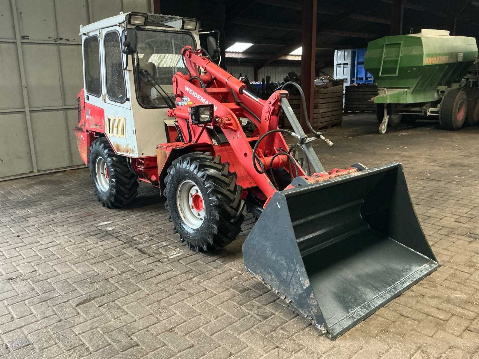 Voorzien van volumebak; hydrauliek pomp en rij pomp in juiste conditie; hydrauliek aansluiting voor; verlichting voor; Nee Merk: Weideman Type: 1704 D/D Bouwjaar: 1999 Serienummer: 11281801 Merk motor: Deutz Motorvermogen (kW): 30kW Aantal cilinders: 3 Brandstof: Diesel Bandenmaat: 11.5/80-15,3 Cabine: true Afgelezen urenstand: 7898