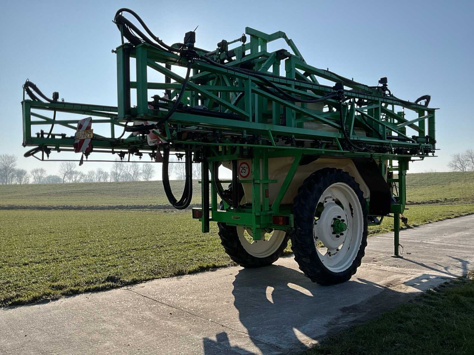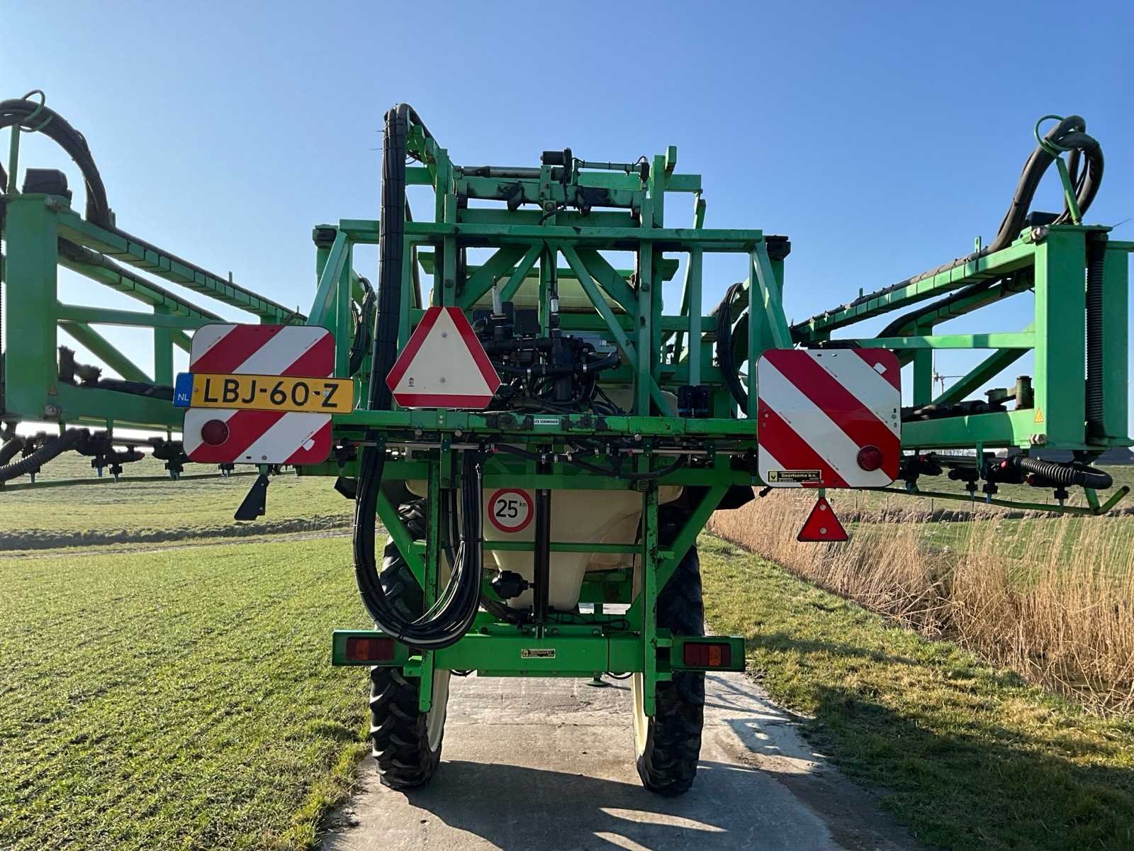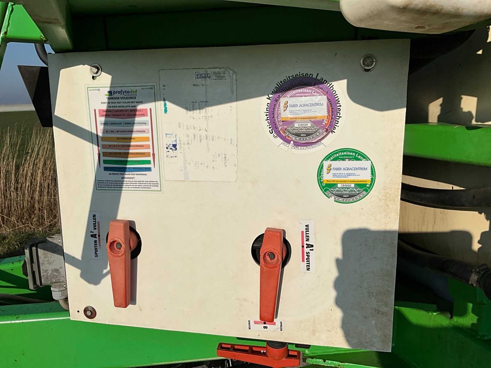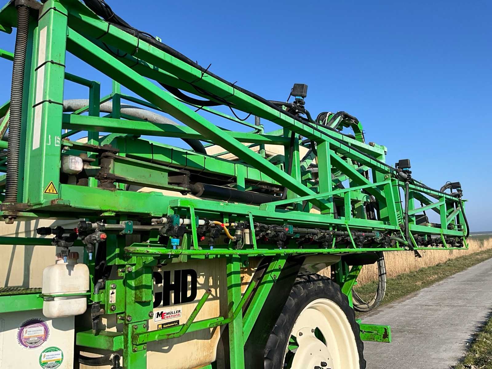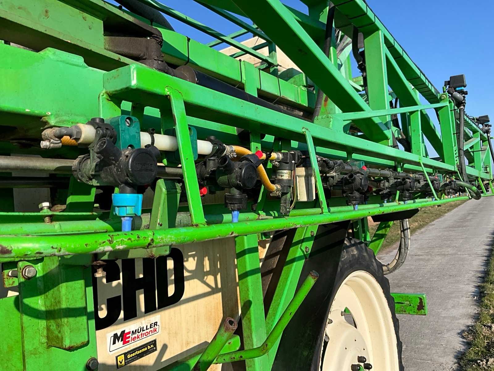 Voorzien van sectiesfsluiting; schoonwatertank 400 liter; Fusie besturing; kringleiding; elektrische kantdop; automatische spoelvolging; hydraulisch geremd; blauwe doppen: ID 120-03; Let op, exclusief kunstmest doppen (rode doppen) Nee Merk: CHD Type: 3533 Bouwjaar: 2000 Serienummer: 272 Kenteken: LBJ-60-Z Spuitboombreedte: 33m Tankinhoud: 3500l Bandenmaat: 270/95R48 Boordcomputer: true Schoonwatertank: true Sectie afsluiting: true Eigen gewicht: 3900kg