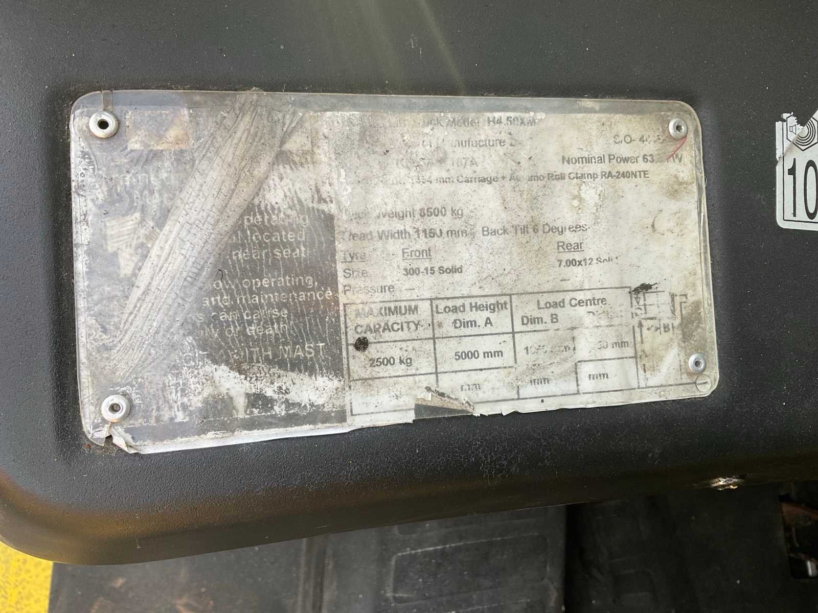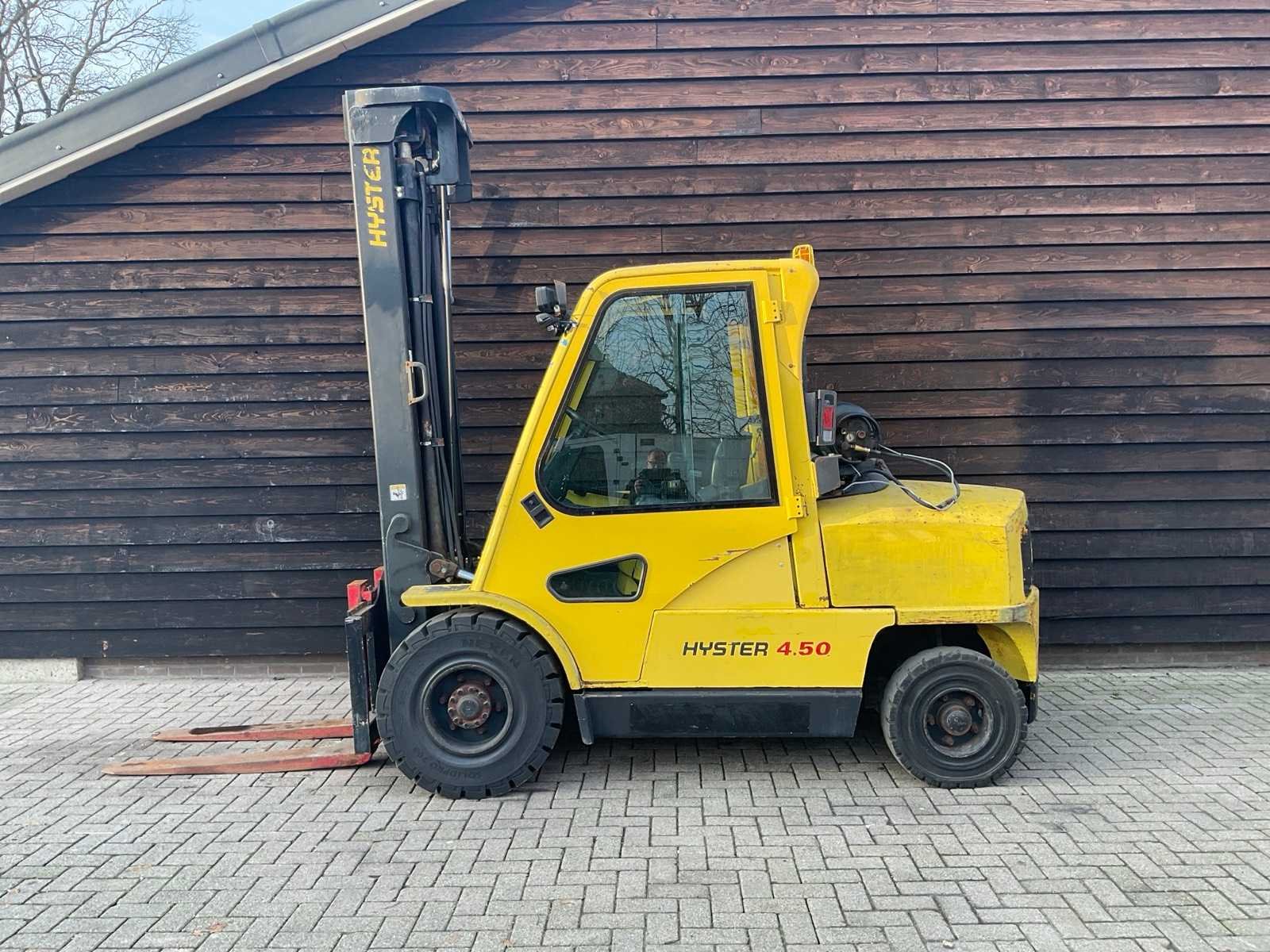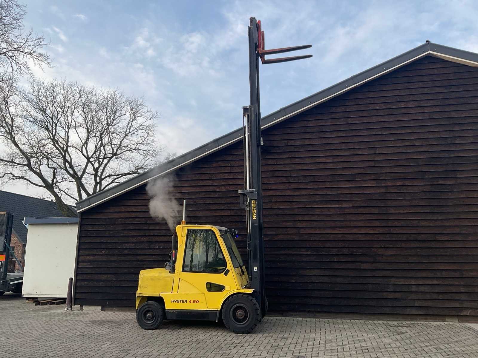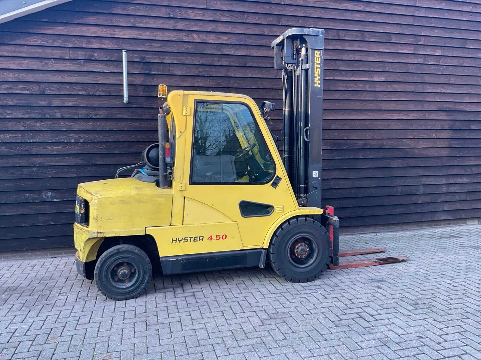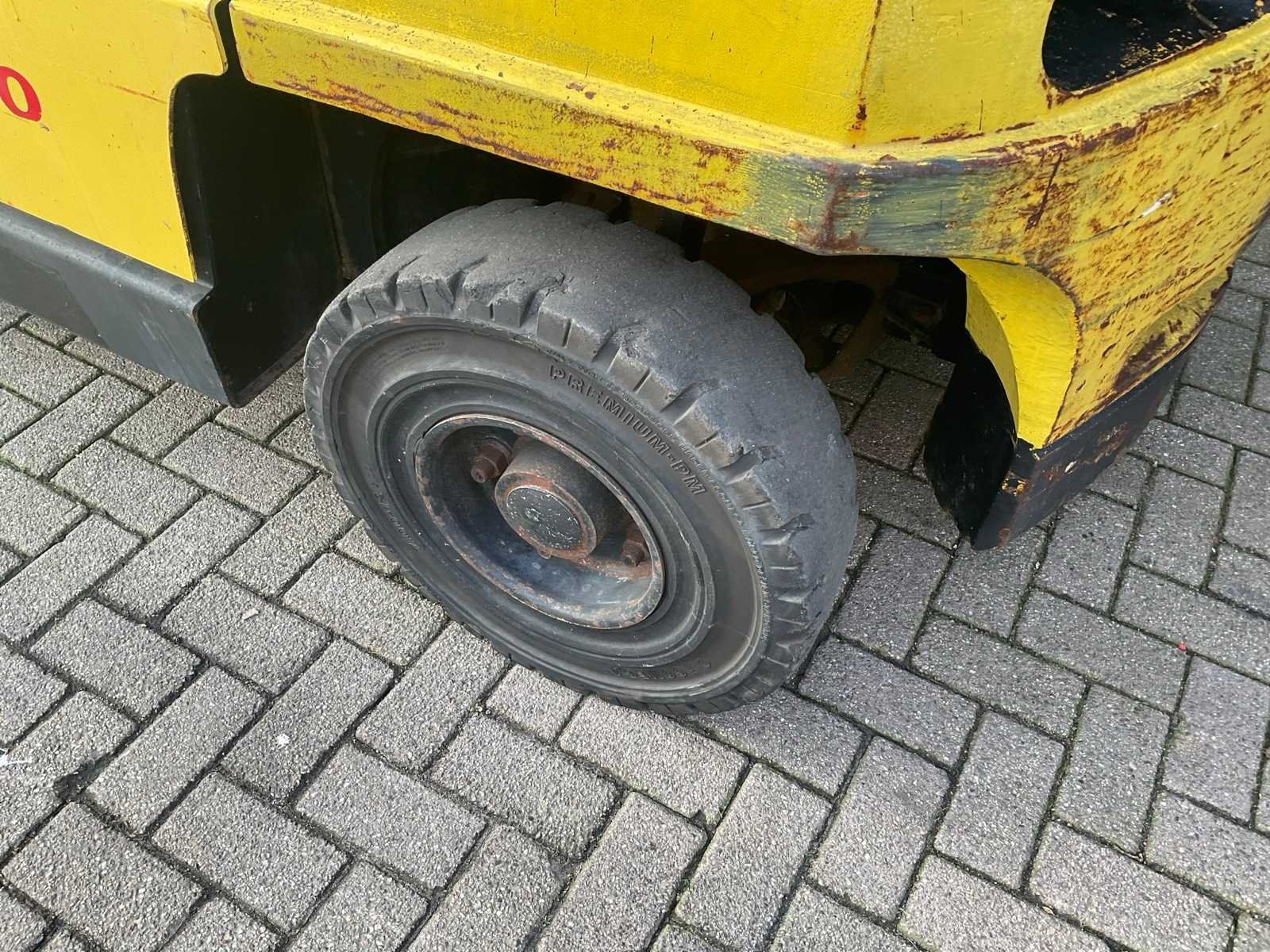 ZONDER. GAS. FLES Nee Merk: HYSTER Type: H 4,5 XM Brandstof: LPG Mast: Triple Soort band: Volrubber banden Afgelezen urenstand: 12327 Free-lift: true Triple mast: true Eigen gewicht: 8500kg Hefvermogen: 4500kg Lepellengte: 1200mm Max. hefhoogte: 5000mm Hefhoogte: 5000mm Vol rubber banden: true Totale afmeting L: 3400mm Totale afmeting Breedte: 1400mm Totale afmeting Hoogte: 3100mm LPG: true