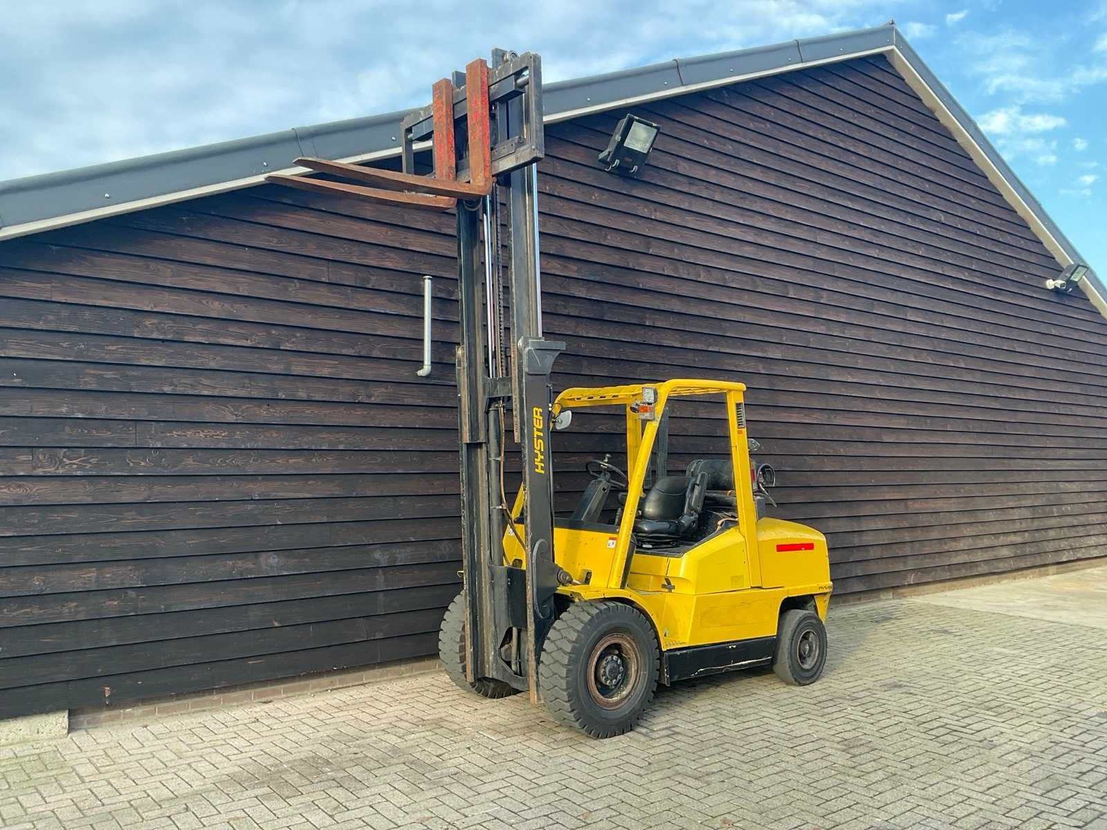 ZONDER GAS. FLES. Nee Merk: HYSTER Type: H 5,0 xm Brandstof: LPG Mast: Duplex Afgelezen urenstand: 5742 Side-shift: true Hefvermogen: 5000kg Lepellengte: 1200mm Hefhoogte: 3400mm Luchtbanden: true Vol rubber banden: true Minimale doorrijhoogte: 2350mm Totale afmeting L: 3400mm Totale afmeting Breedte: 1400mm Totale afmeting Hoogte: 2350mm LPG: true
