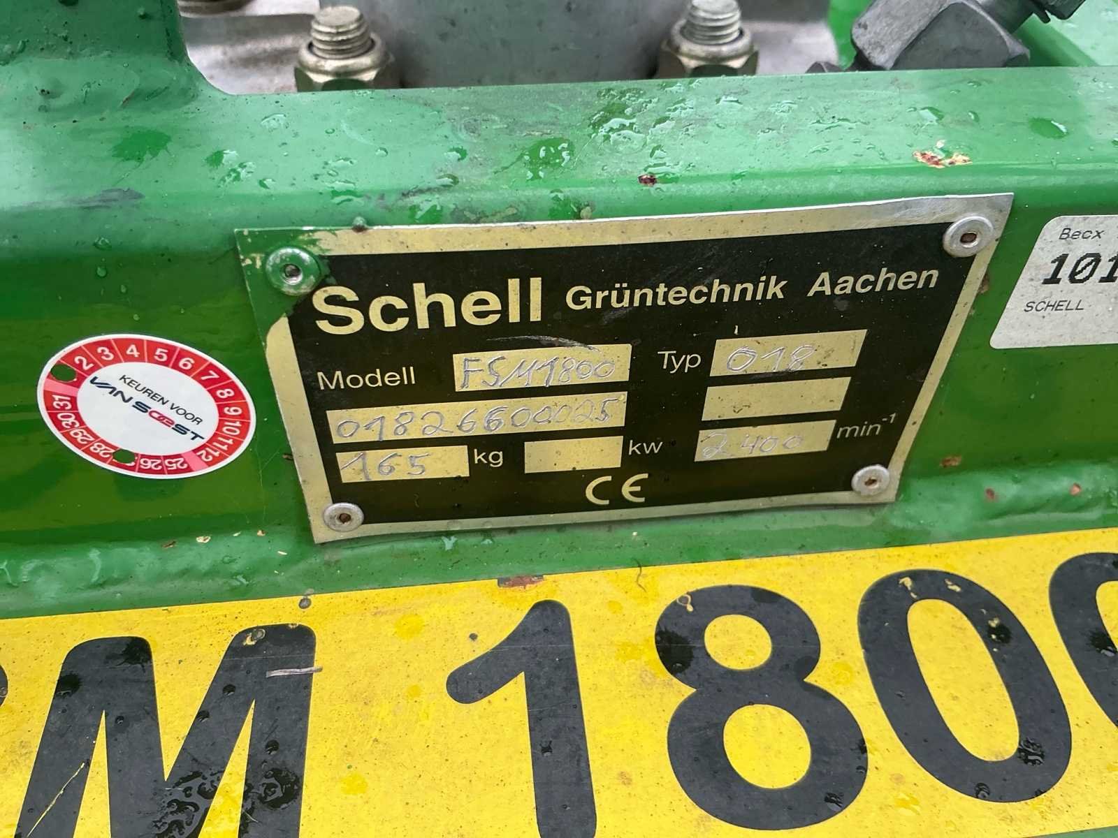 2400 min, hydraulisch aangedreven. Nee Merk: Schell Type: FSM 1800H Serienummer: 079726600025 Eigen gewicht: 165kg Totale afmeting L: 1900mm Totale afmeting Breedte: 1300mm Totale afmeting Hoogte: 1350mm