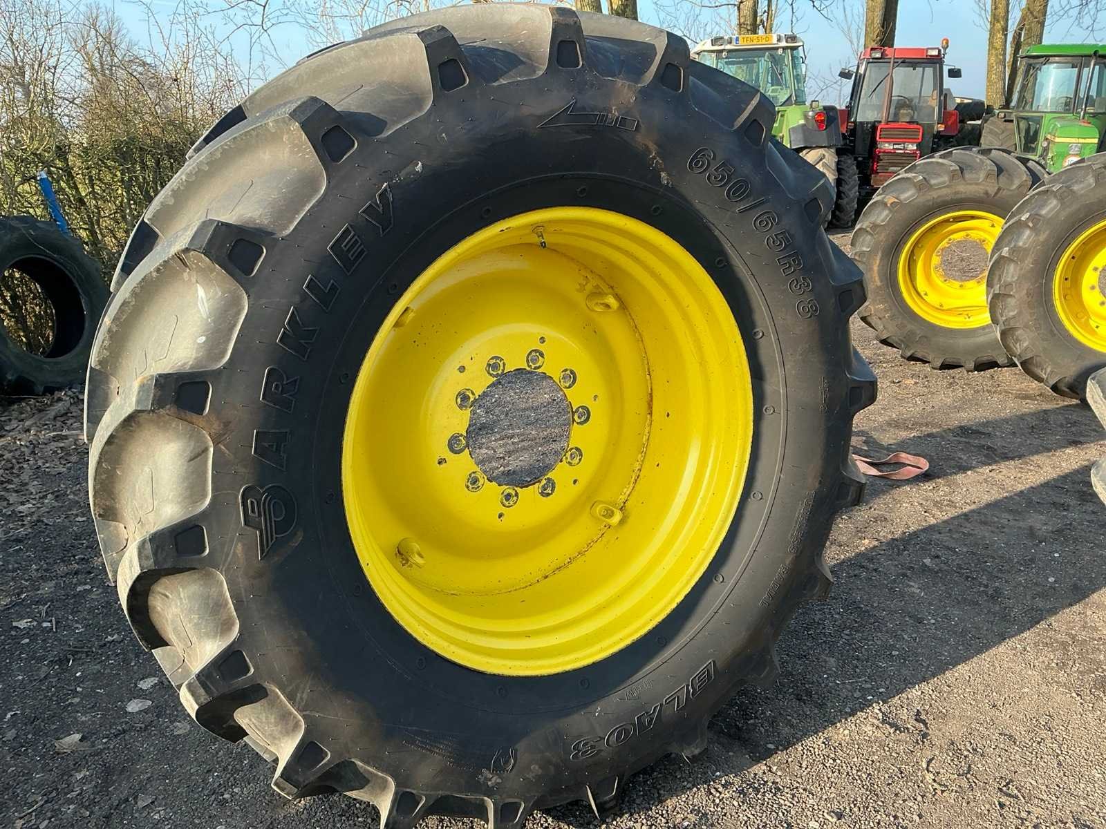 Barkley 650/65R38 op 10 gaats John deere velgen W18X38 banden zijn weinig tot niet gebruikt!! Nee Merk: Barkley Type: 650/65R38 Bandenmaat: 650/65R38 Maat (getal): 38''