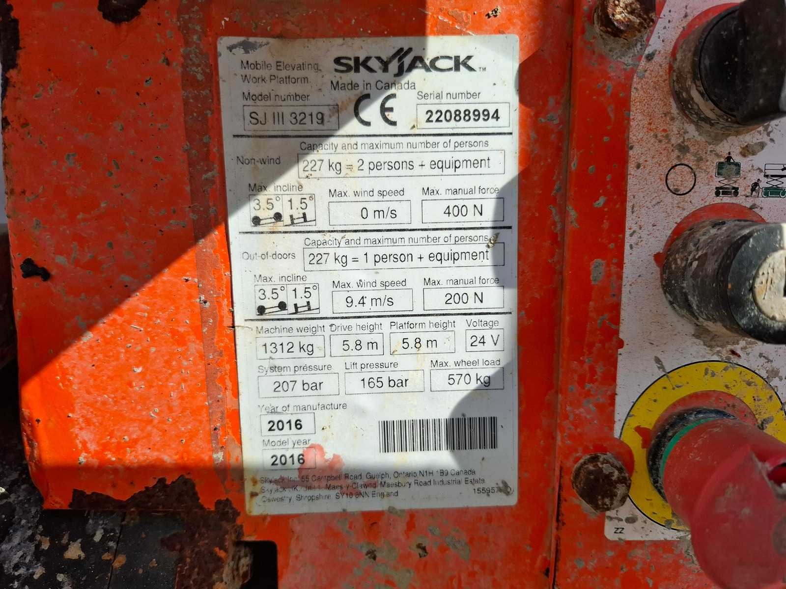Niet werkend. Nee Merk: Skyjack Type: SJ 3219 Bouwjaar: 2016 Serienummer: 22088994 Elektrisch: true Schaarhoogwerker: true Platform capaciteit: 227kg Afgelezen urenstand: 216 Eigen gewicht: 1312kg