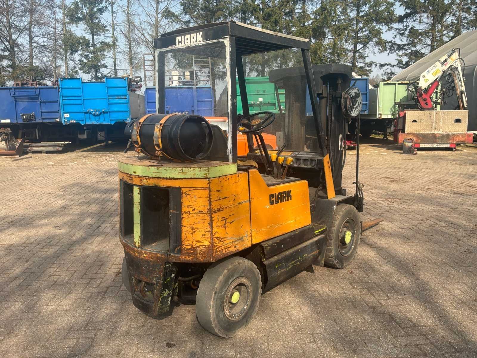Bouwjaar niet afleesbaar * hefcilinder lekt Nee Merk: Clark Type: GPS25I Brandstof: LPG Aantal wielen: 4 Afgelezen urenstand: 7070 Free-lift: true Triple mast: true Eigen gewicht: 3928kg Hefvermogen: 2175kg Lepellengte: 1150mm Max. hefhoogte: 4325mm Vol rubber banden: true Minimale doorrijhoogte: 2130mm Totale afmeting L: 3550mm Totale afmeting Breedte: 1140mm LPG: true Leveringsvoorwaarden: Geladen op vrachtwagen
