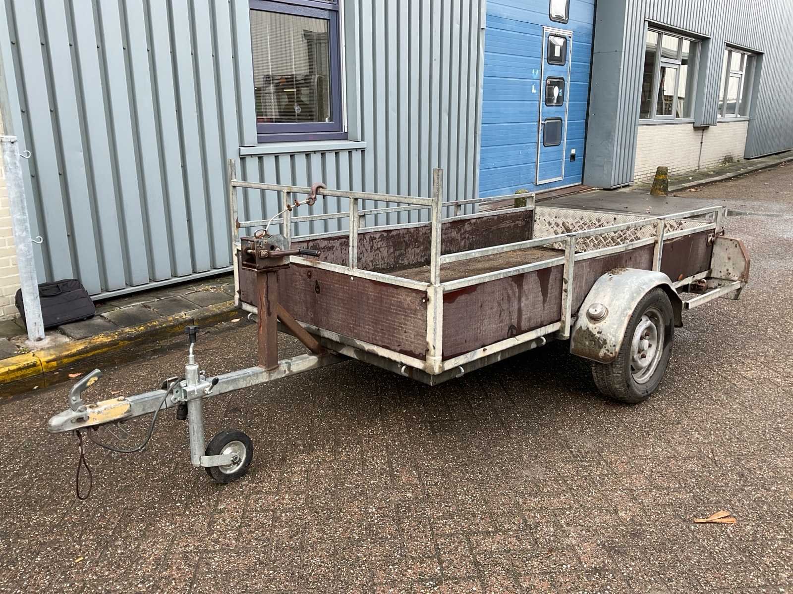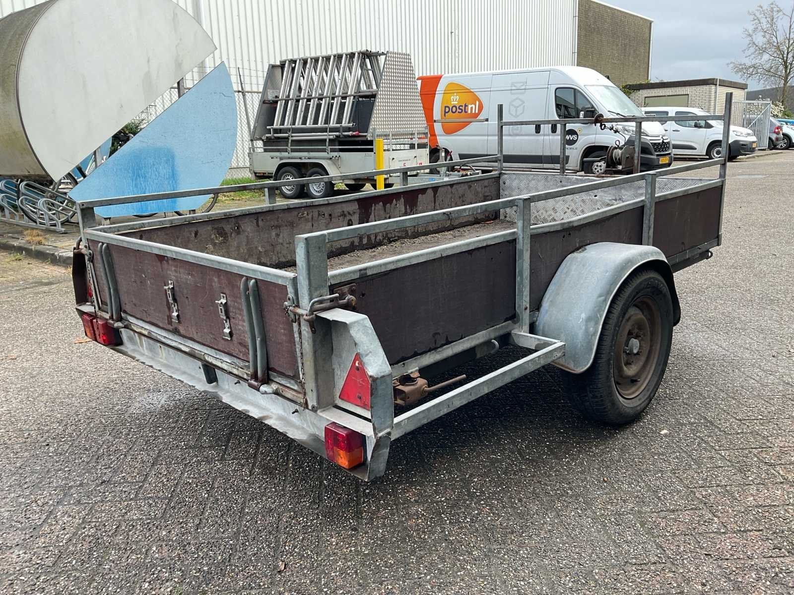 Zonder kenteken, met lier No Bouwjaar: 1987 Aantal assen: 1 Laadbak afmeting l: 246cm Laadbak afmeting b: 130cm Lengte: 356cm Breedte: 174cm