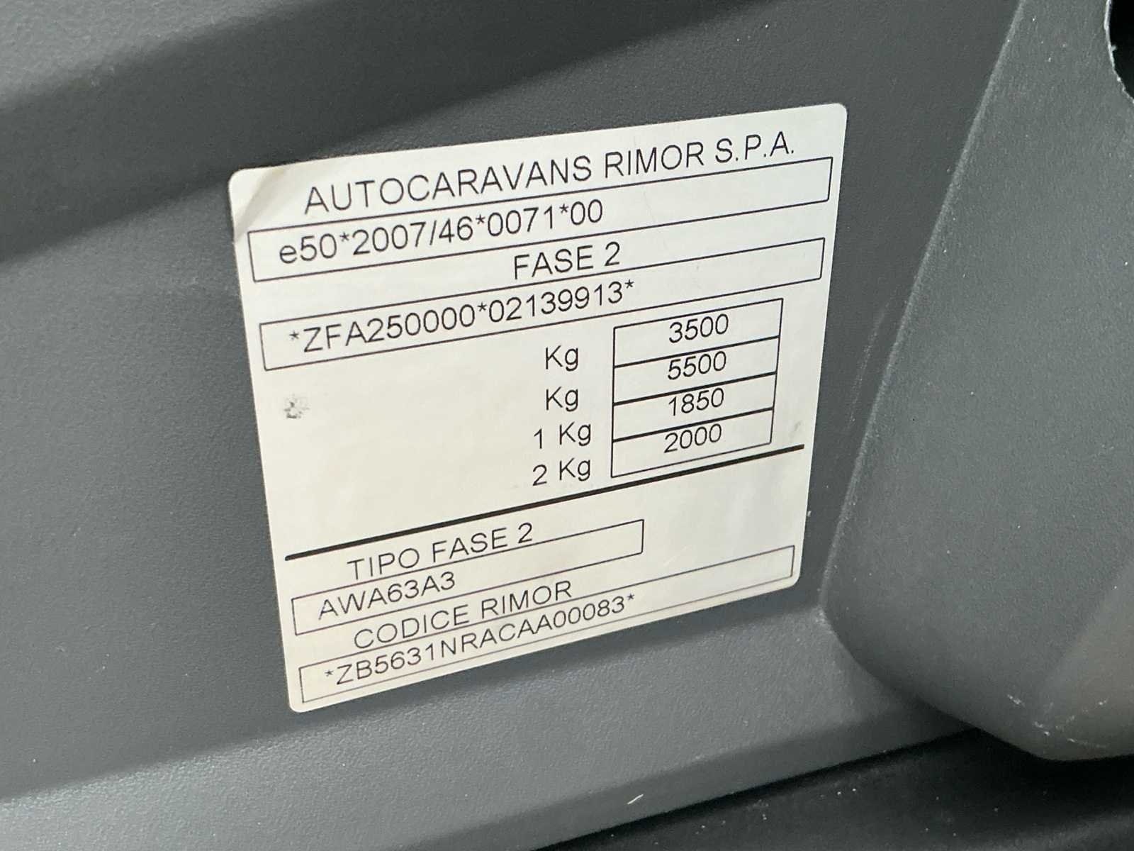 Voorzien van draaibare stoelen, radio, navigatie, tafel, 2x 2 zits bank met opbergruimte, airconditioning, televisie, camera systeem, 2 persoons bed boven, 1,5 persoons bed achter, koelkast met vriezer, kookplaat, kraan, toilet, douche, boiler, dak airconditioning, luifel, diefstalslot, garage ruimte, fietsendrager, reservewiel, Nee Kenteken: K-327-ZT Merk: Rimor Model: AWA N/A Type: 63A3 Chassisnummer: ZFA250000*02139913 Handelsbenaming: N/A Aantal zitplaatsen: 6 Aantal sleutels: 2 Bruto BPM (NL): 9795€ Transmissie: Handgeschakeld Datum eerste toelating (NL): 2-4-2021 Datum eerste toelating: 4-4-2012 APK vervaldatum: 12-4-2026 Bouwjaar: 2012 Afgelezen kilometerstand: 146329km Vermogen (kW): 96kW Vermogen (pk): 130hp Cilinderinhoud: 2287cc Brandstof: Diesel Aantal deuren: 3 Lengte: 700cm Breedte: 230cm Hoogte: 295cm Ledig gewicht: 2975 Zelf rijdend exporteren: Mogelijk Self drive export possible : true