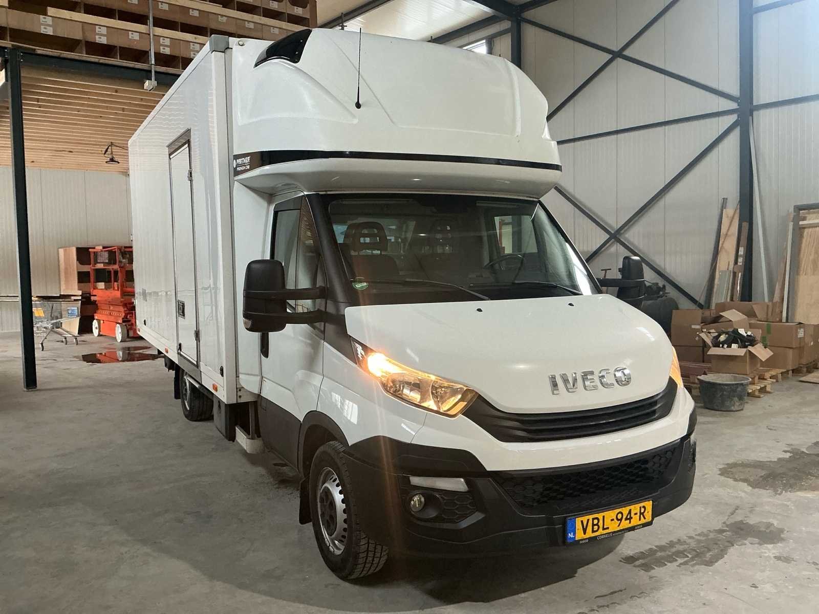 Voorzien van; Slaapcabine; Trekhaak; Extra Deur Rechts in de bakwagen; Trap; Betimmerd; Radio Met Camera Achter; Standkachel; Elektrische ramen;Airco; 3-Zits Voor; Extra radio (origineel ) Nee Kenteken: VBL-94-R Merk: Iveco Type: 35S18V 3.0 410 H3 Model: Daily Bouwjaar: 2018 Chassisnummer: ZCFC135D1J5237794 Afgelezen kilometerstand: 71443km Cilinderinhoud: 2998cc Vermogen (kW): 132kW Brandstof: Diesel/adblue Datum eerste toelating: 2018-09-14 Datum eerste toelating (NL): 2019-07-29 APK vervaldatum: 2026-09-19 Aandrijving: Voorwiel Transmissie: Handgeschakeld Aantal zitplaatsen: 3 Kleur: niet van toepassing Nationaliteit documenten: Nederland Accessoires - checkbox: Cabine\ kraantje \ stroom aansluiting. Stuurwiel: Leder Bruto BPM (NL): 14306 Aantal deuren: 5 Aantal sleutels: 2 Ledig gewicht: 2575kg Laadvermogen: 925kg Aantal cilinders: 4 Carrosserie: Gesloten opbouw Emissieklasse: 6 Kentekenpapieren compleet?: true Startinformatie: Start en rijdt Maximaal trekgewicht ongeremd: 750 Maximaal trekgewicht geremd: 3500 Self drive export possible : true