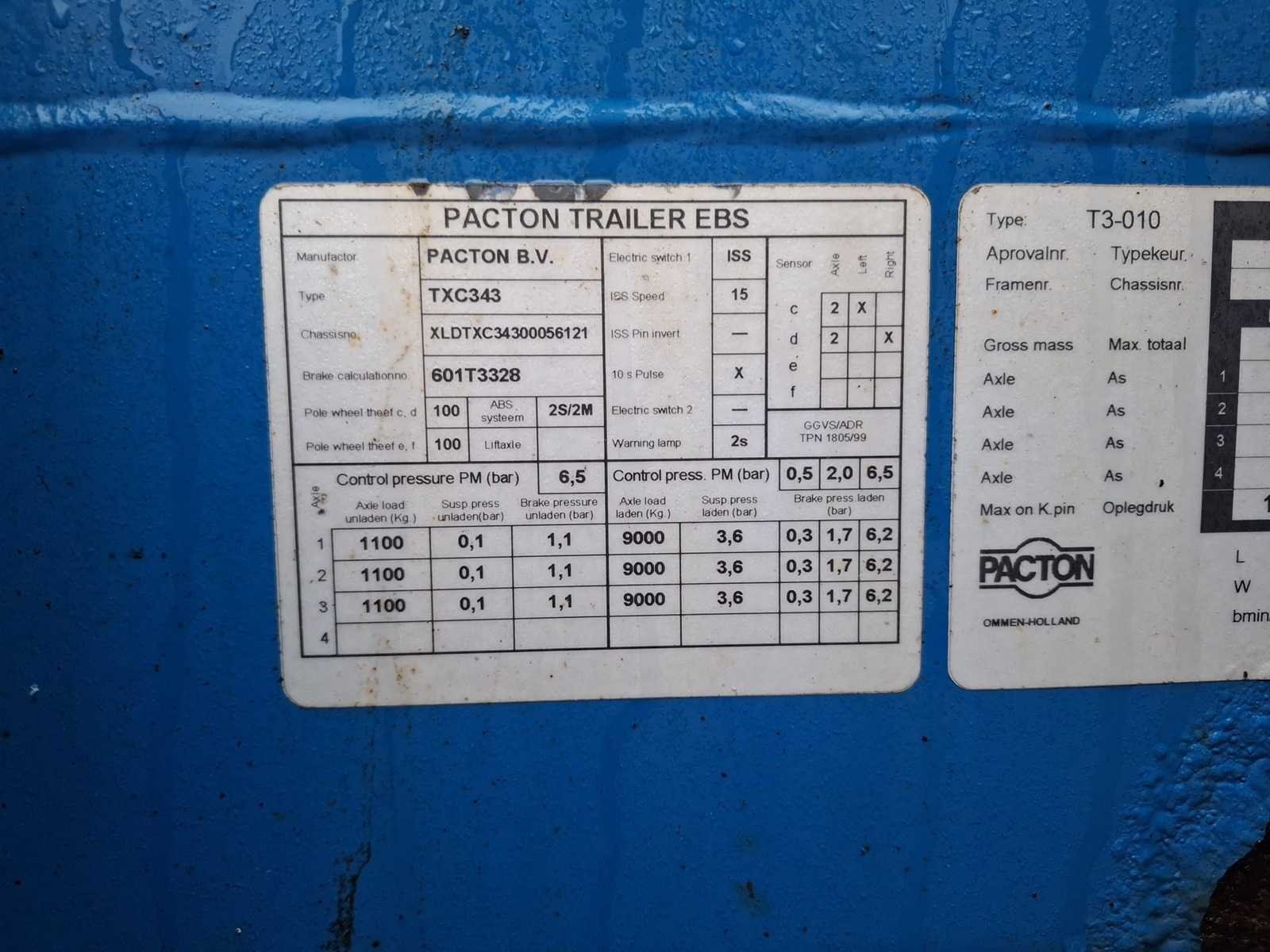 Uitschuifbaar chassis: TXC343-chassis zijn “extendable” om verschillende containerlengtes te faciliteren (bijv. 20′, 30′, 40′, 45′) Nee Merk: Pacton Type: TXC343 Type aanhangwagencarrosserie: Plateauwagen Bouwjaar: 2007 Chassisnummer VIN: XLDTXC34300056121 Kenteken: OJ62XK Datum eerste toelating (NL): 2007-08-28 Datum eerste toelating: 2007-08-28 APK vervaldatum: 2025-10-22 Aantal assen: 3 Laadvermogen: 37600kg Eigen gewicht: 5642kg Totale afmeting Breedte: 2500mm Totale afmeting Hoogte: 1350mm Zelf rijdend exporteren: Mogelijk
