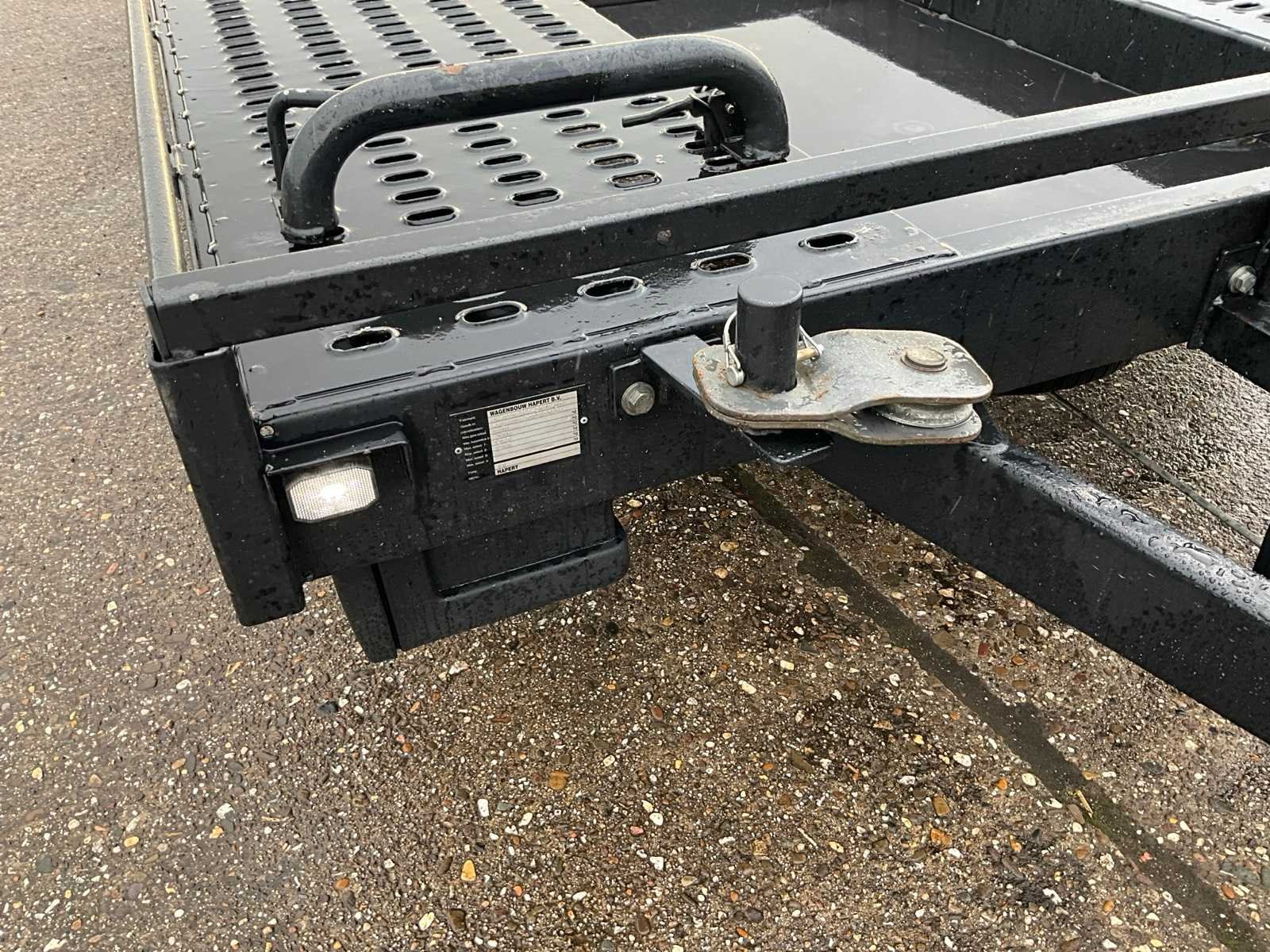 Voorzien van oprijplaten 248x30cm; elektrische lier; opbergkist met inhoud; accu/ acculader; laadvloer circa. 400x199cm Nee Merk: Hapert Type: TA Bouwjaar: 2017 Chassisnummer: XLHAT270000795856 Aantal assen: 2 Ledig gewicht: 656kg Laadvermogen: 2044kg Datum eerste toelating: 2017-07-05 Datum eerste toelating (NL): 2017-07-05 Kenteken: 15-WP-PT Kentekenpapieren compleet?: true Hoogte: 60cm Nationaliteit documenten: NL