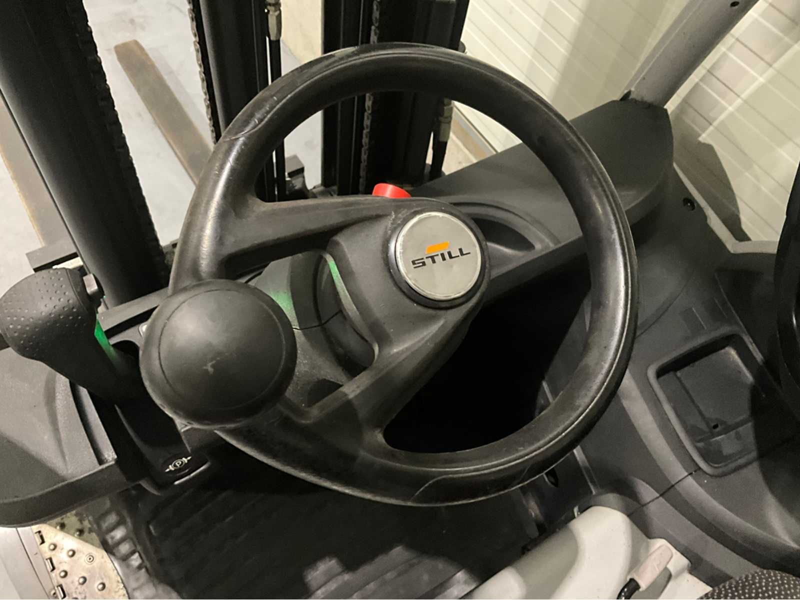 Extra opties : Rondom verlichting , blue spot voor en achter, Non-marking banden , joy stick , zwaailamp , brandblusser Nee Merk: Still Type: RX20-16 Bouwjaar: 2019 Serienummer: 516221V00298 Mast: Triple Soort band: Volrubber banden Aantal wielen: 3 Free-lift: true Side-shift: true Triple mast: true Eigen gewicht: 3415kg Hefvermogen: 1600kg Hefhoogte: 6800mm Vol rubber banden: true Totale afmeting L: 3210mm Totale afmeting Breedte: 1170mm Totale afmeting Hoogte: 2860mm