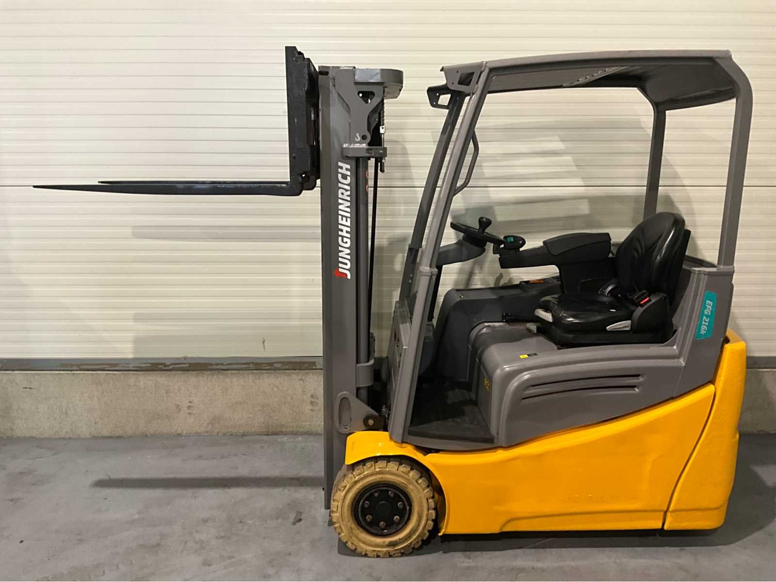 Extra opties : Non-marking banden , vinger tip bediening Nee Merk: Jungheinrich Type: EFG 216K Bouwjaar: 2021 Serienummer: FN648514 Mast: Triple Soort band: Volrubber banden Aantal wielen: 3 Afgelezen urenstand: 7868 Free-lift: true Side-shift: true Triple mast: true Eigen gewicht: 3223kg Hefvermogen: 1600kg Hefhoogte: 4320mm Vol rubber banden: true Totale afmeting L: 2820mm Totale afmeting Breedte: 1020mm Totale afmeting Hoogte: 2030mm