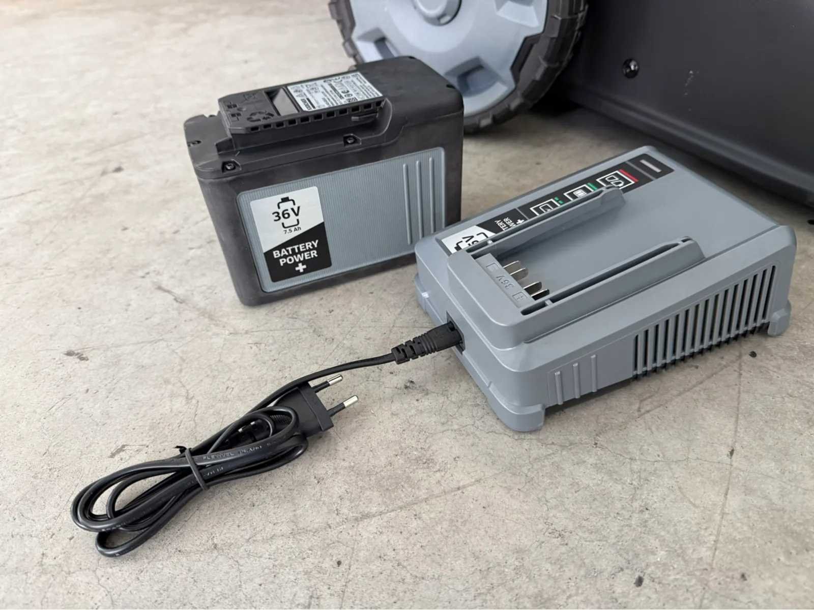 Ongebruikt in de originele verpakking Met accu’s en lader inbegrepen Accuplatform 36 V accuplatform Maaihoogte (mm) 530 Maaihoogte (mm) 30 - 110 Toerental (tpm) 3100 Rijsnelheid (max.) (km/u) 2 - 5 Maaidekmateriaal Staal Volume grasopvangbak (l) 70 Materiaal grasopvangbak Kunststof Geluidsvermogen (dB(A)) 95 Trillingswaarde (m/s²) 0,8 Accutype Lithium-ion verwisselbare accu Spanning (V) 36 Capaciteit (Ah) 6 Prestaties per acculading (m²) max. 600 (6,0 Ah) / max. 750 (7,5 Ah) Gebruiksduur per acculading (min) max. 40 (6,0 Ah) / max. 55 (7,5 Ah) Voeding voor acculader (V/Hz) 100 - 240 / 50 - 60 Kabellengte van acculader (m) 1,2 Gewicht zonder accessoires (kg) 34,6 Gewicht incl. verpakking (kg) 41 Afmetingen (L × B × H) (mm) 1580 x 550 x 1130 Nee Merk: Karcher Type: LM 530/36 Bp Bouwjaar: 2026 Loopmaaier: true Elektrisch aangedreven: true Eigen gewicht: 35kg Totale afmeting L: 1580cm Totale afmeting Breedte: 550cm Totale afmeting Hoogte: 550cm